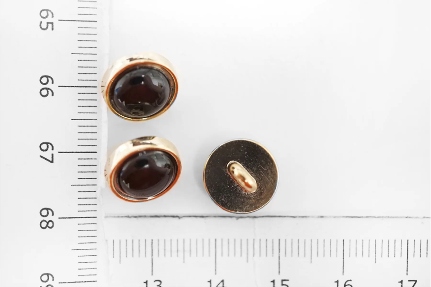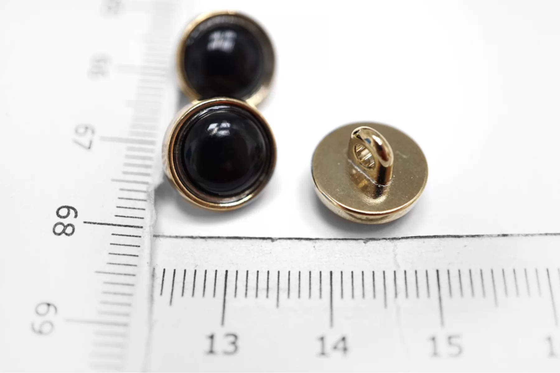 Пуговица металлическая, на ножке, золотистого цвета, с глянцевой черной сердцевиной, размер 11 мм.