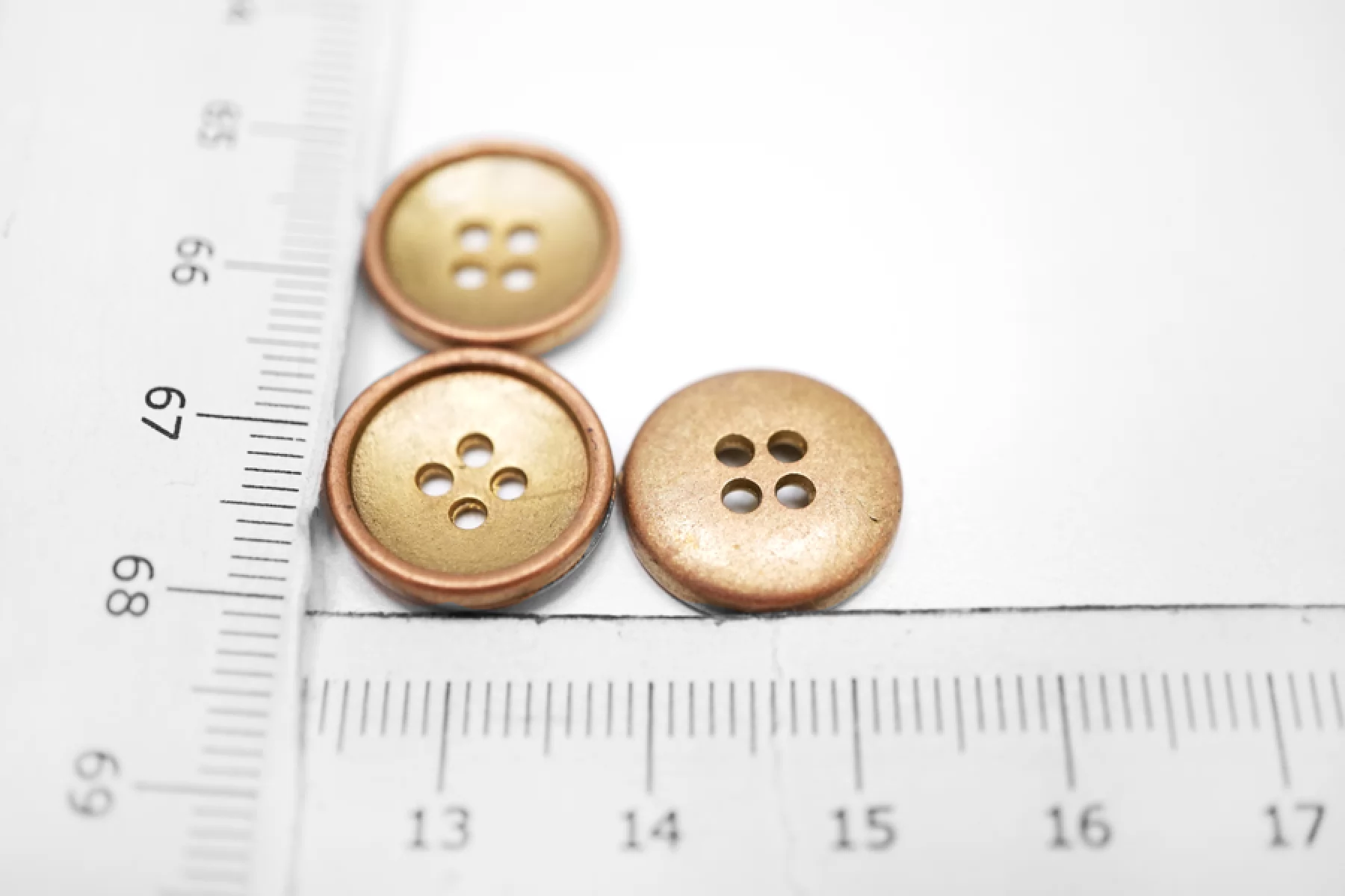 Пуговица металлическая, золотистого цвета с бронзовым ободом, размер 15 мм.