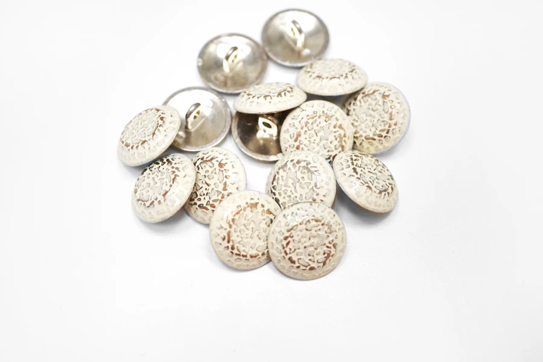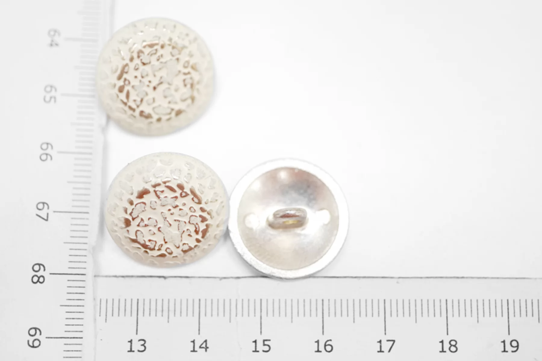 Пуговица металлическая, на ножке, золотистого цвета, покрытая молочной эмалью, размер 20 мм.
