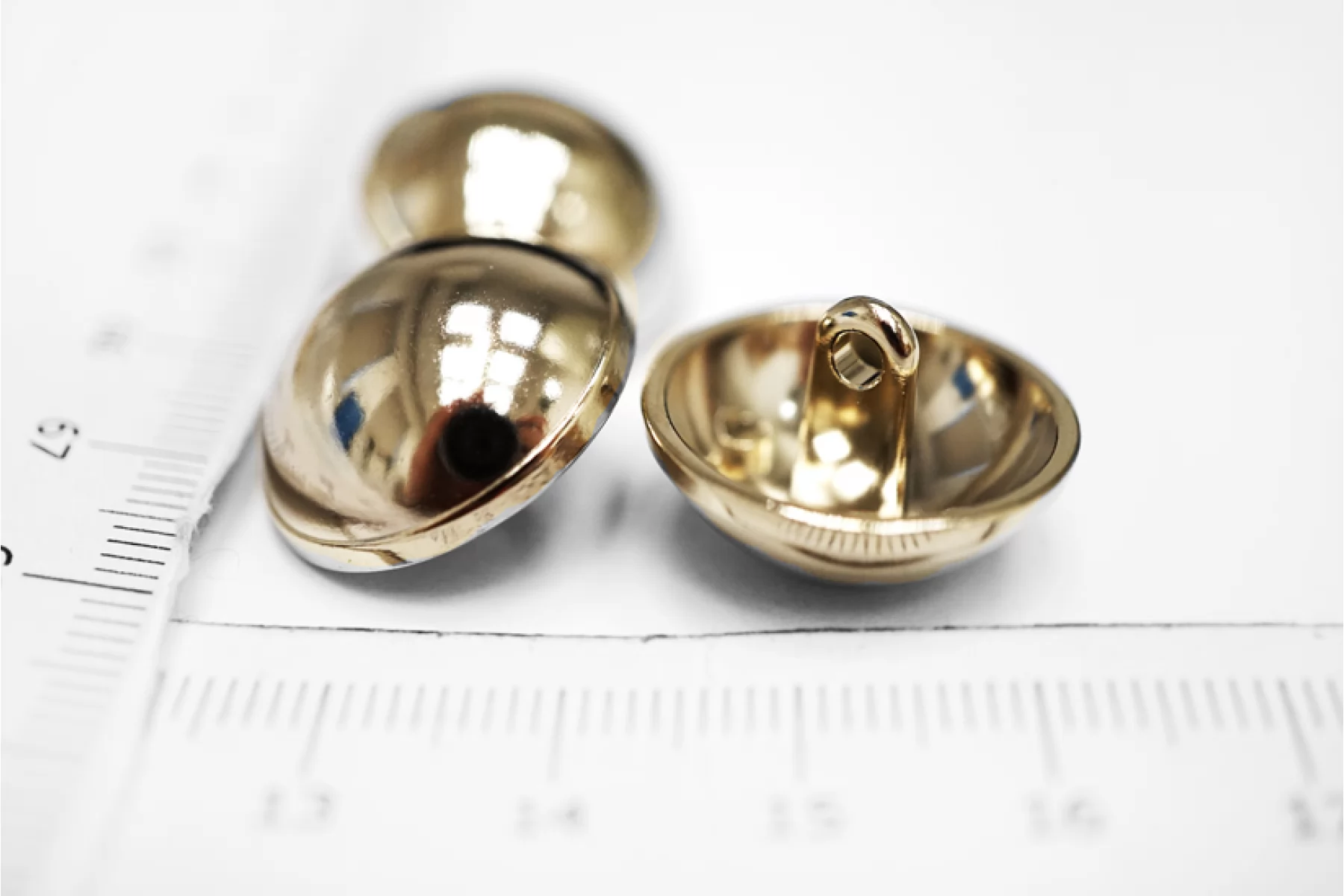 Пуговица металлическая, глянцевая, на ножке, золотистого цвета, размер 20 мм.
