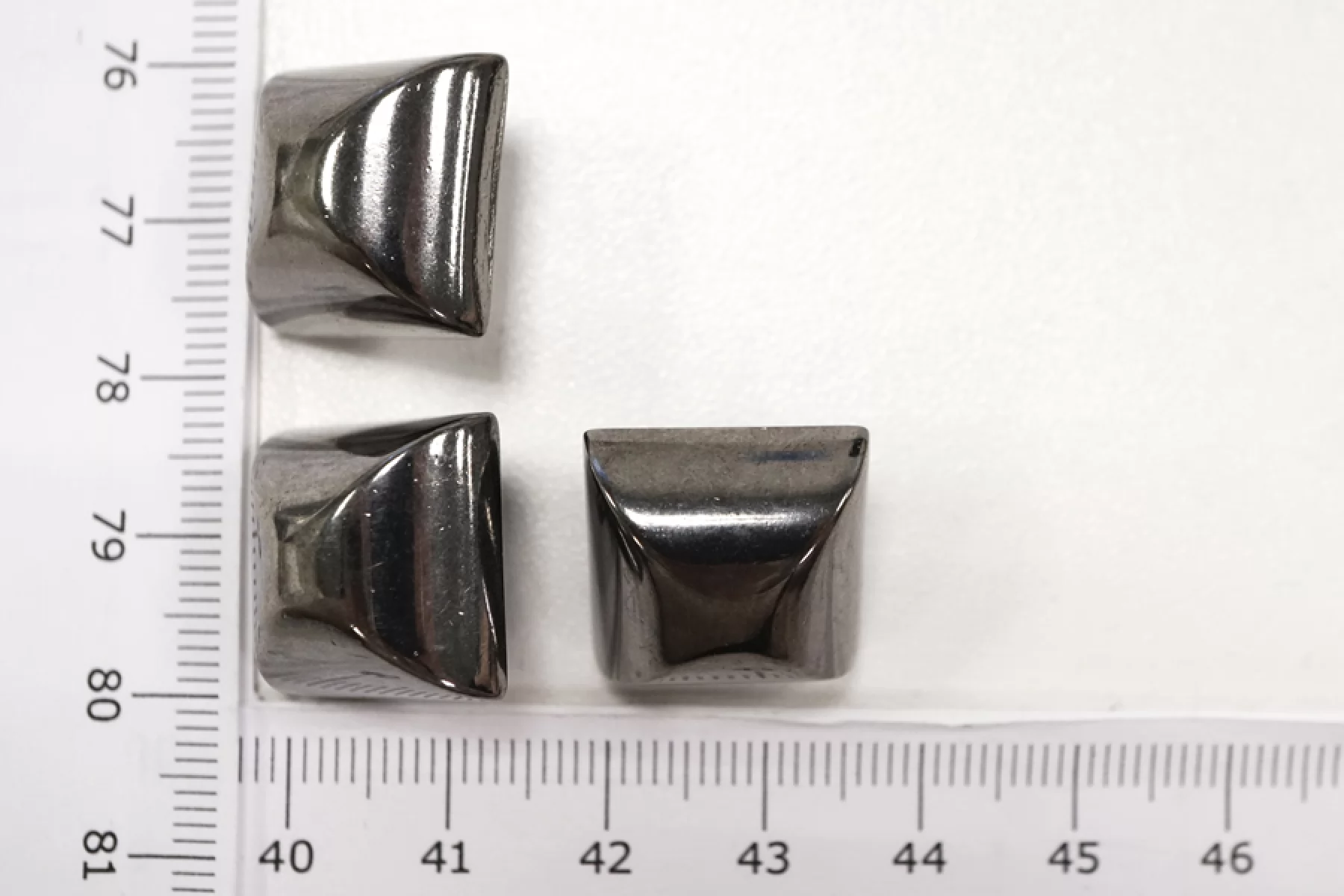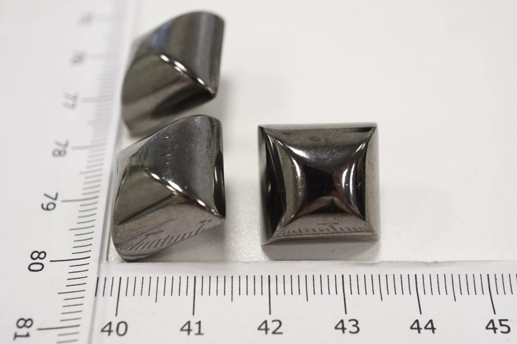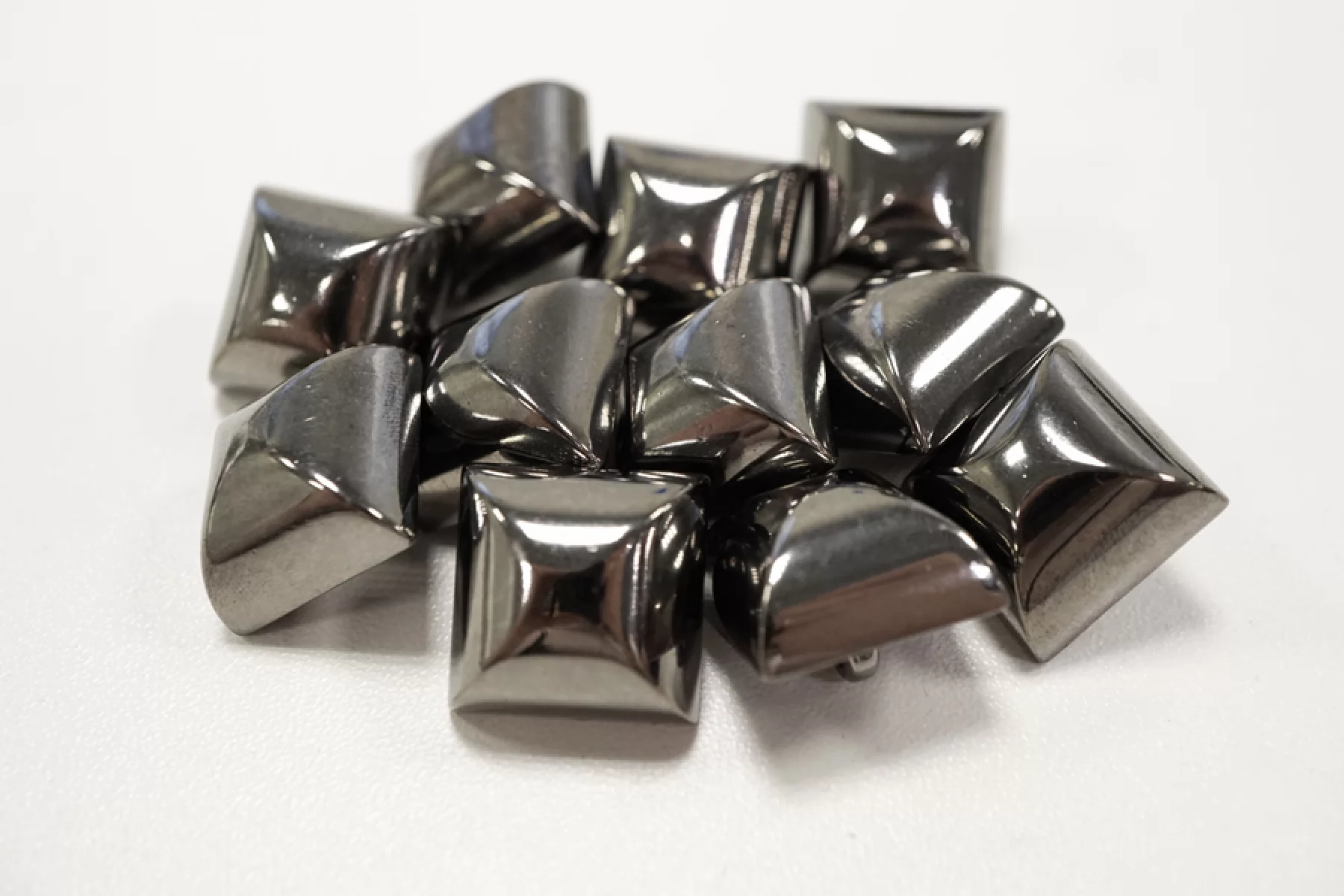Пуговица костюмно-пальтовая на ножке из металла квадратной формы, размер 17х17 мм, цвета темного никеля.