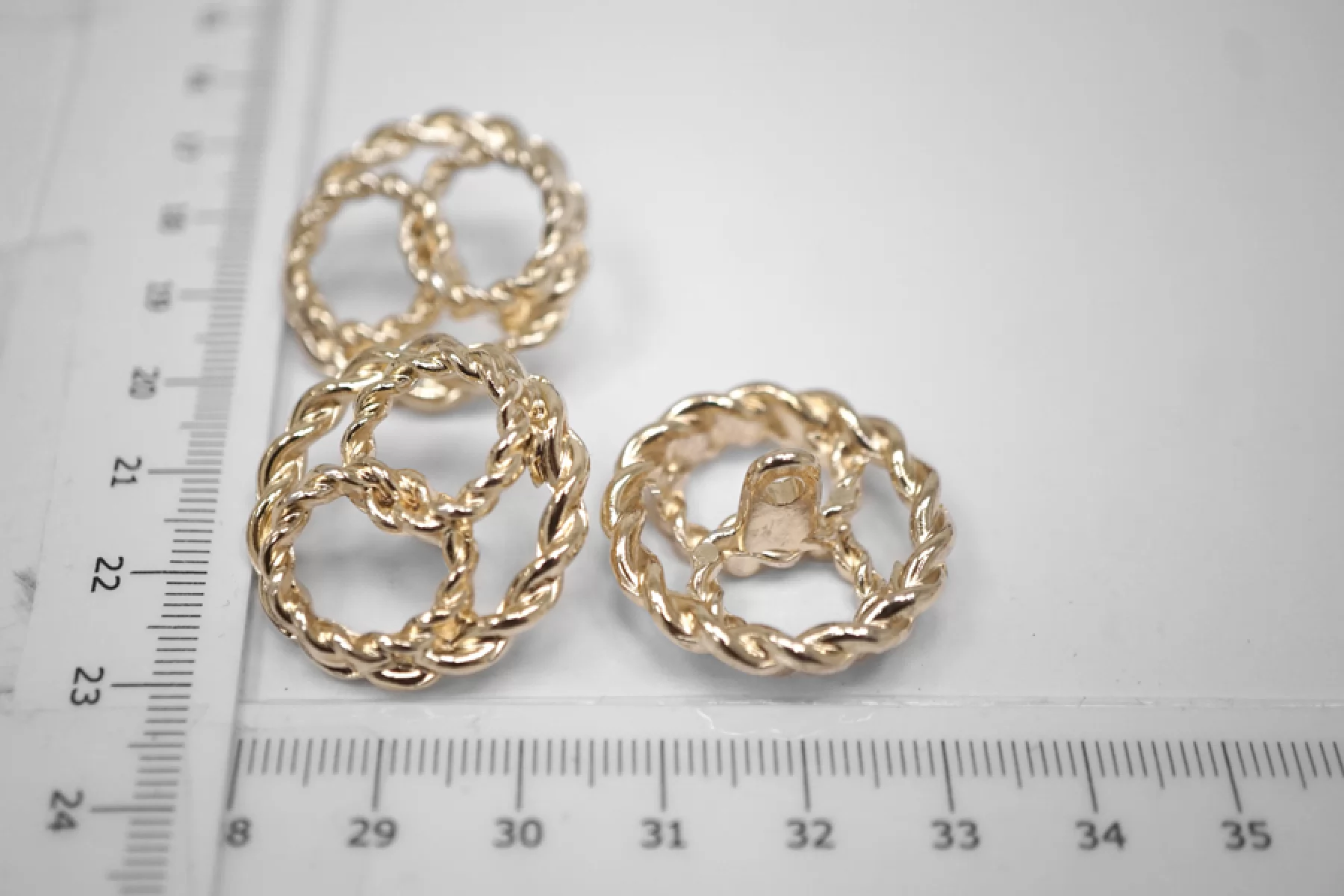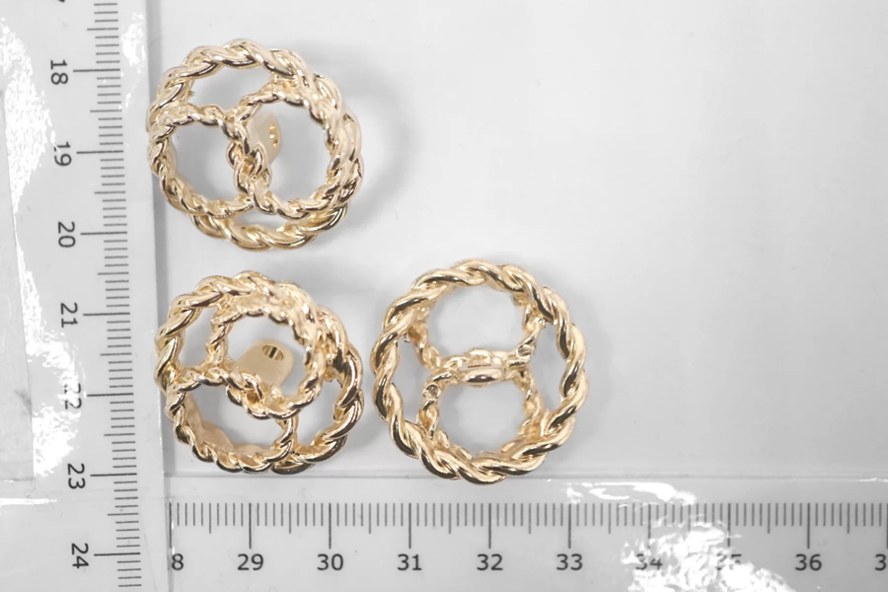 Пуговица костюмно-пальтовая на ножке из металла оригинальной формы, 38 мм, сделана под золото. Пуговица партнер в размере 20 мм: 28022316