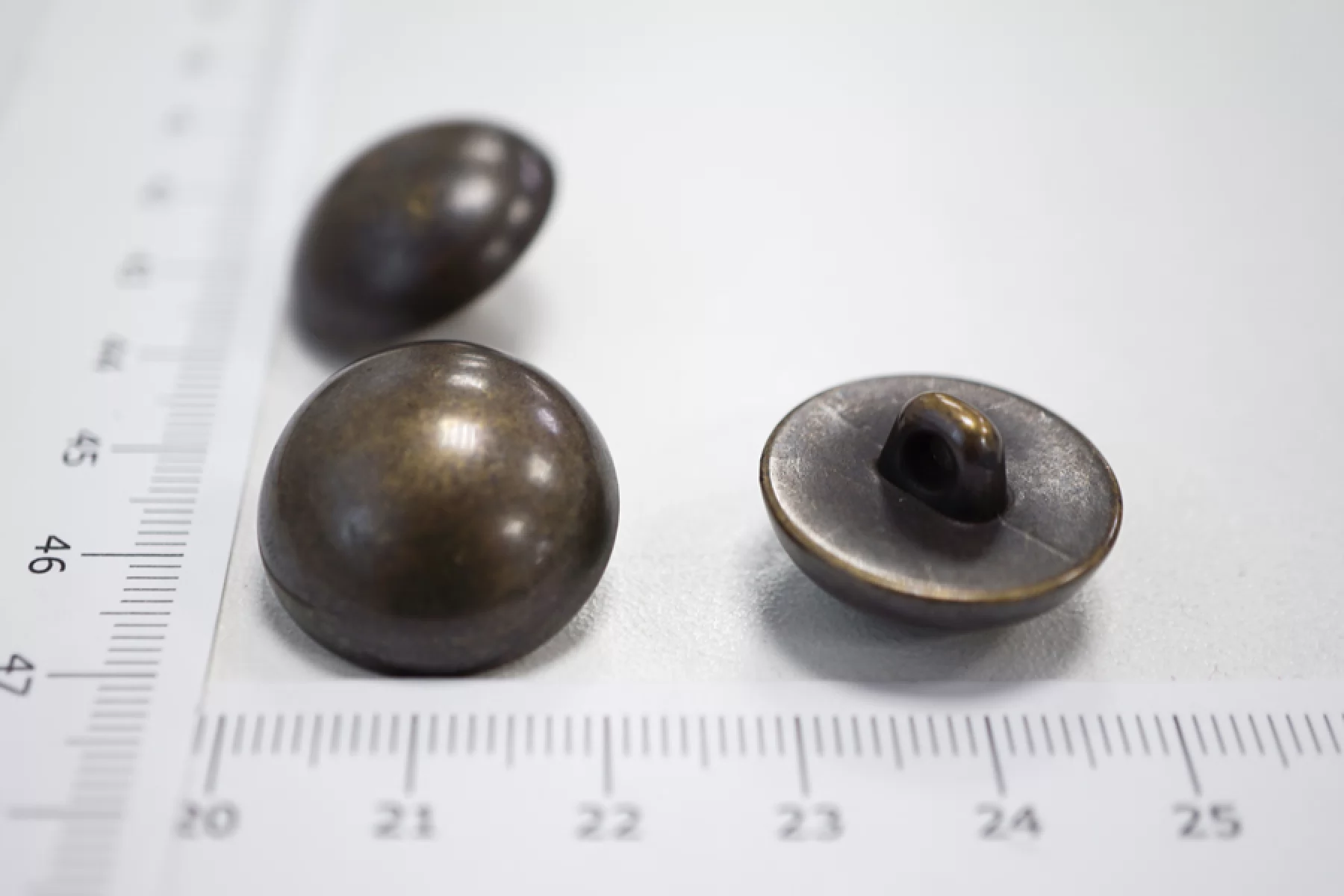 Пуговица костюмно-пальтовая, размер 20 мм, в форме полусферы, бронзового цвета, металл.