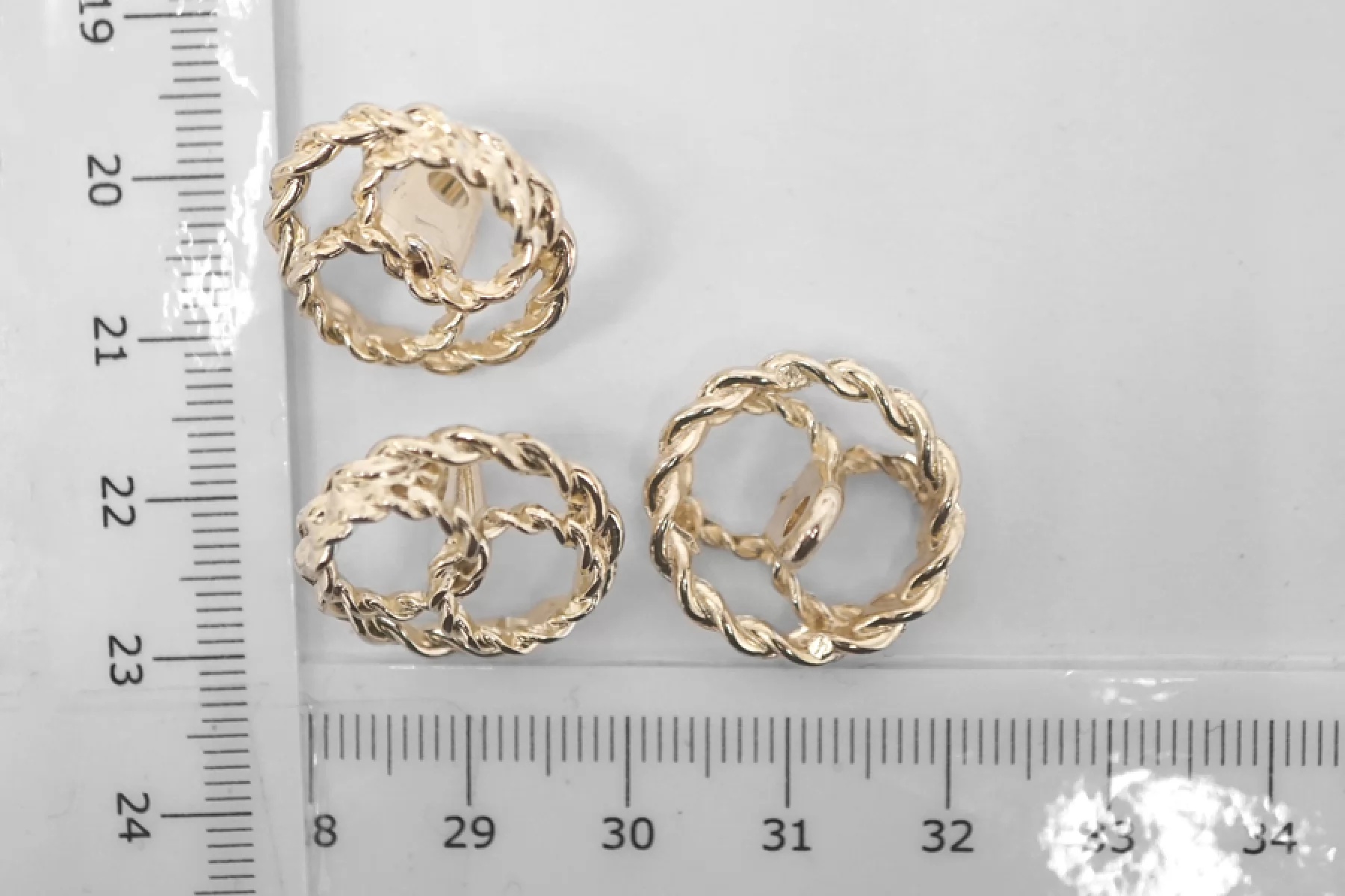 Пуговица костюмно-плательная на ножке из металла оригинальной формы, 20 мм, сделана под золото. Пуговица партнер в размере 38 мм: 28022317