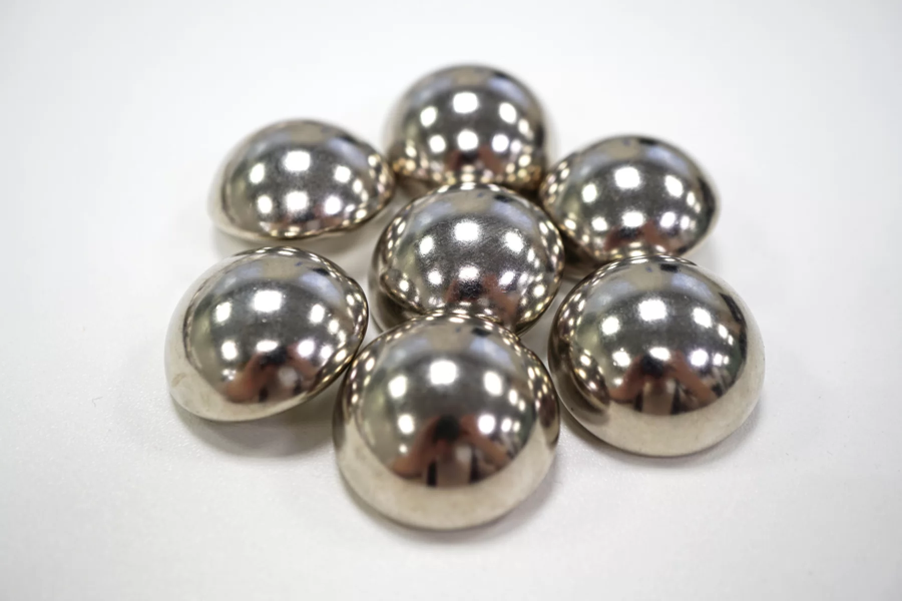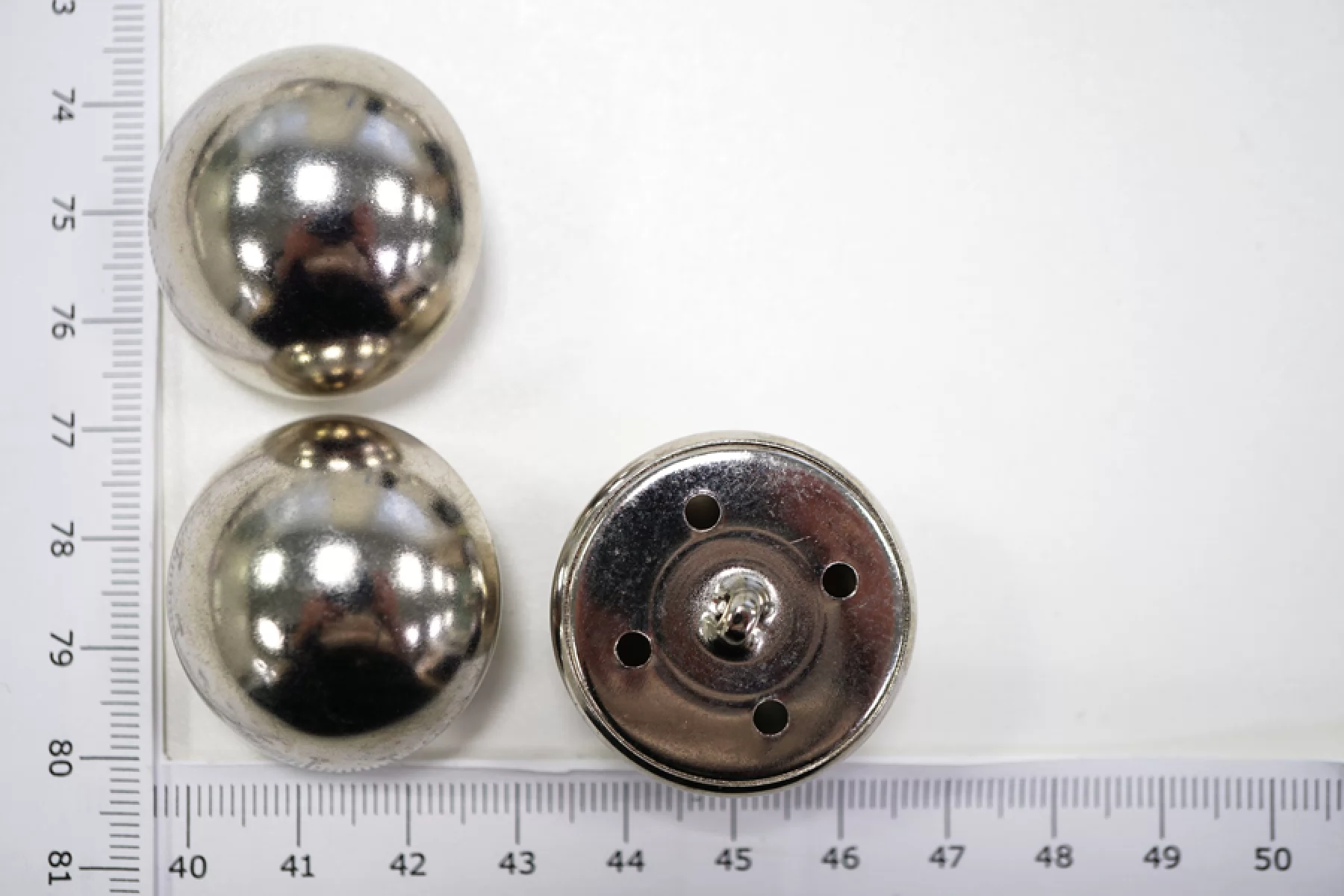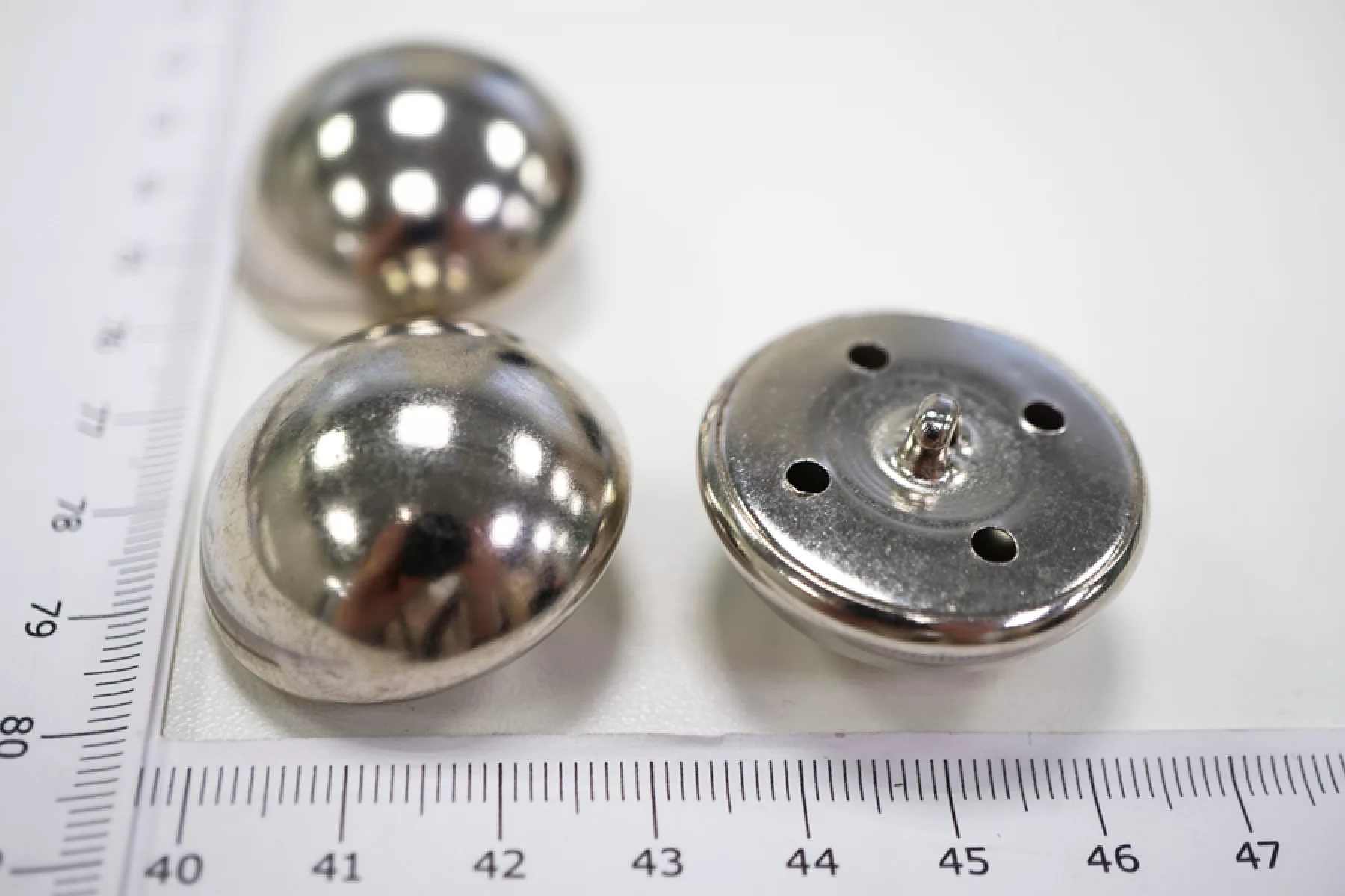 Пуговица пальтовая на ножке из металла, размер 33 мм, серебряного цвета в форме полусферы.