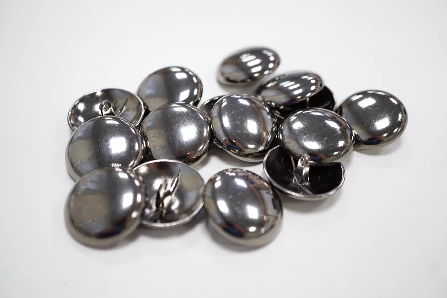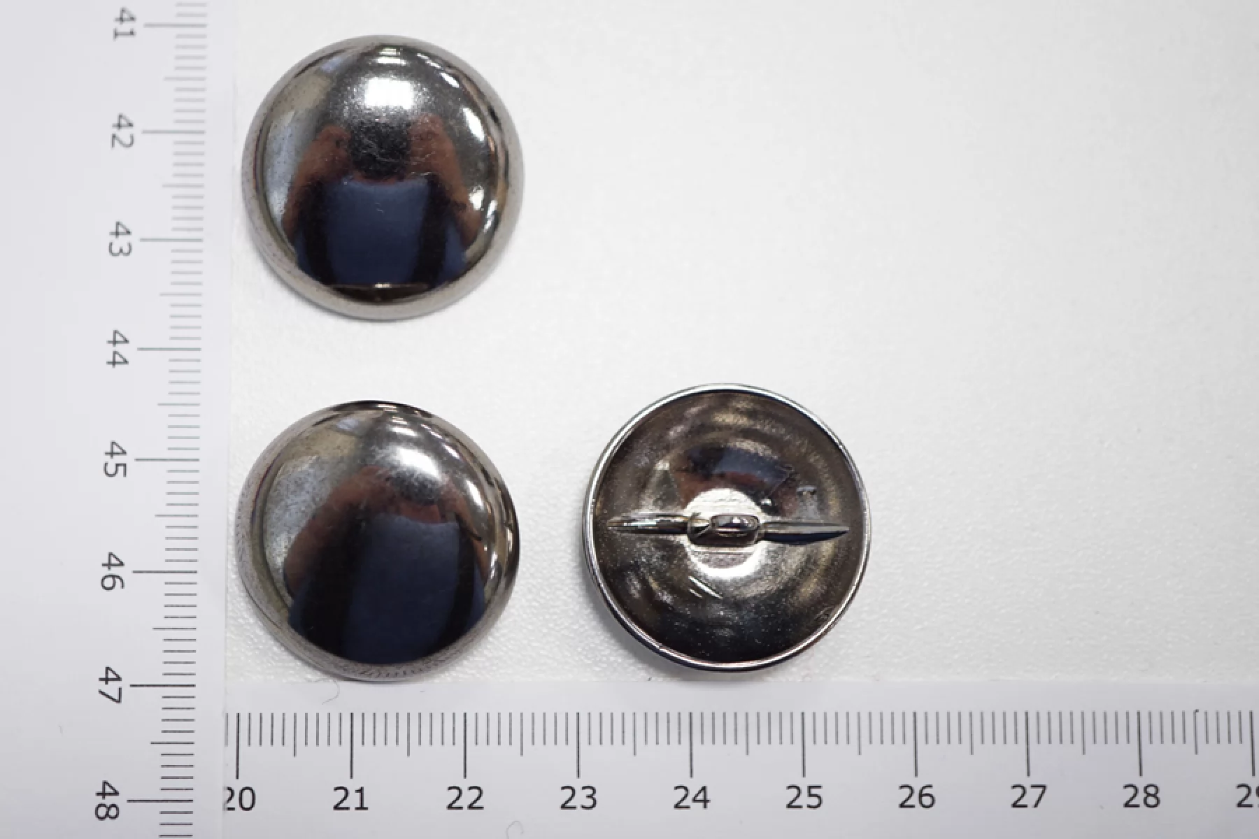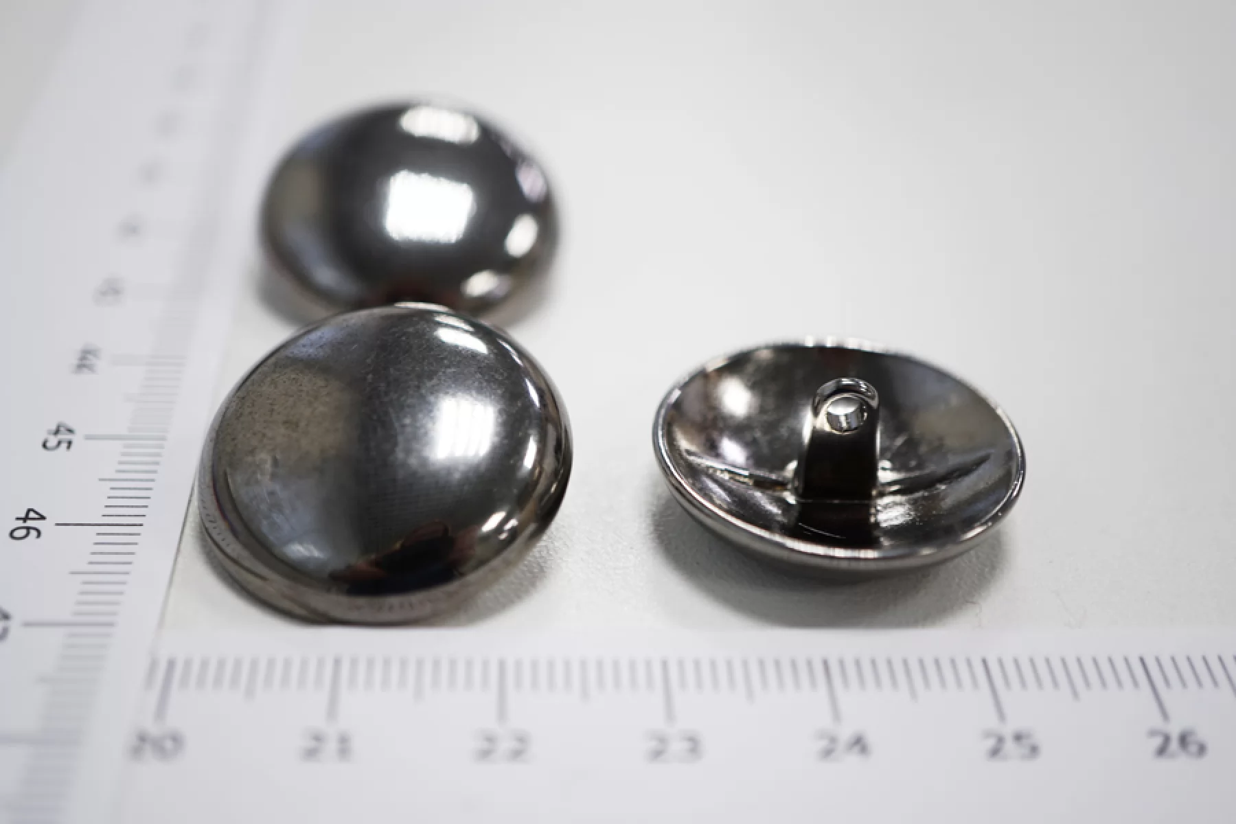 Пуговица пальтовая на ножке металлическая, размер 26 мм, серебряного цвета.