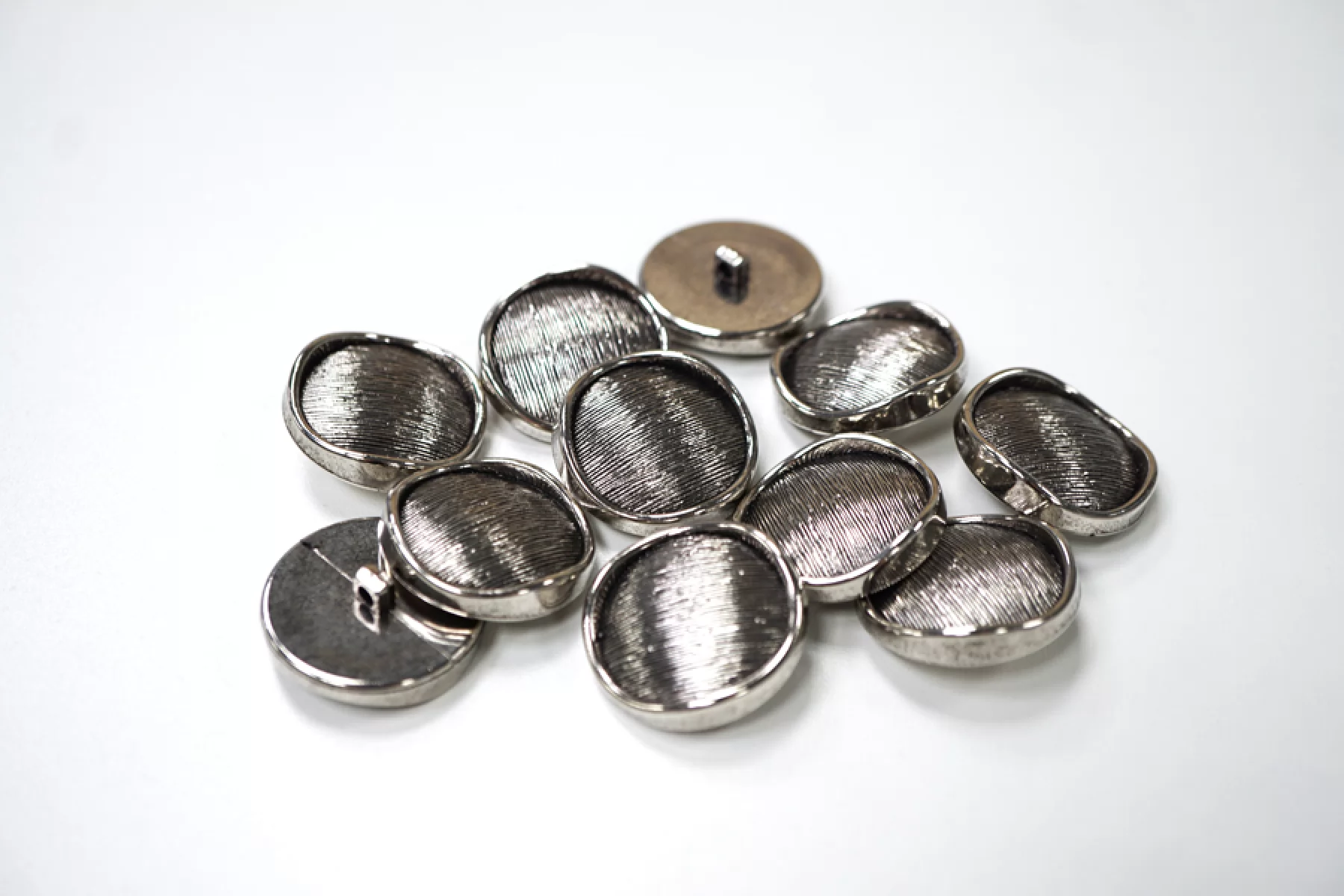 Пуговица на ножке пальтовая металлическая, легкая, размер 30 мм. Ободок пуговицы неправильной формы, серединка - фактурная.