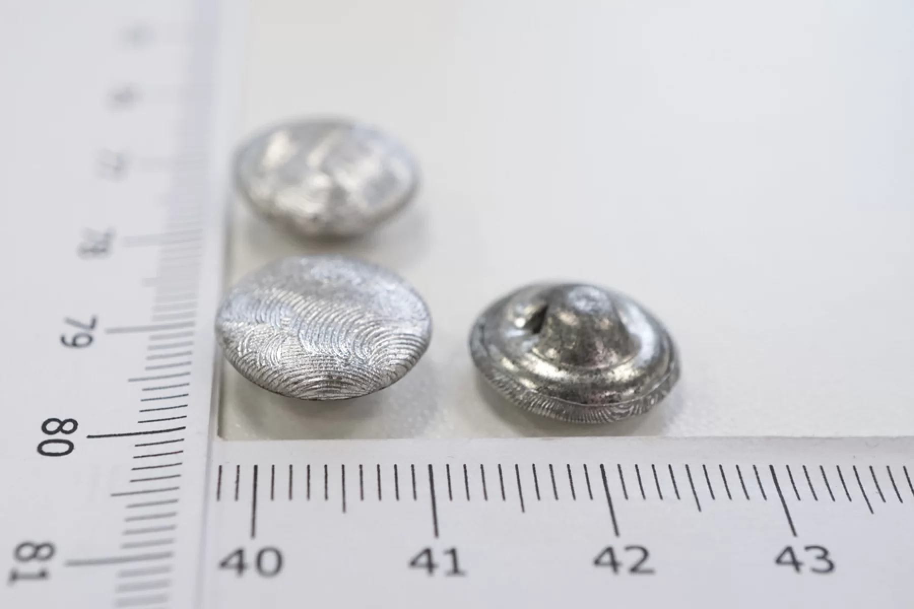 Пуговица на ножке рубашечно-плательная металлическая, размер 13 мм, с серебряным напылением и ребристой поверхностью.
