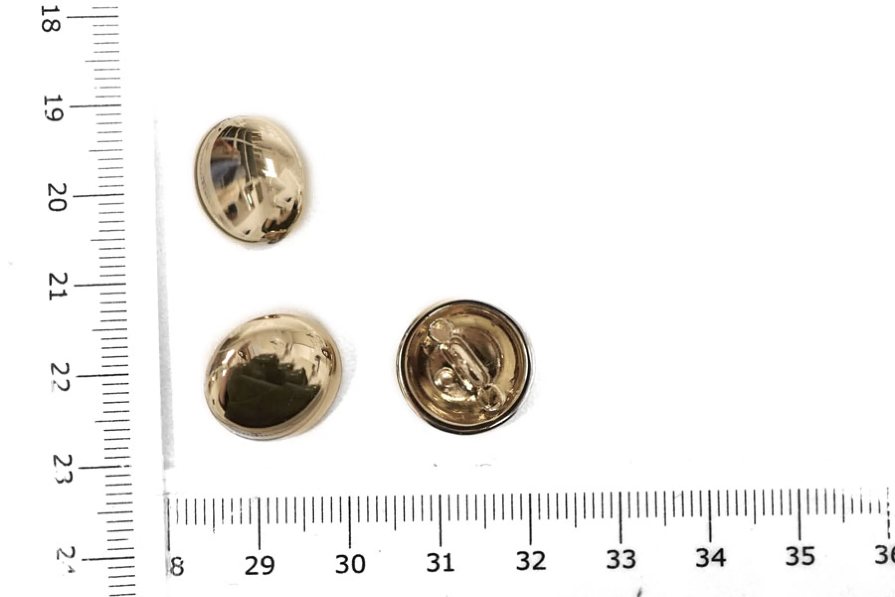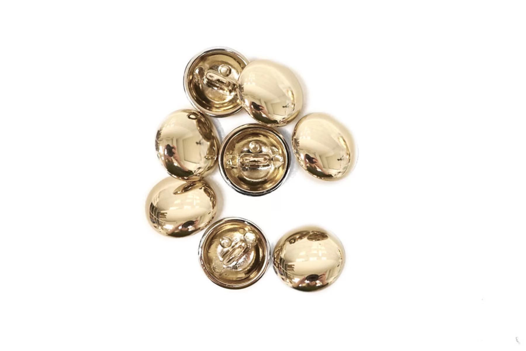 Пуговица металлическая под золото глянцевая, на ножке, размер 15 мм.