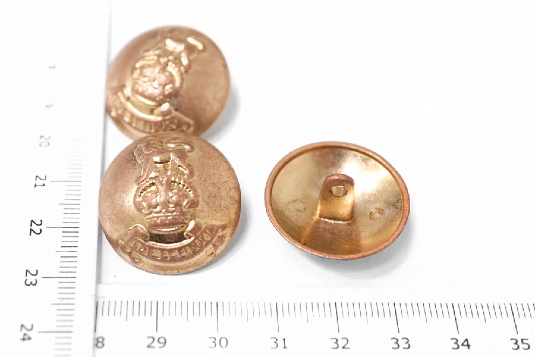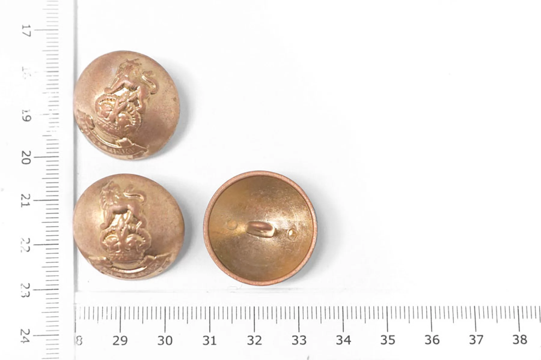 Пуговица металлическая золотисто-розового оттенка с выделкой в виде льва, размер 26 мм.
