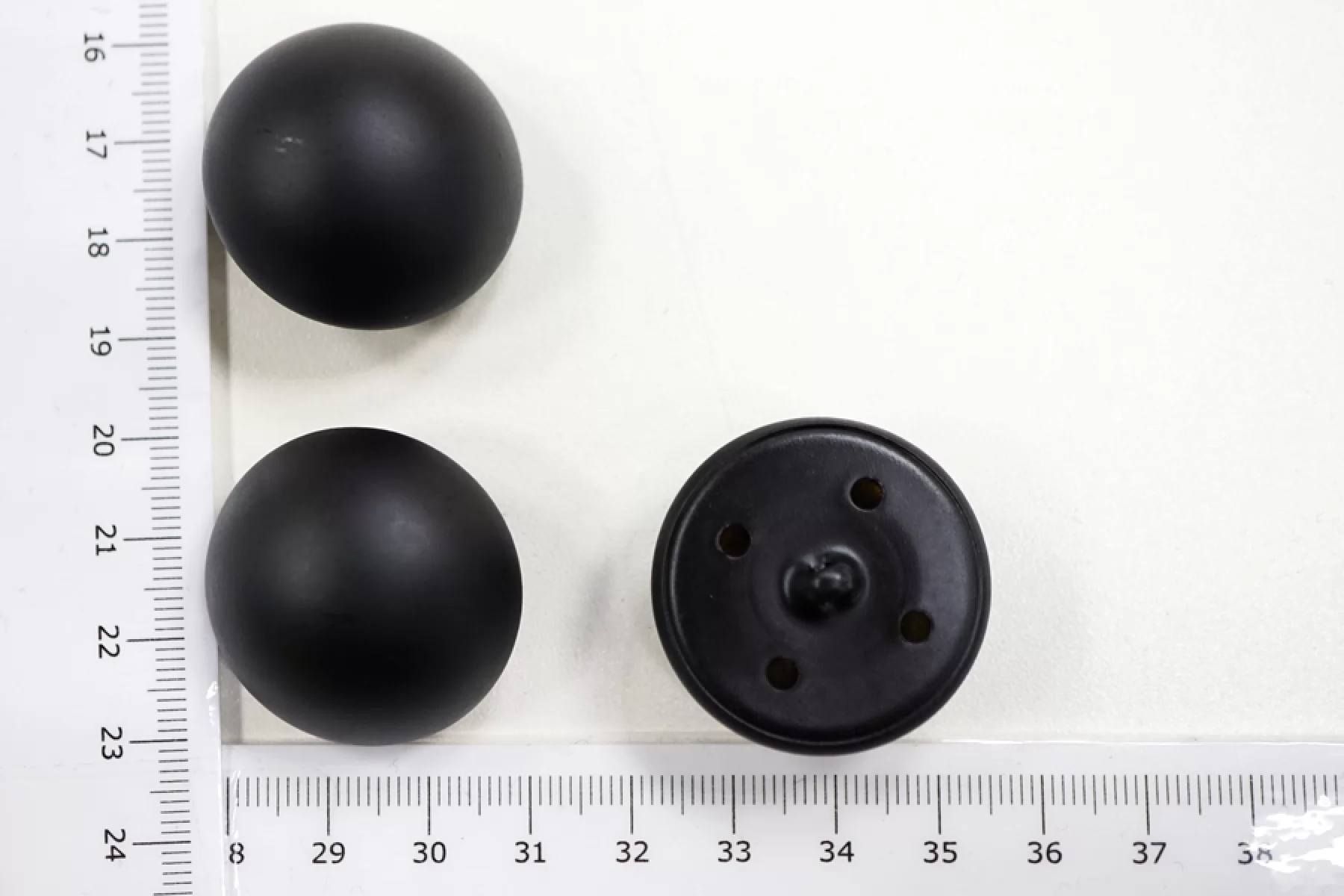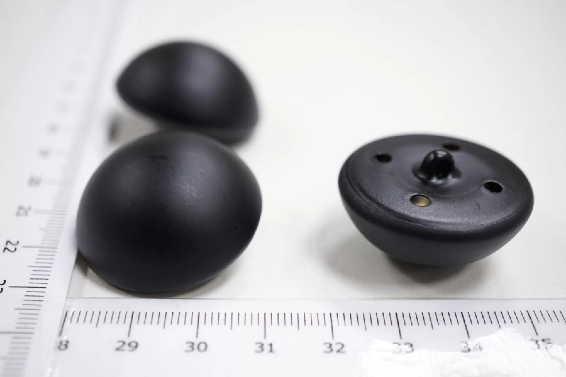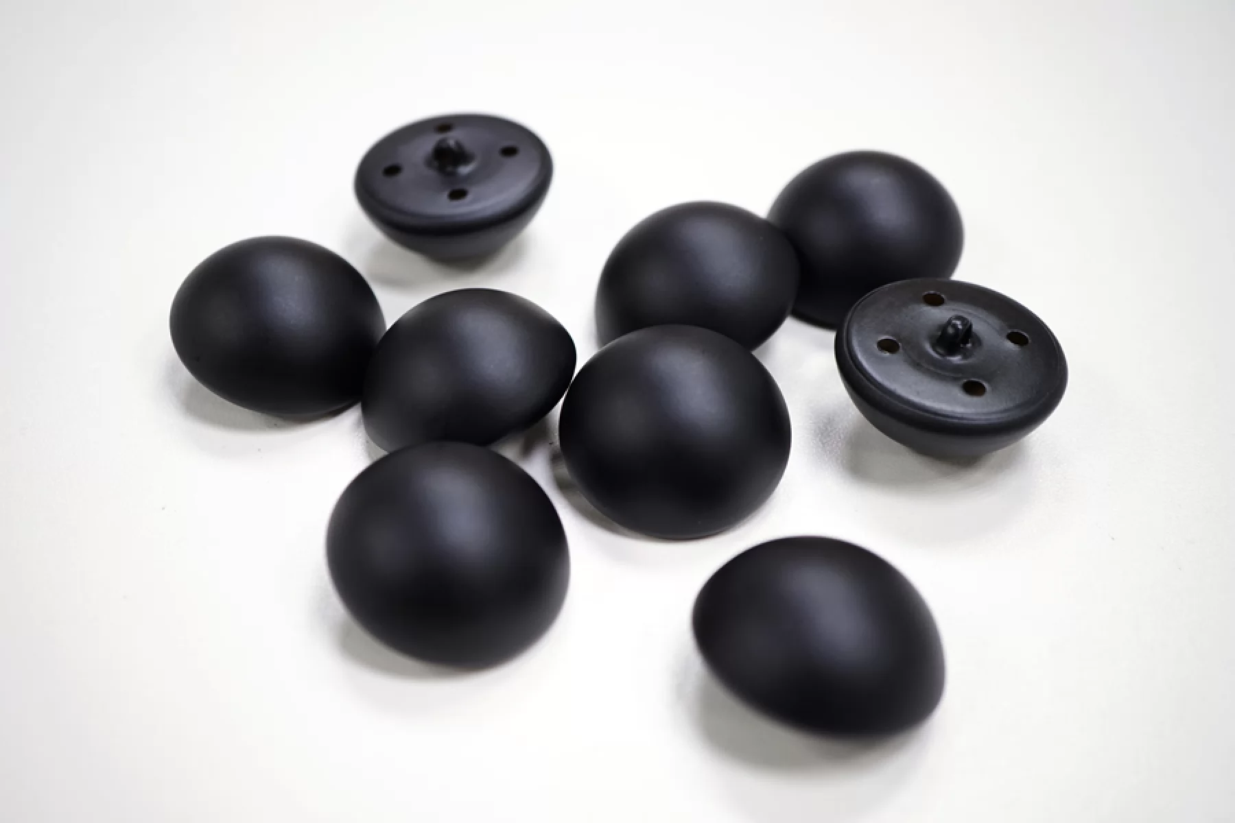 Пуговица пальтовая из пластика, черного цвета с гладкой матовой поверхностью. Диаметр - 32 мм.