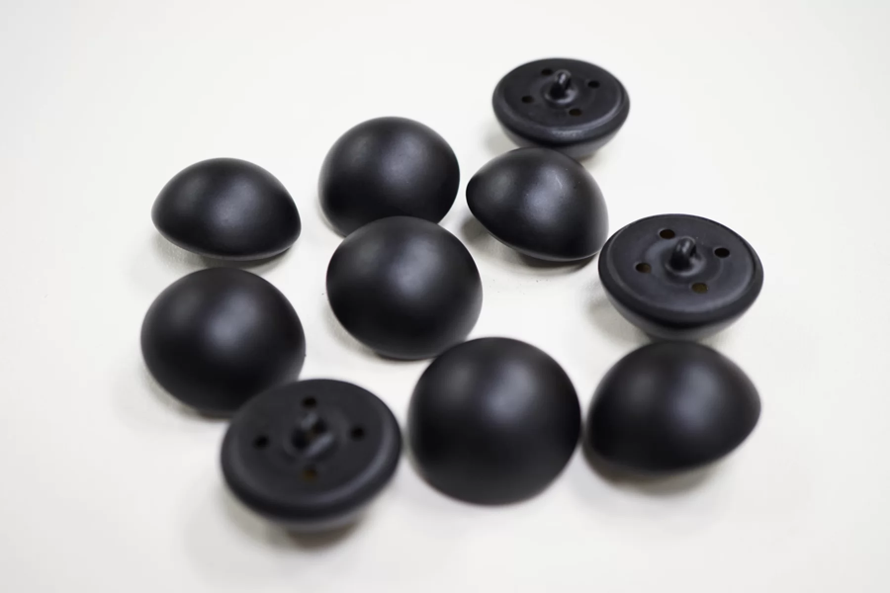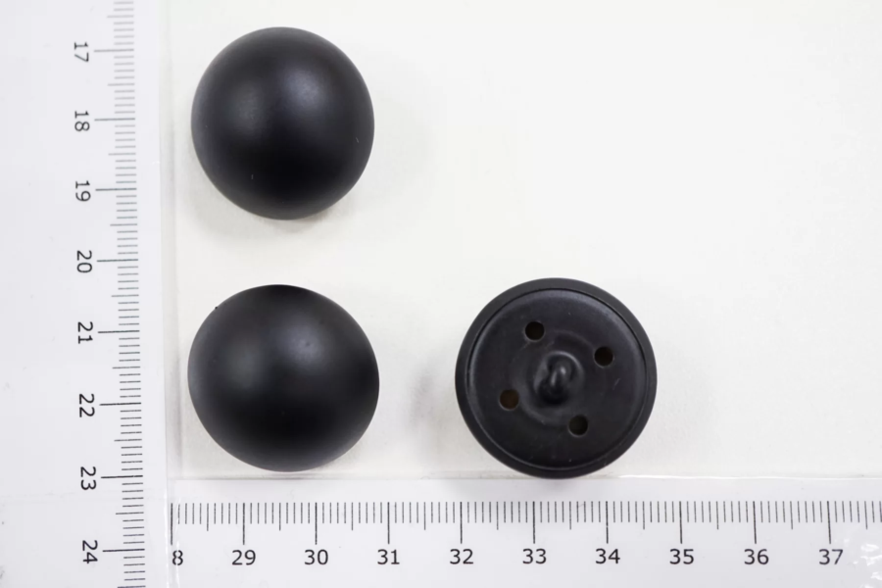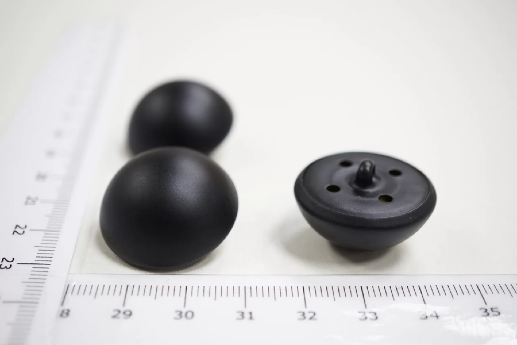 Пуговица пальтовая из пластика, черного цвета с гладкой матовой поверхностью. Диаметр - 27 мм.