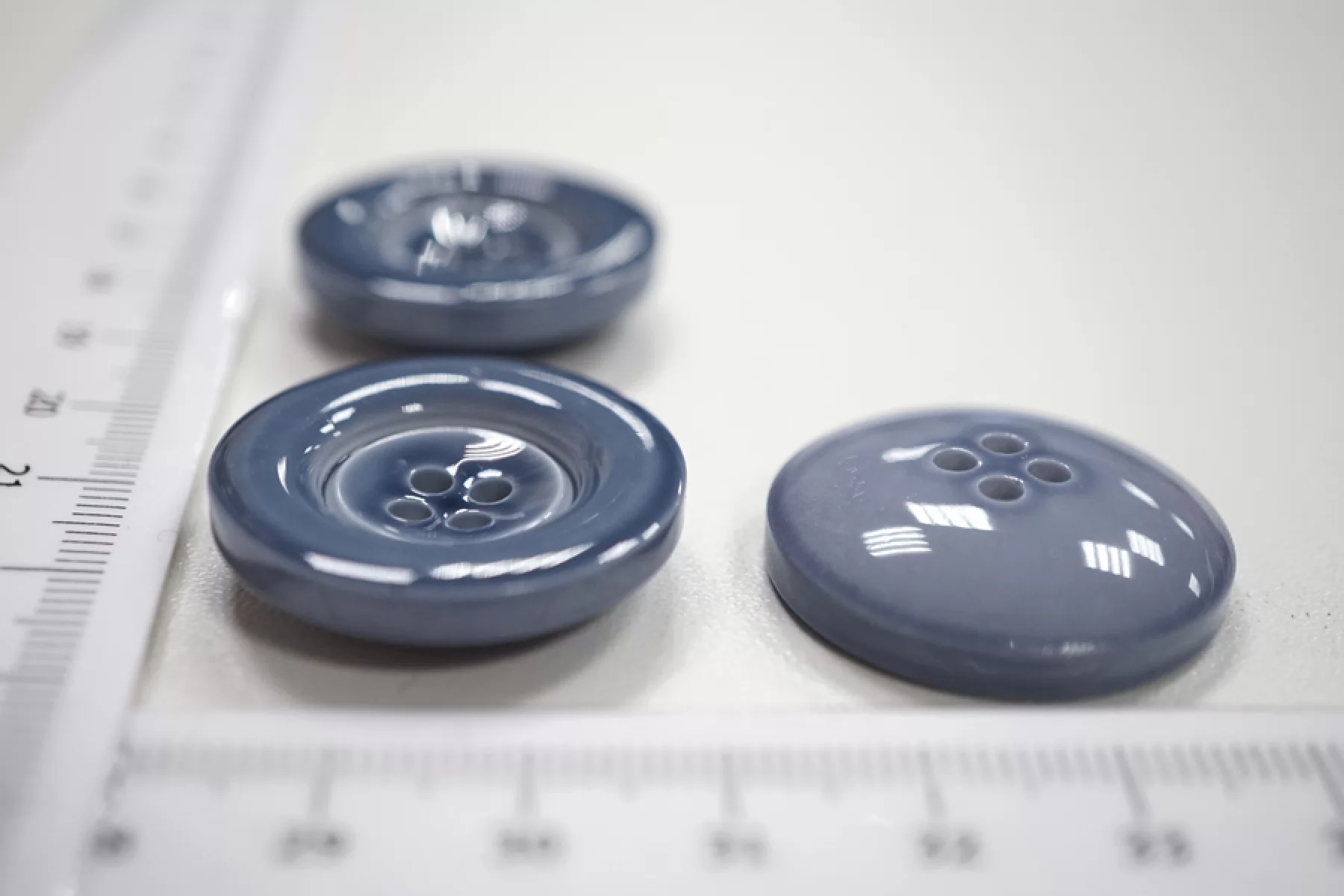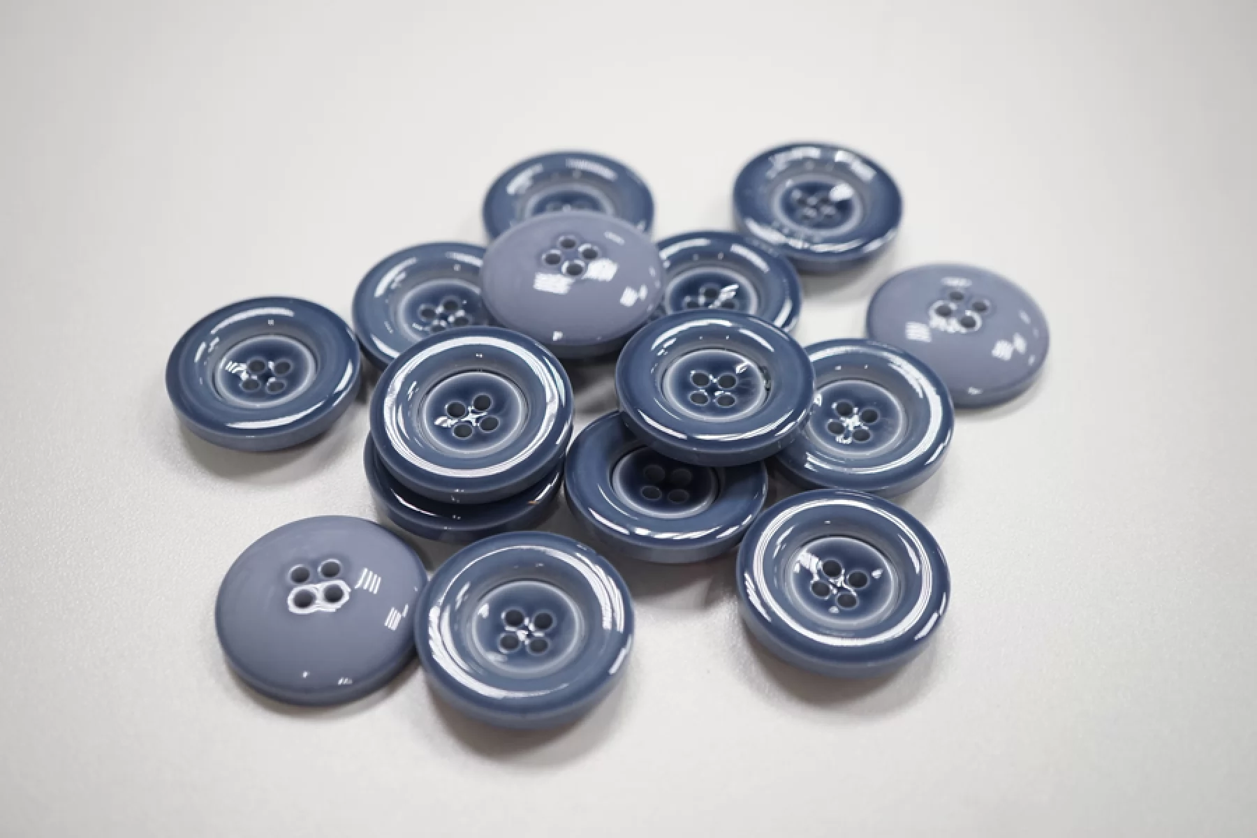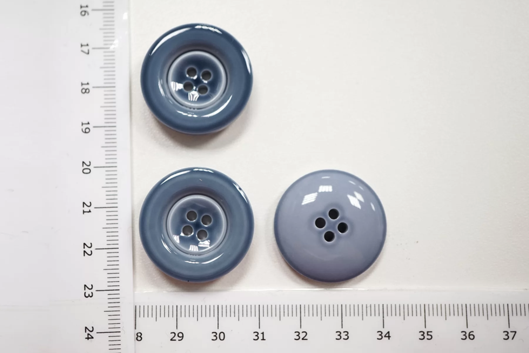 Пуговица костюмно-рубашечная пластиковая, размер 27 мм, серо-голубая цвета с гладкой глянцевой поверхностью и формой, похожей на блюдечко.