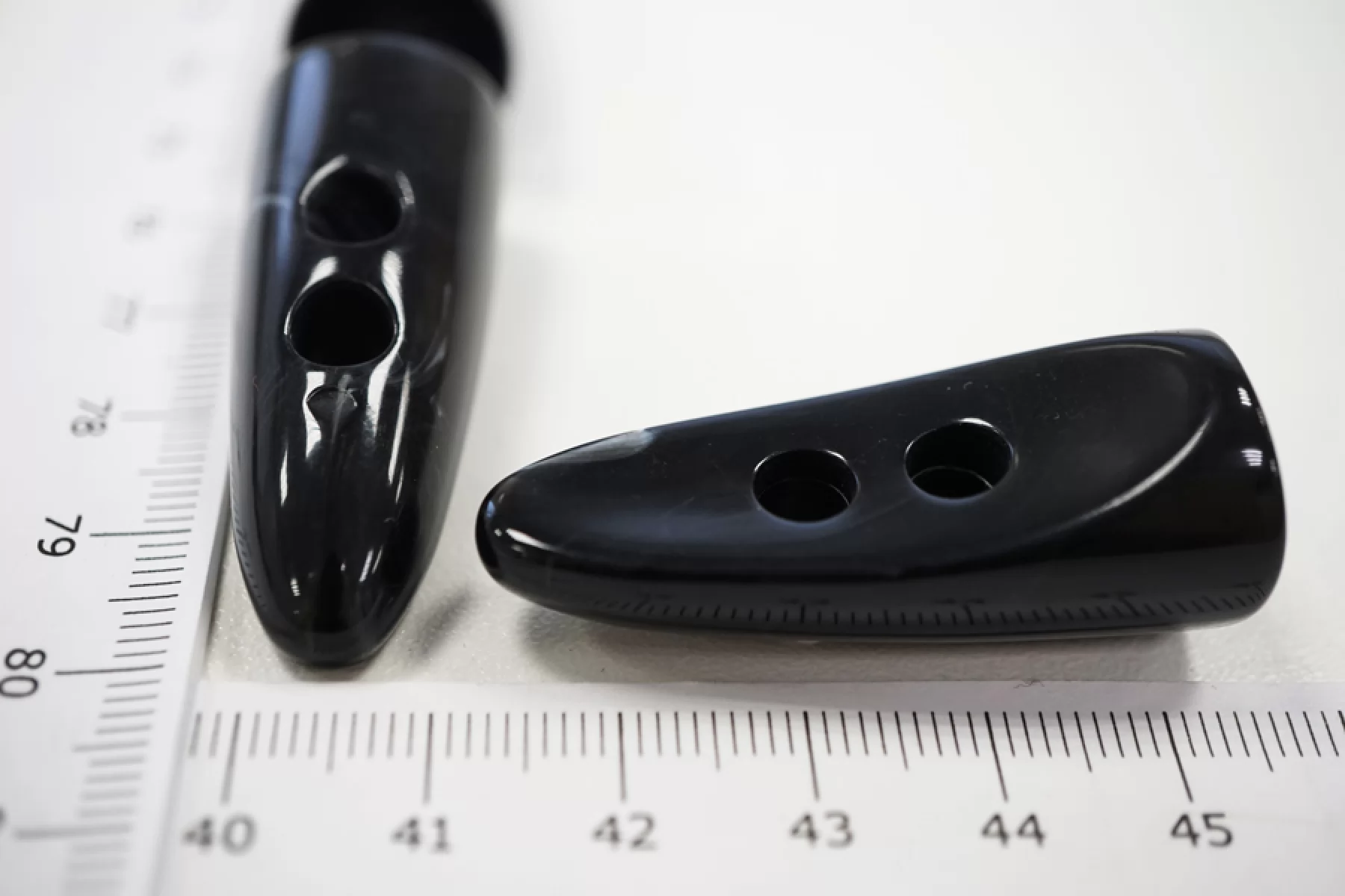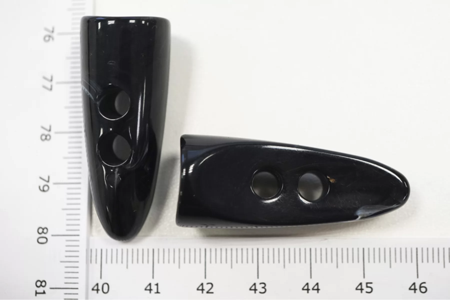 Пуговица пальтовая из пластика, размер 42 мм, черного цвета. Классическая форма "клык".