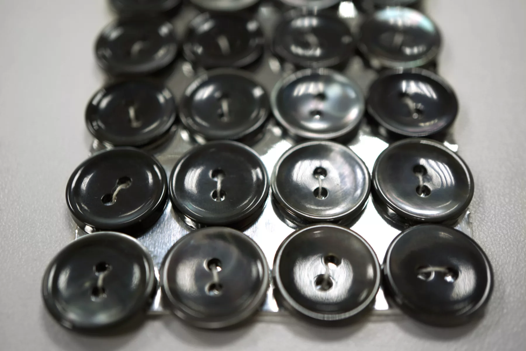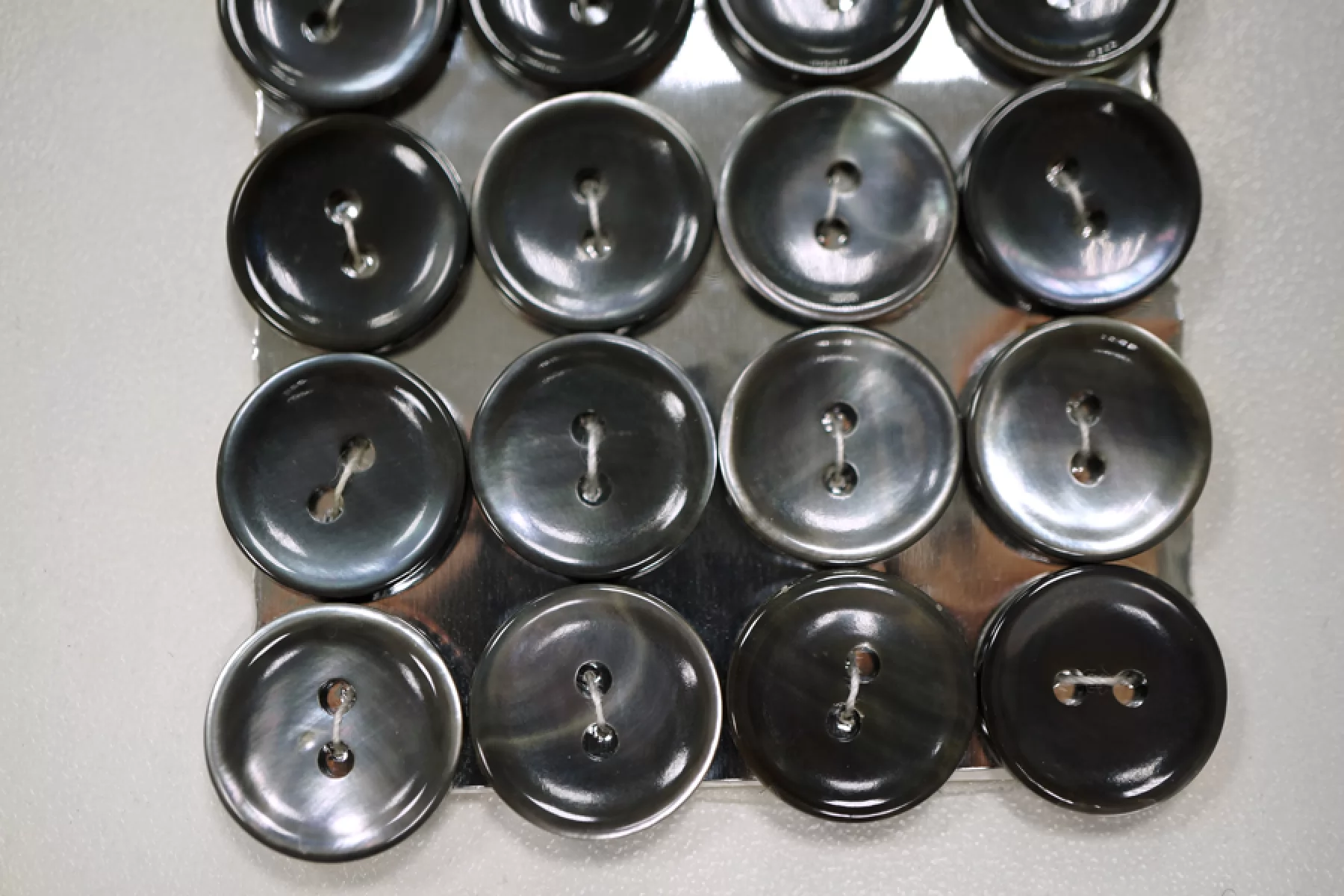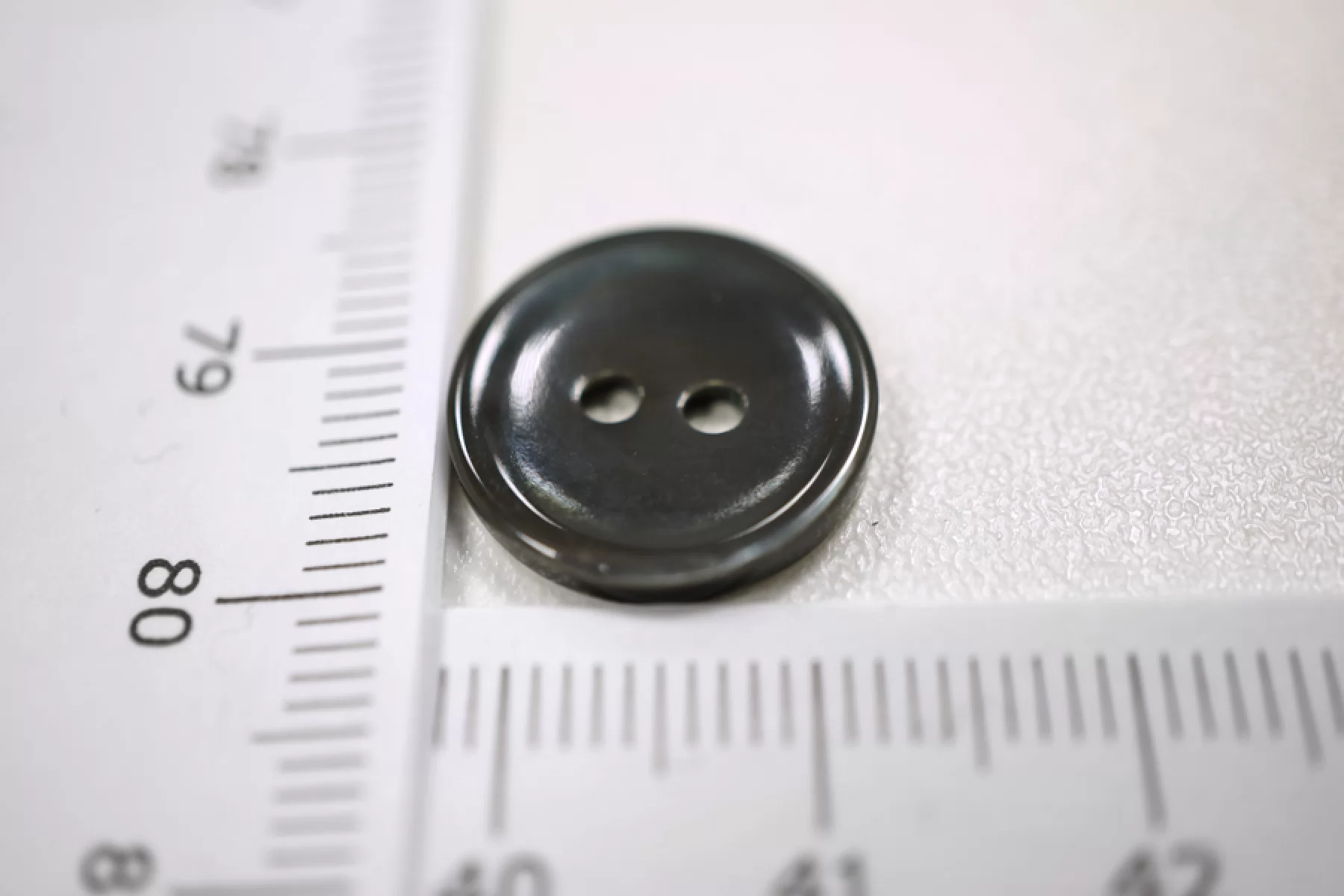 Пуговица из перламутра, размер 15 мм, цвет черно-серый с переливом. Пуговицы из натурального перламутра хрупкие, могут сломаться при падении с высоты или при сильном сжатии.