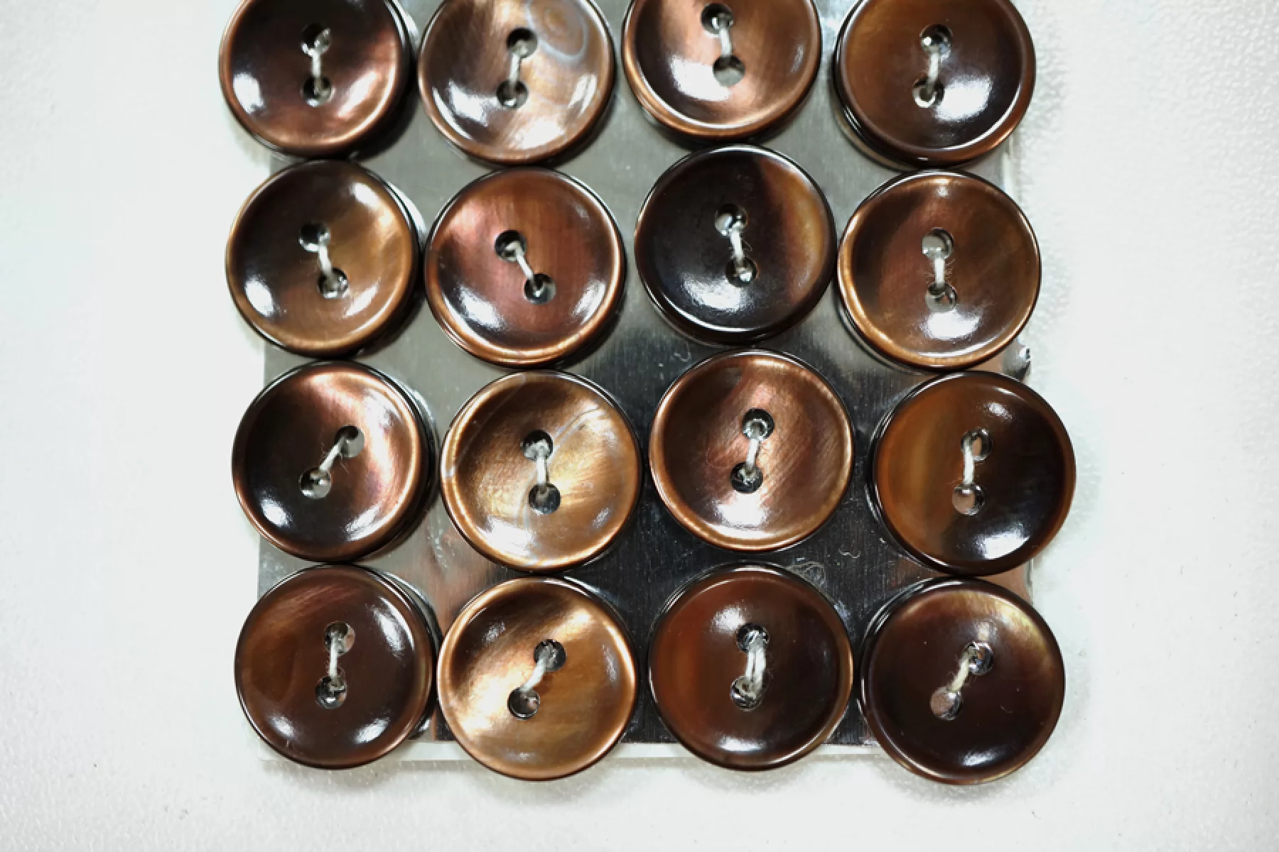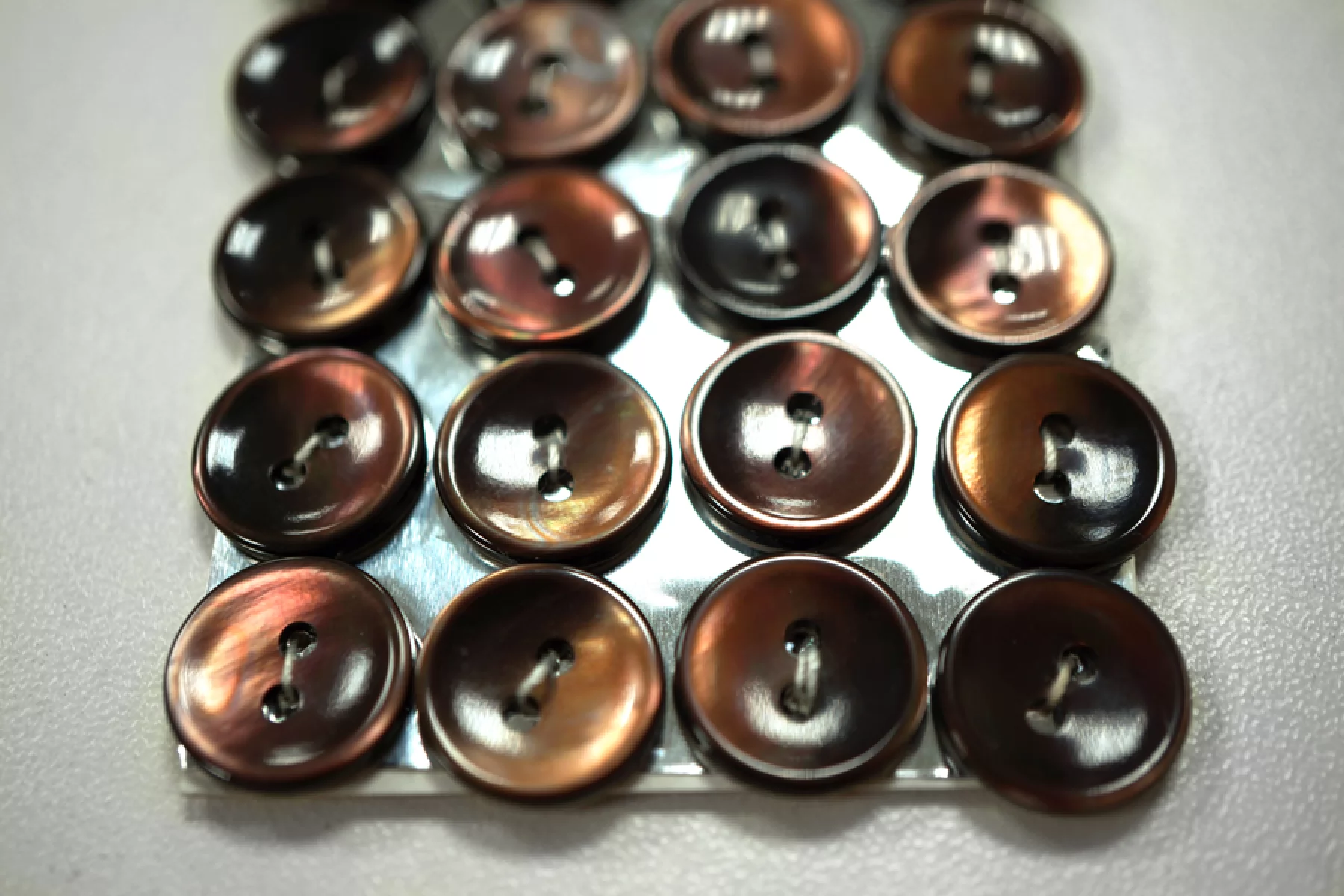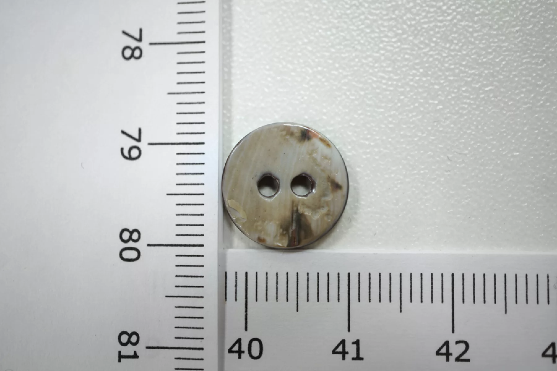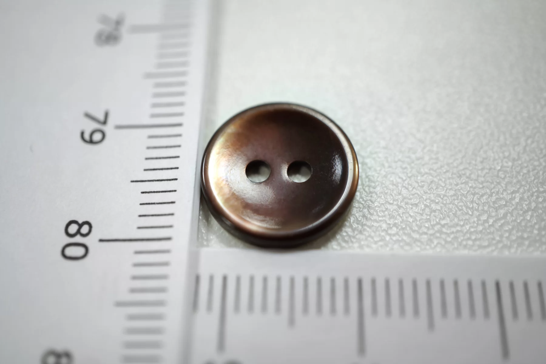Пуговица из перламутра, размер 12 мм, цвет коричневый с золотисто-розовым переливом. Пуговицы из натурального перламутра хрупкие, могут сломаться при падении с высоты или при сильном сжатии.