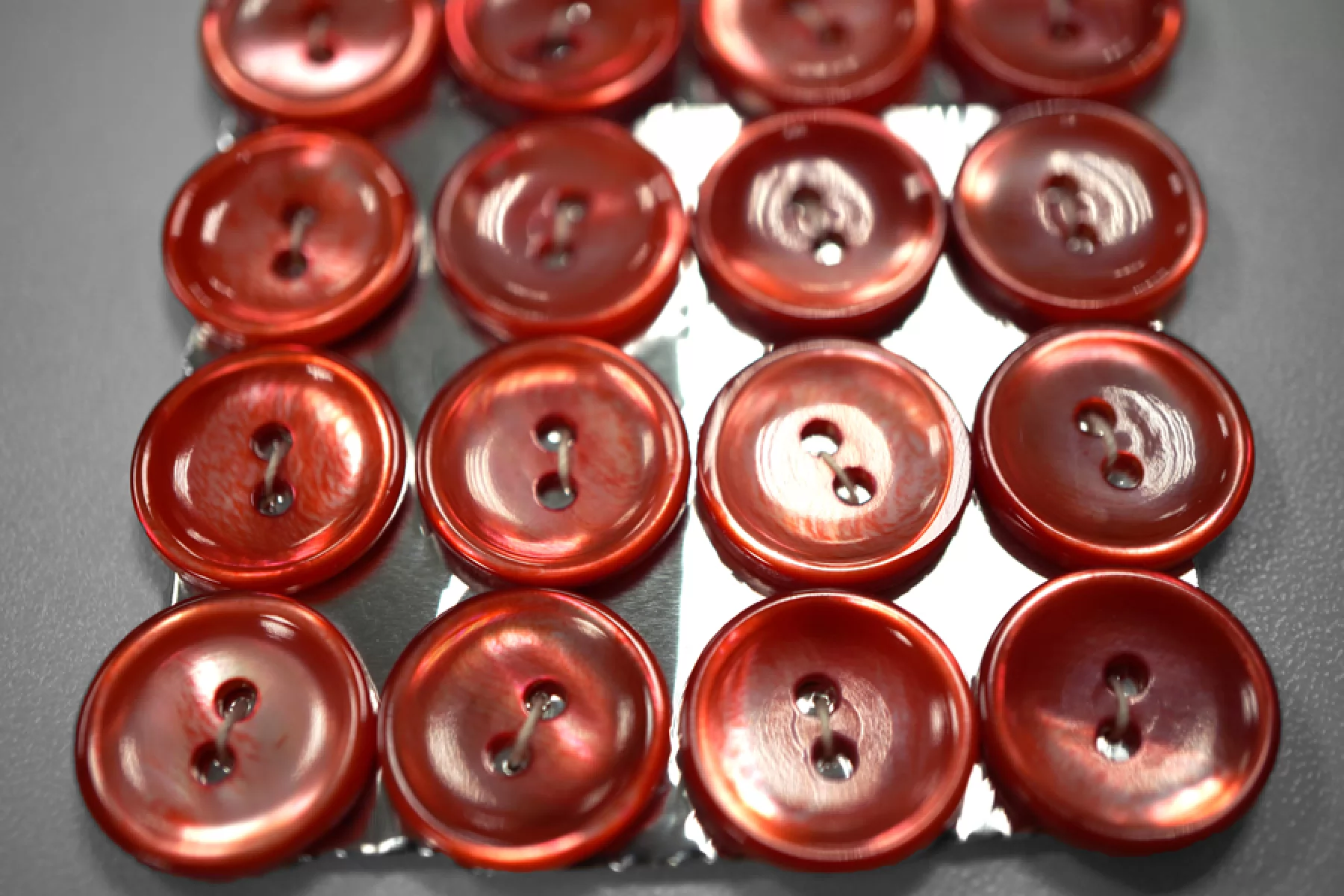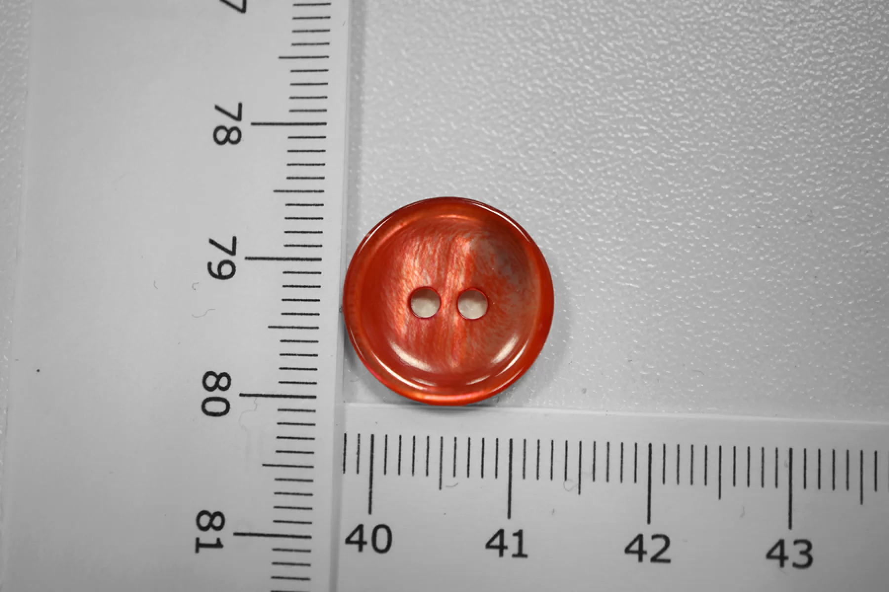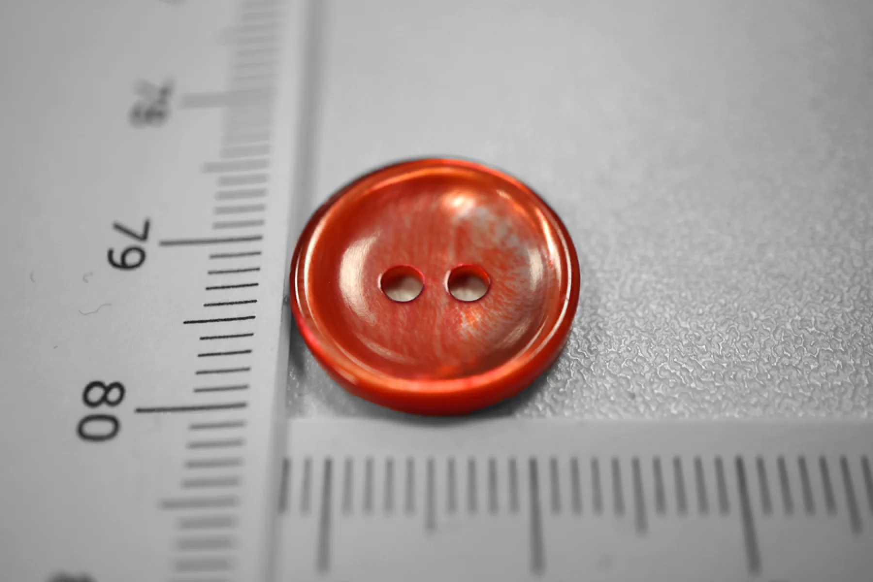 Пуговица из перламутра, размер 15 мм, цвет красный с переливом. Пуговицы из натурального перламутра хрупкие, могут сломаться при падении с высоты или при сильном сжатии.