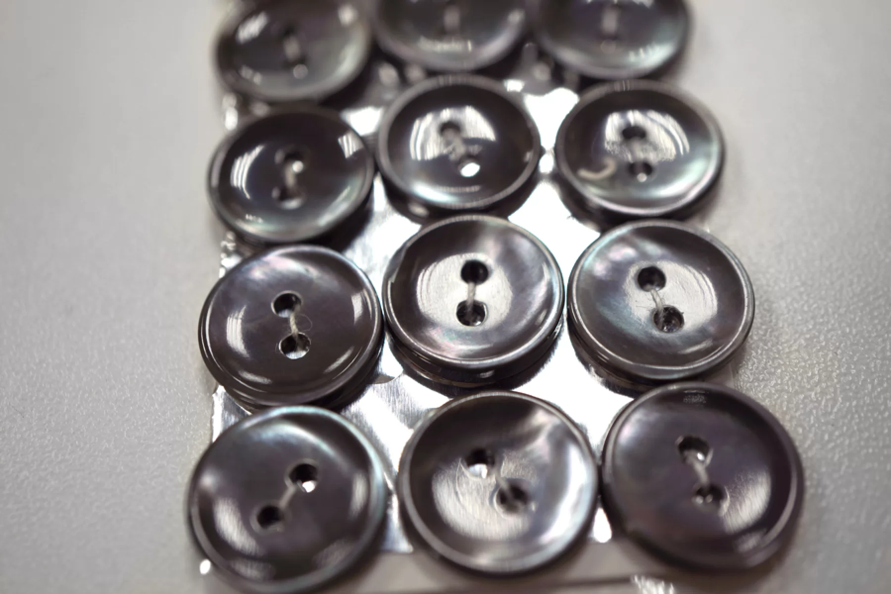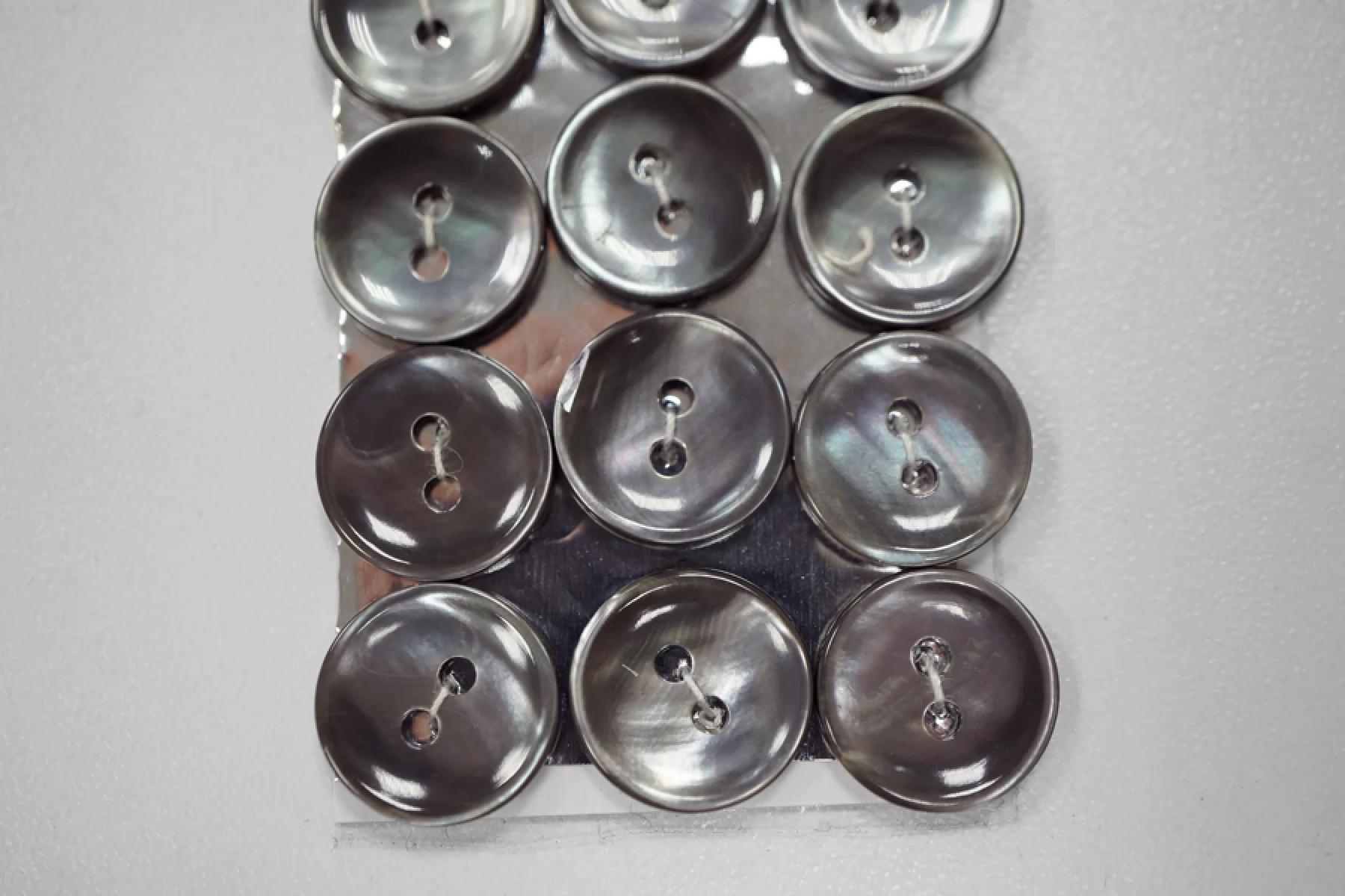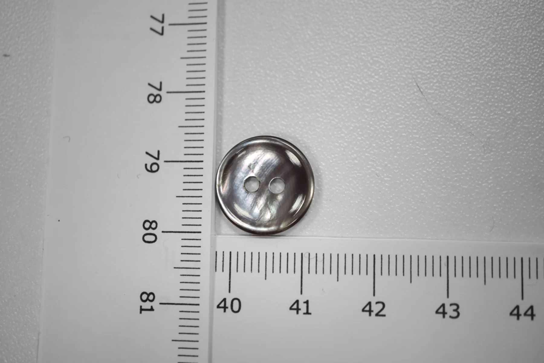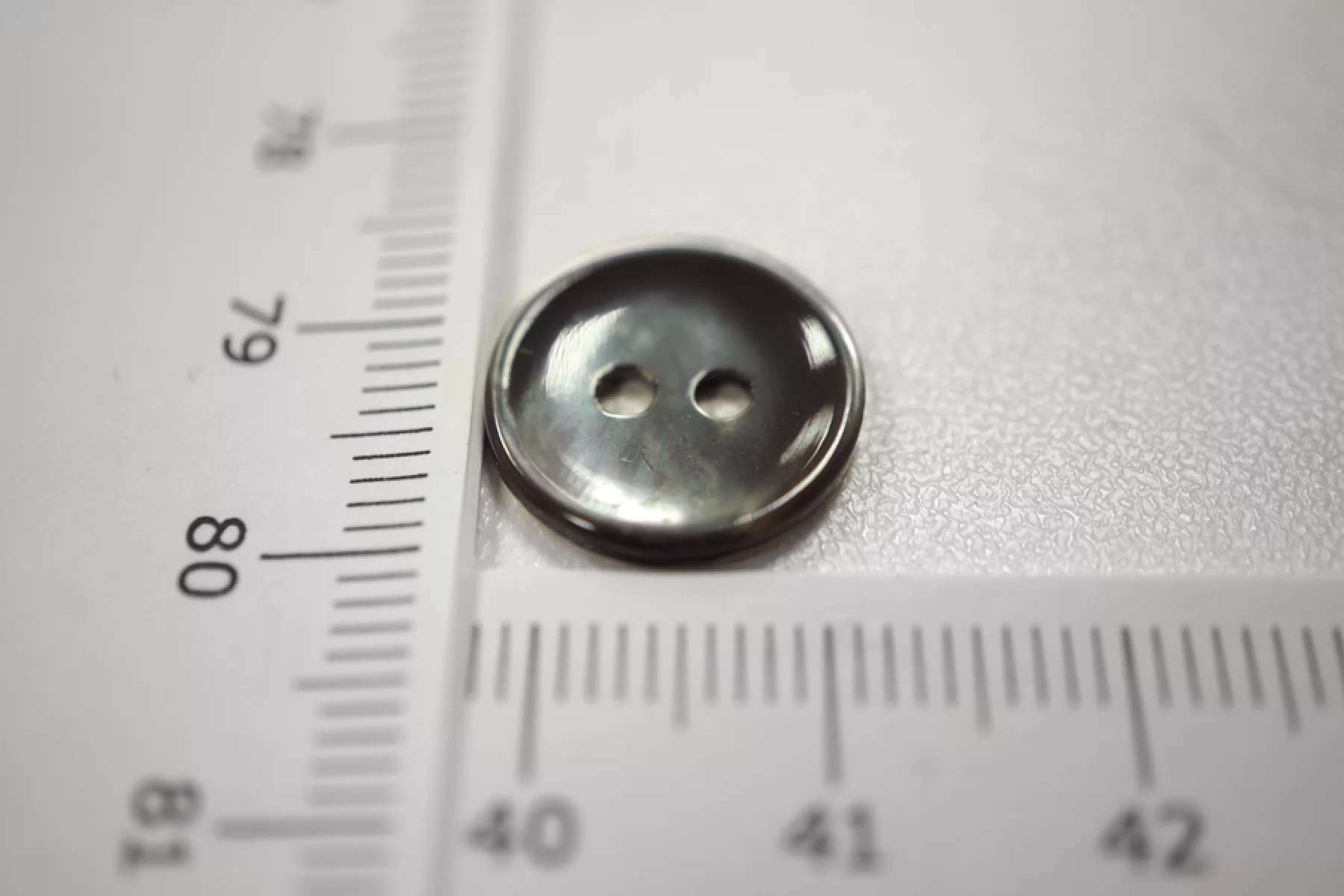 Пуговица из перламутра, размер 14 мм, цвет темно-серый с переливом. Пуговицы из натурального перламутра хрупкие, могут сломаться при падении с высоты или при сильном сжатии.