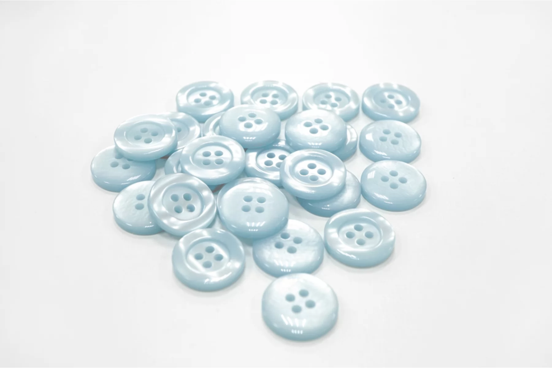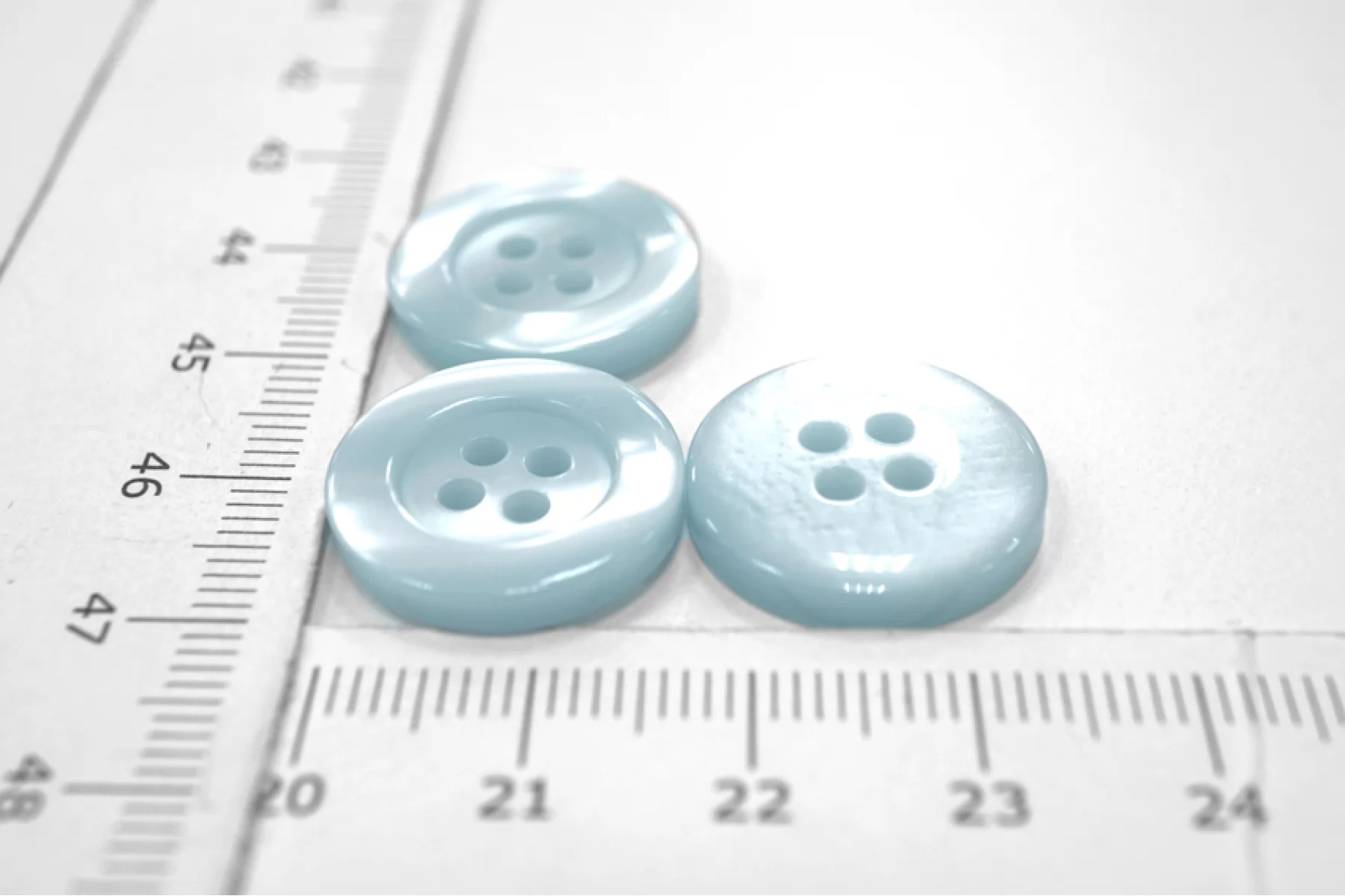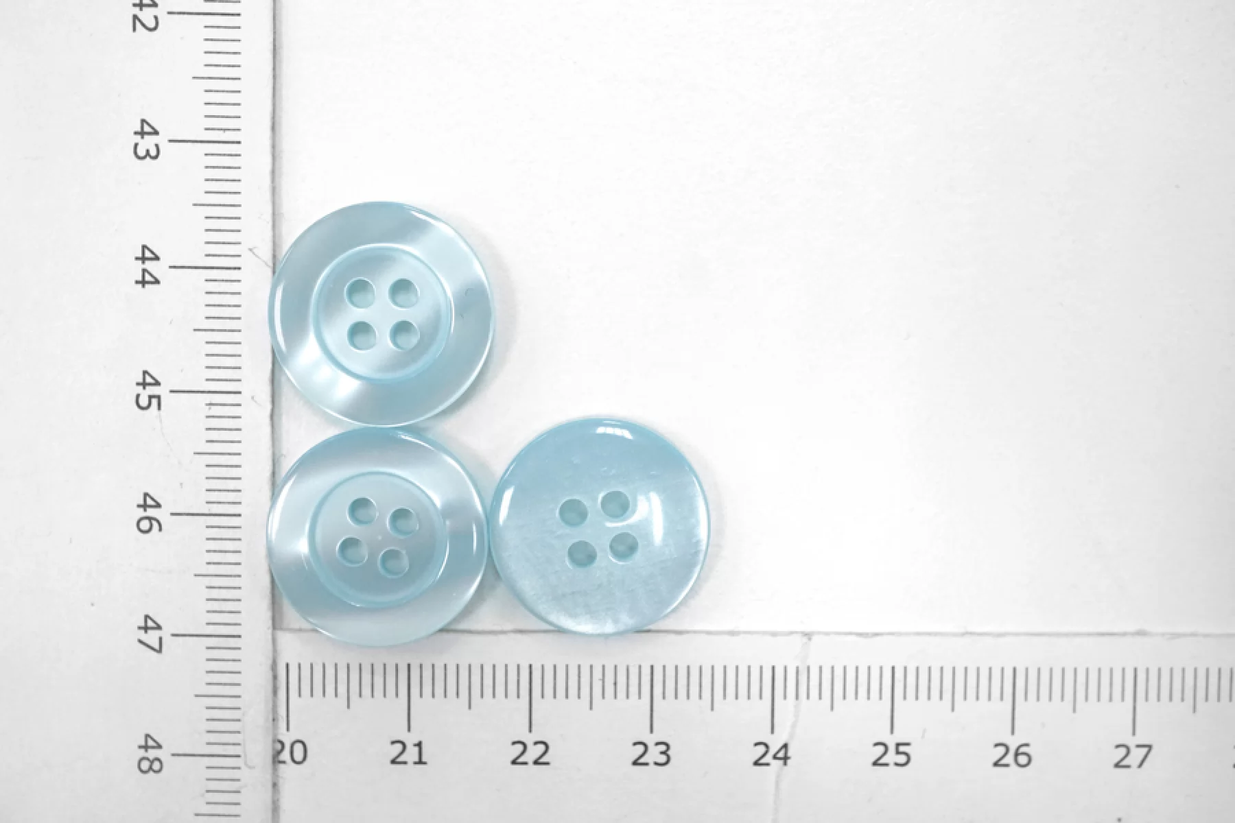 Пуговица перламутровая костюмно-рубашечная пластиковая , размер 18 мм, голубого цвета.