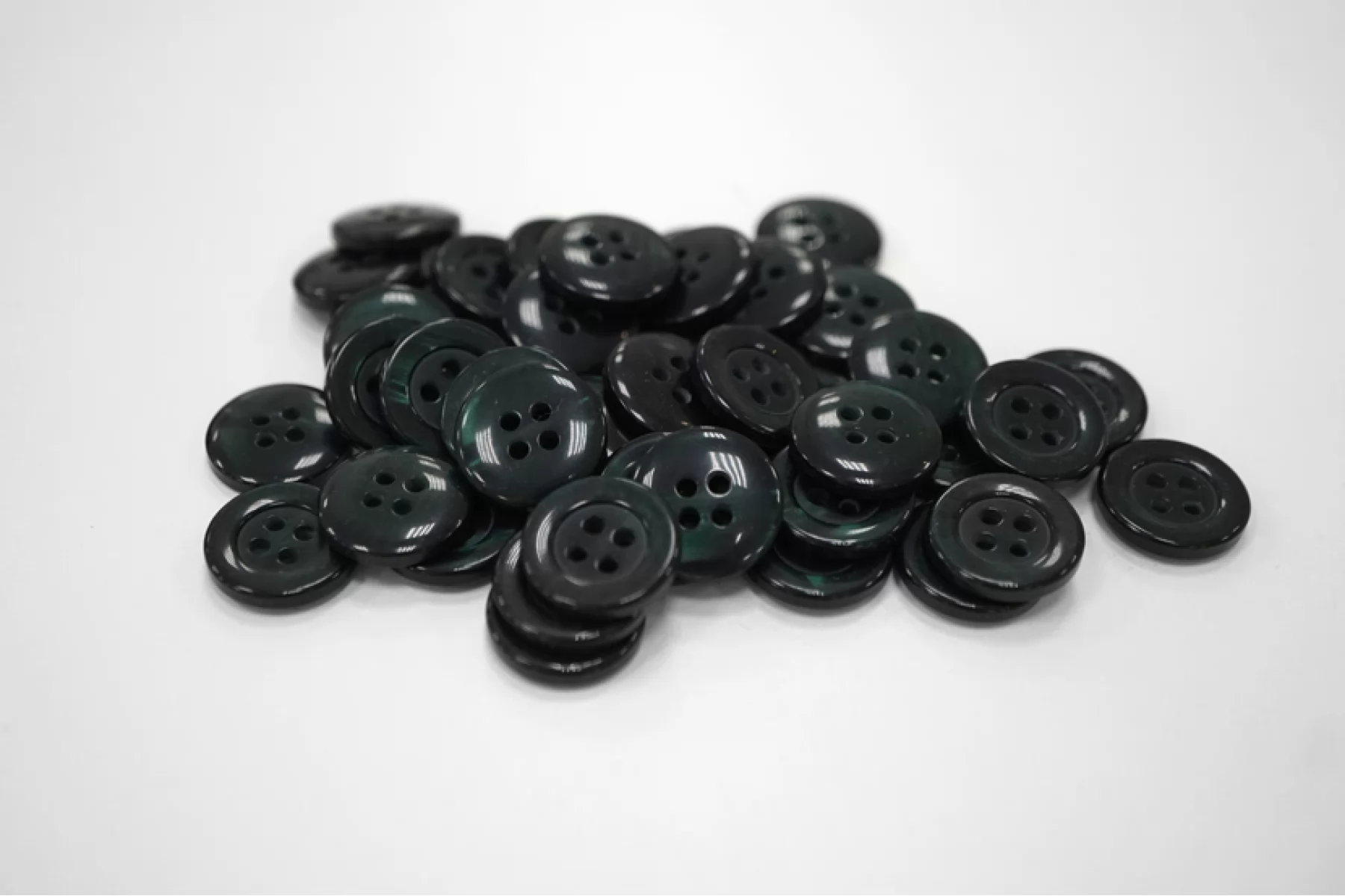 Пуговица перламутровая костюмно-рубашечная пластик чёрно-изумрудная 15 мм- (G1) 6012291