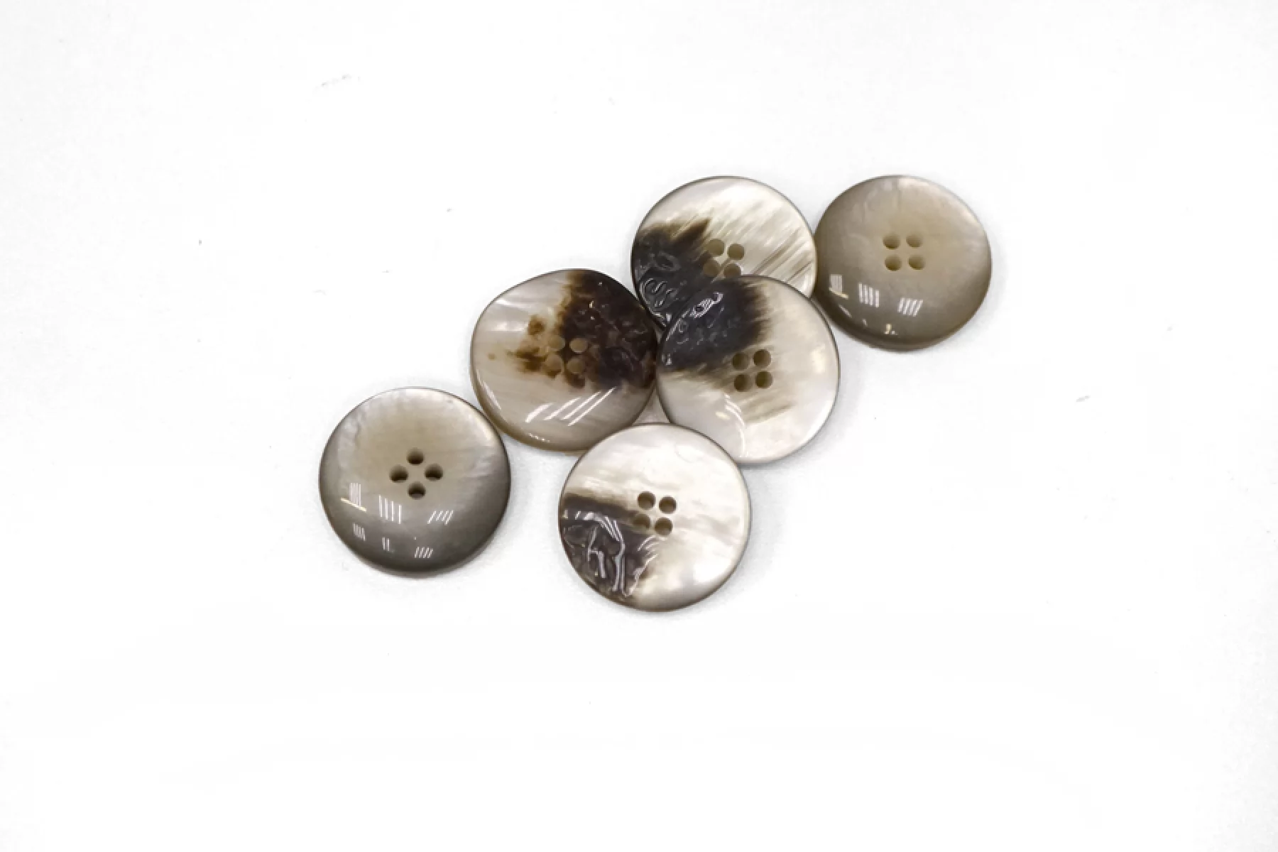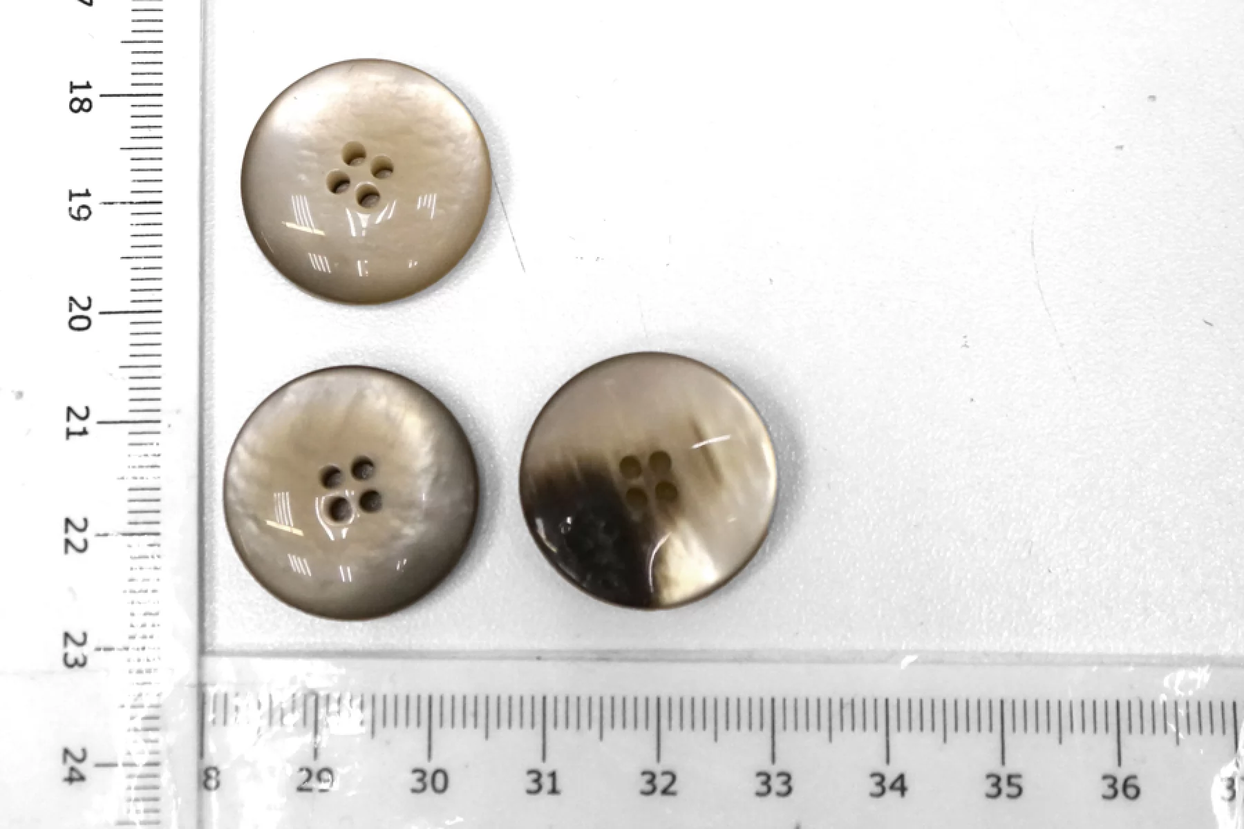 Пластиковая пуговица перламутровая серая костюмно-пальтовая. Размер 22 мм.