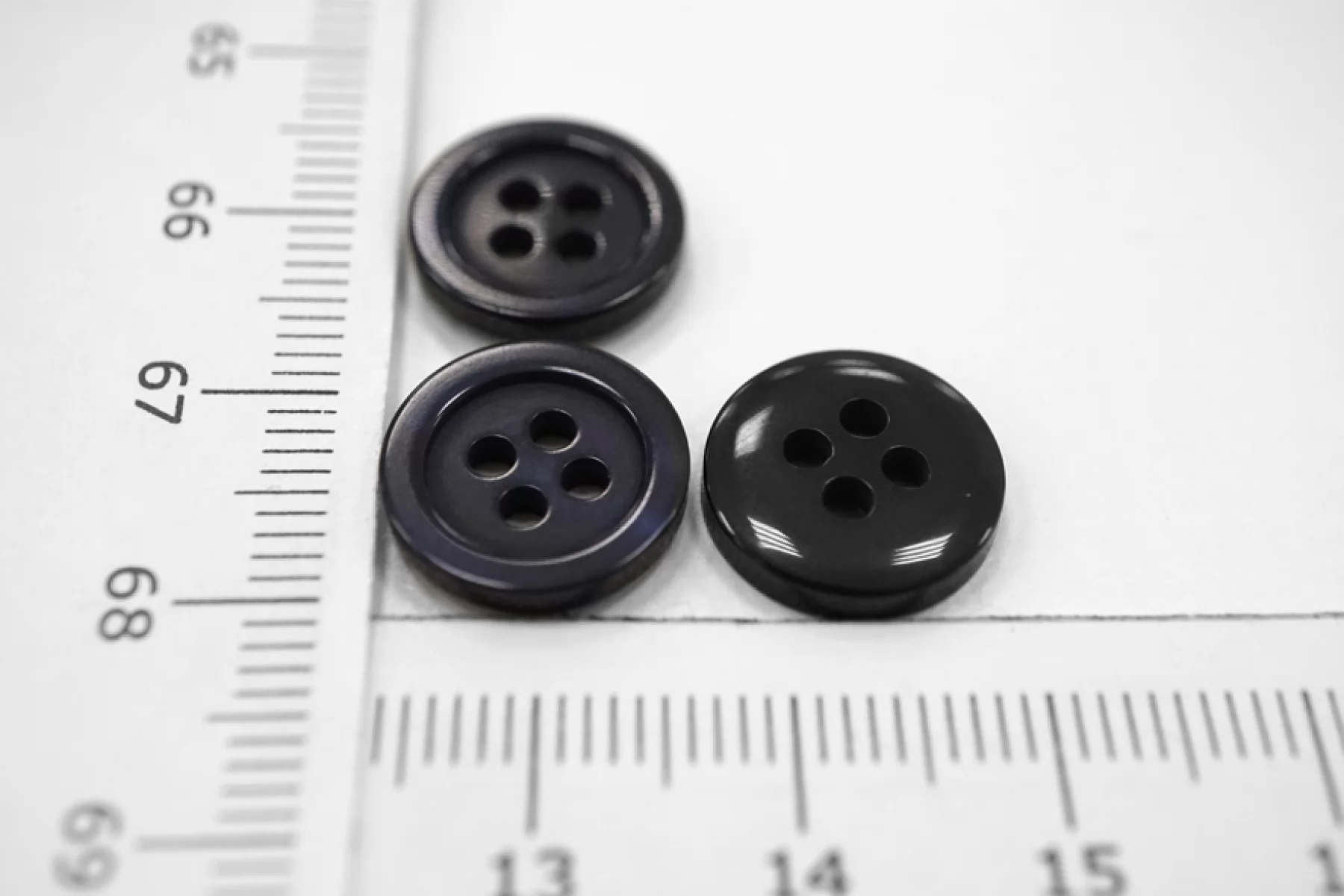 Пуговица перламутровая рубашечная из пластмассы, чёрно-синего цвета, размер 13 мм.