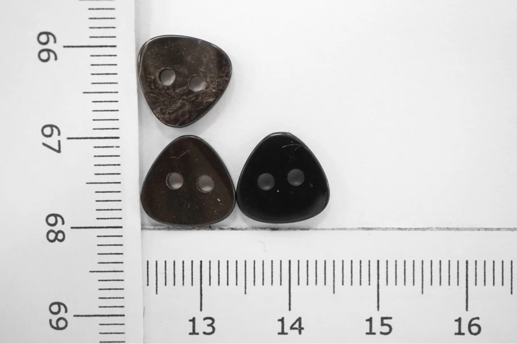 Пуговица перламутровая плательно-рубашечная из пластмассы, коричневого цвета, размер 10 мм.