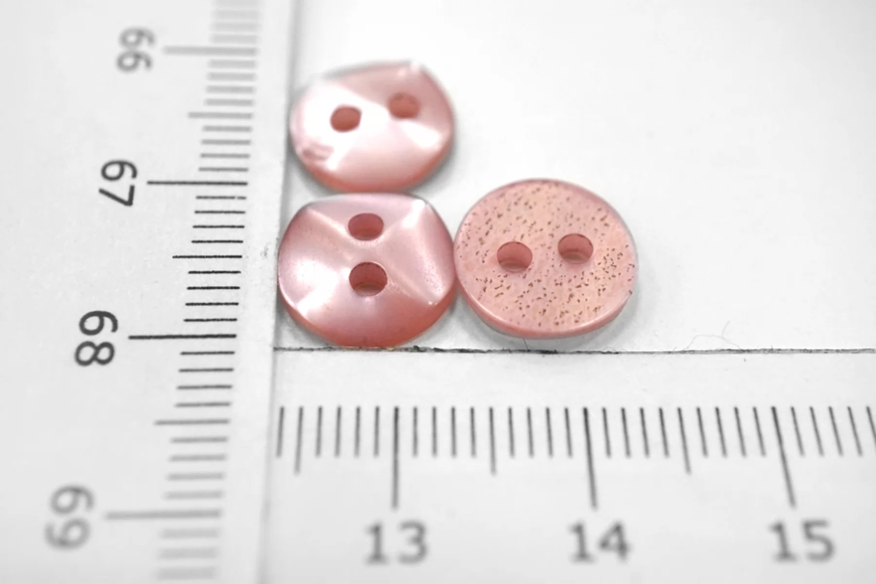 Пуговица перламутровая рубашечная из пластмассы, нежно-розового цвета, размер 10 мм.
