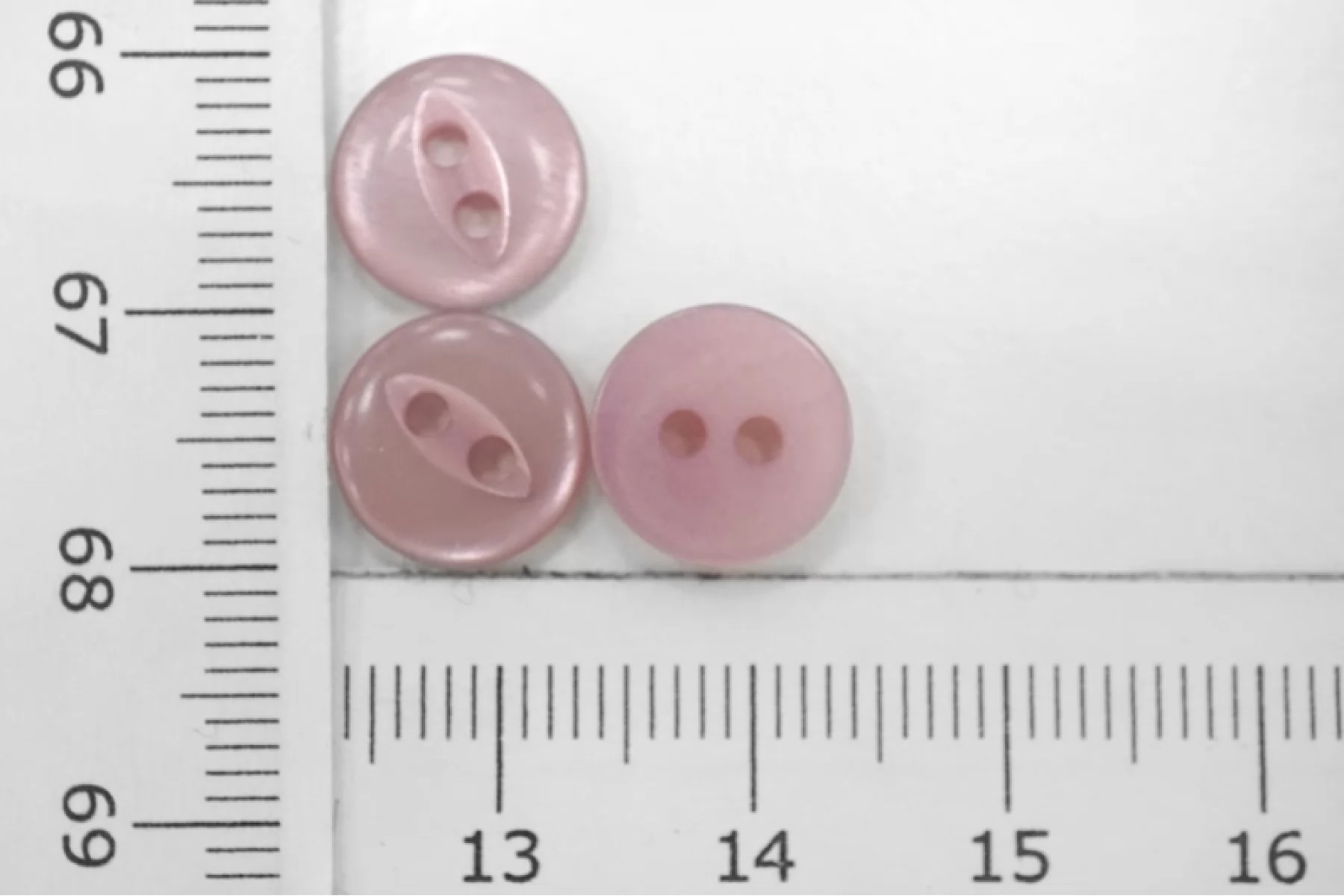 Пуговица перламутровая рубашечная из пластмассы, нежно-розового цвета, размер 10 мм.
