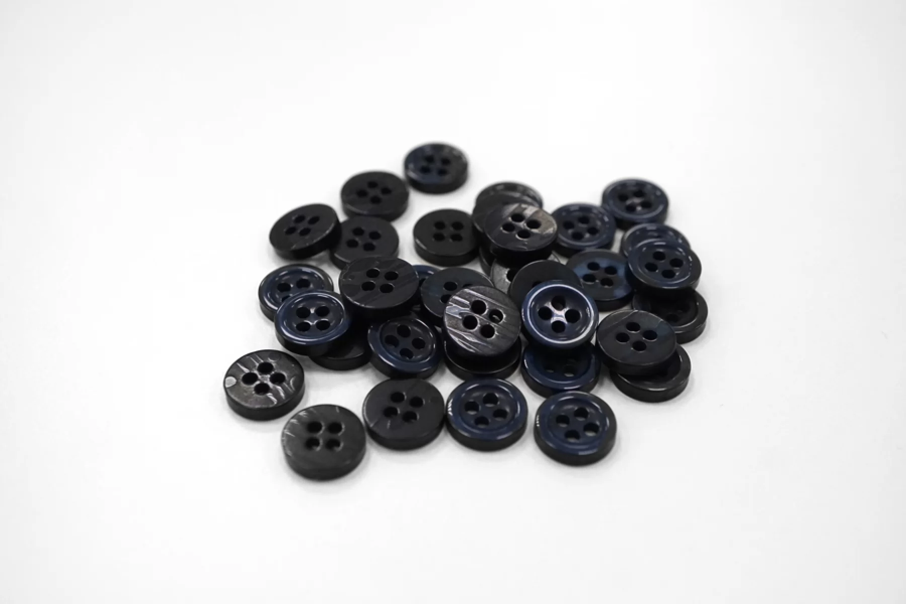 Пуговица перламутровая рубашечная из пластмассы, тёмно-синего цвета, размер 10 мм.