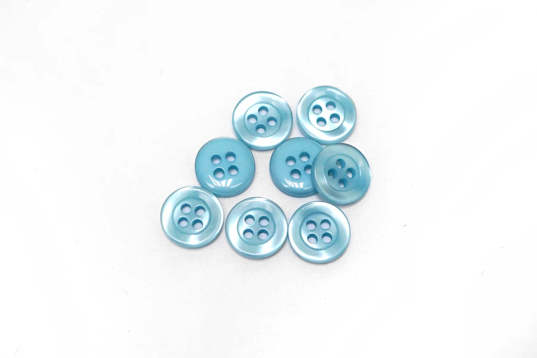 Пуговица пластиковая, голубого цвета с перламутром 11 мм.