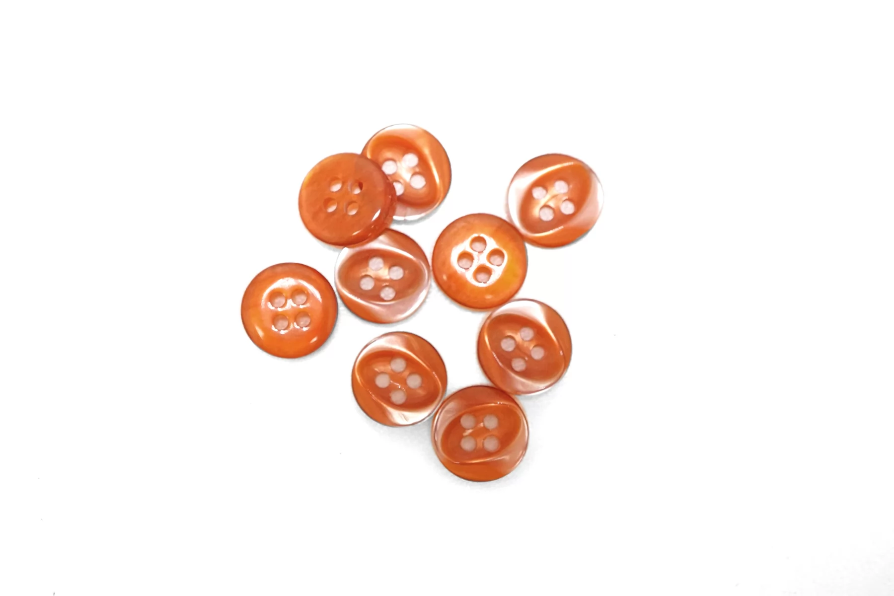 Пуговица пластиковая, оранжевого цвета с перламутром 11 мм.
