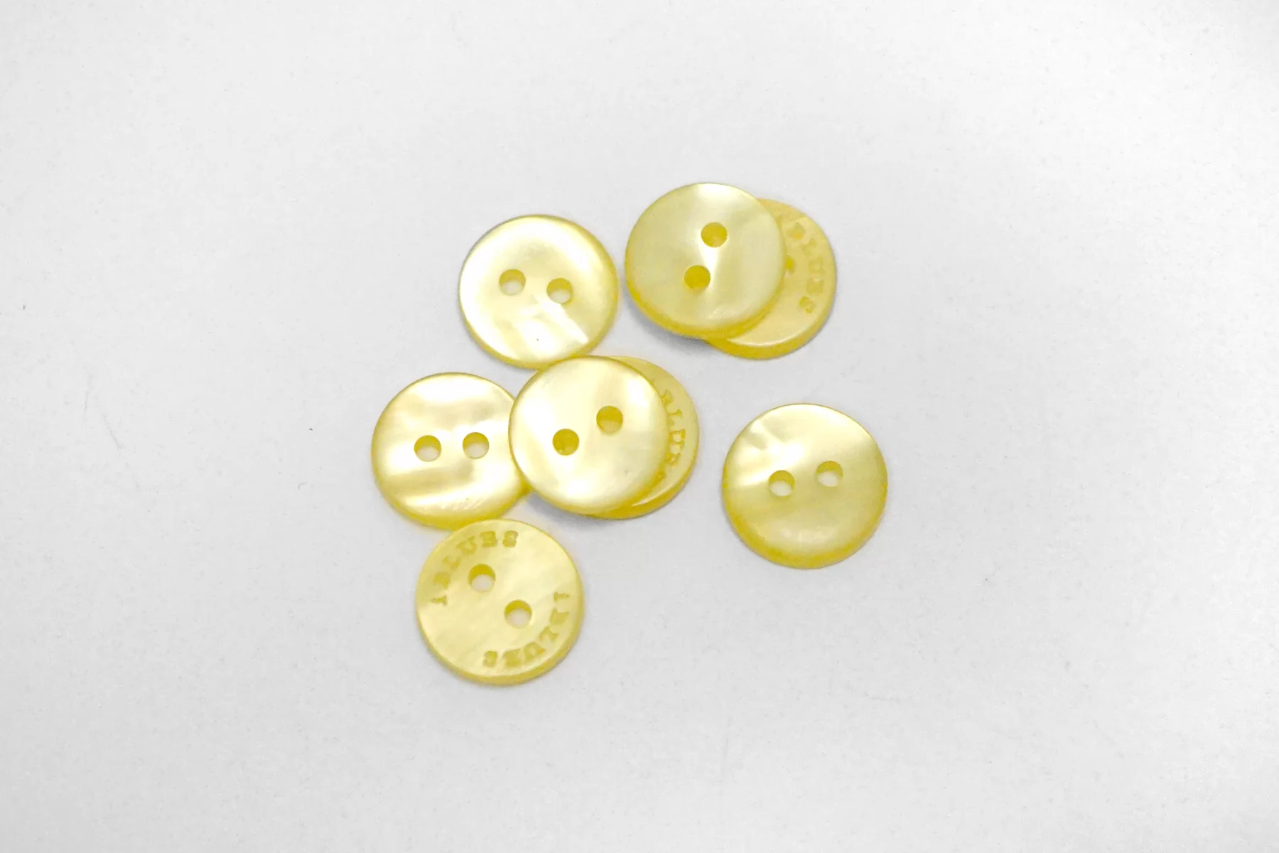 Пуговица пластиковая, желтого цвета с перламутром 11 мм.