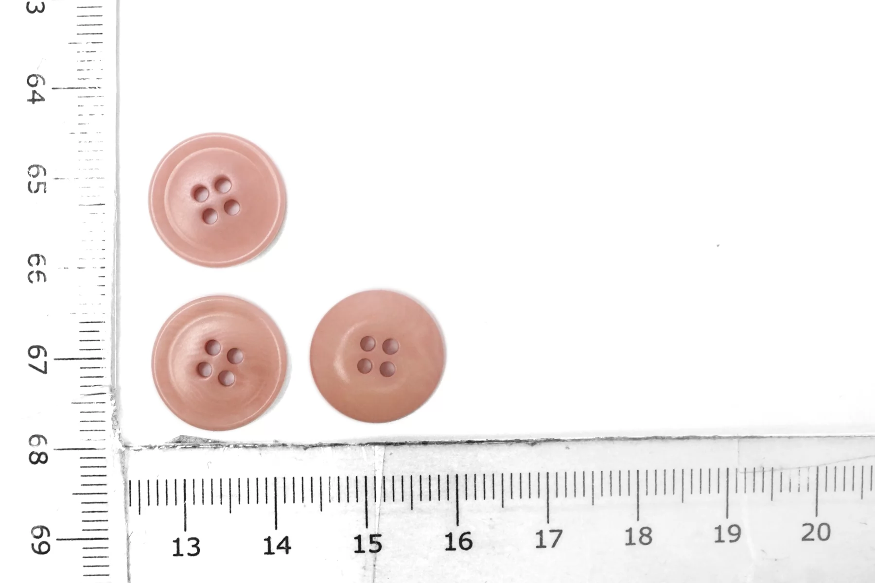 Пуговица пластиковая, бледно-розового цвета 15 мм.
