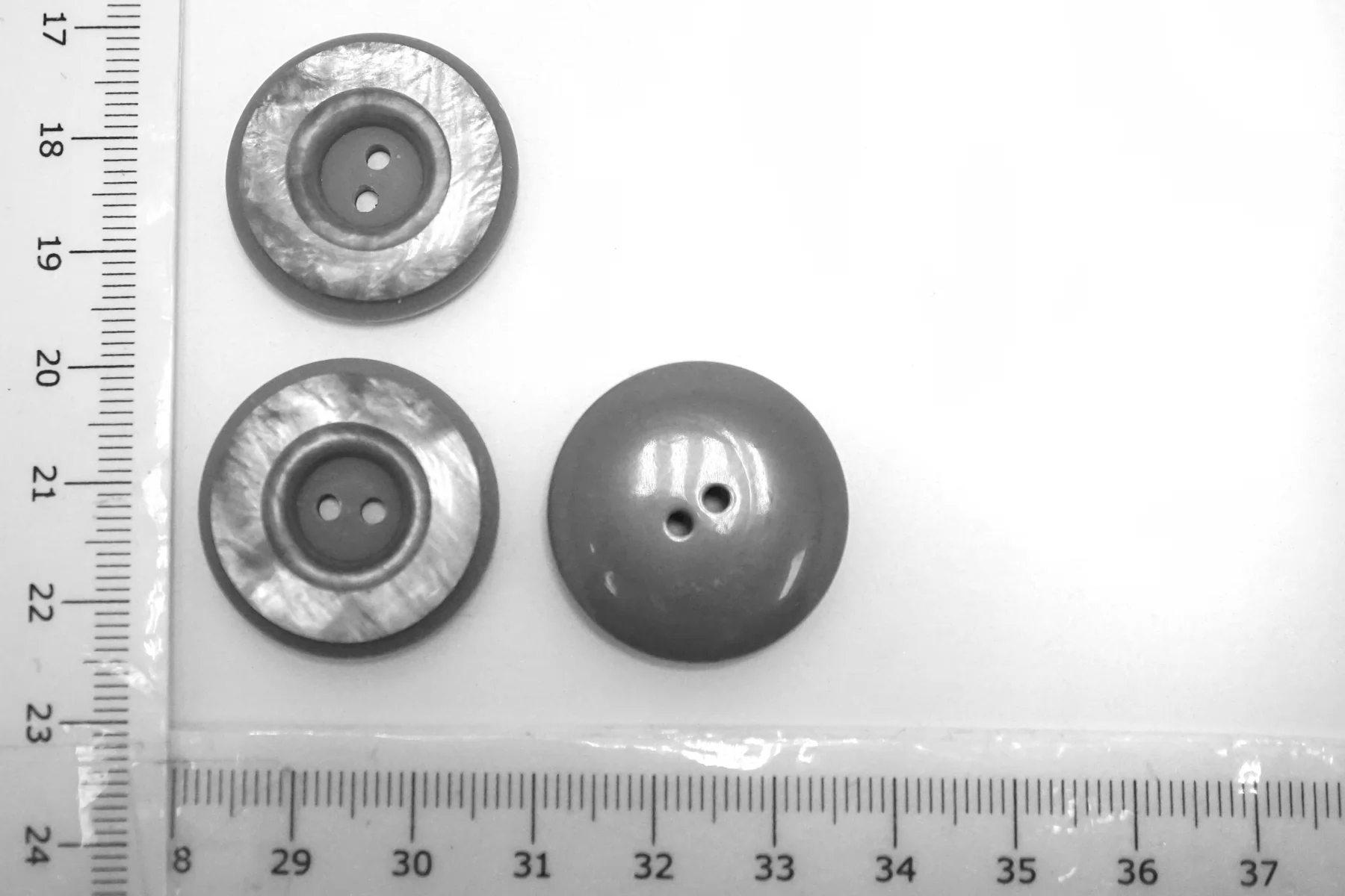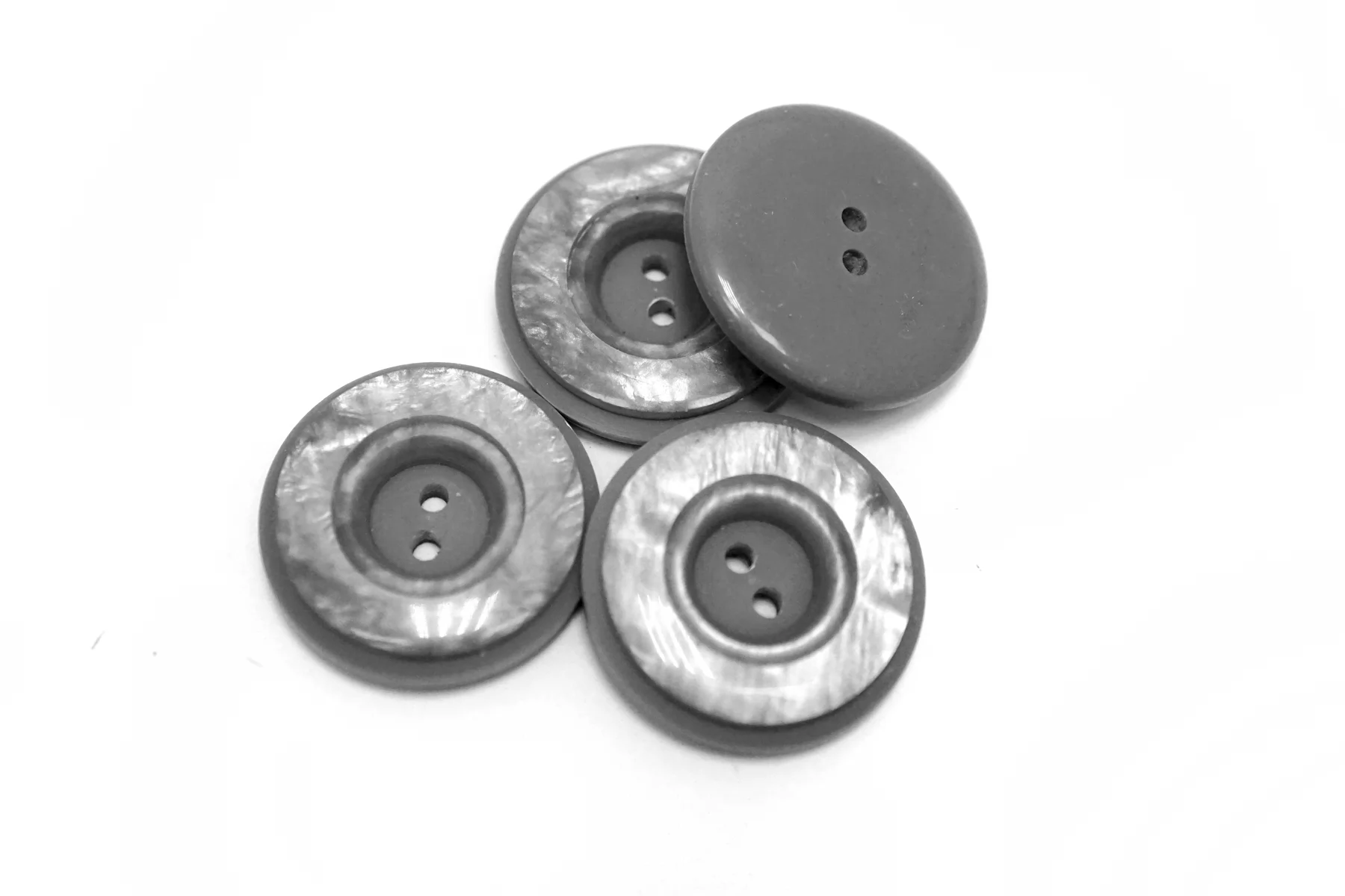 Пуговица костюмная пластиковая, серого цвета с перламутром 25 мм.