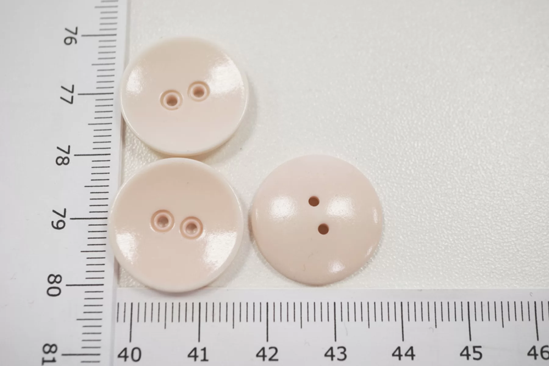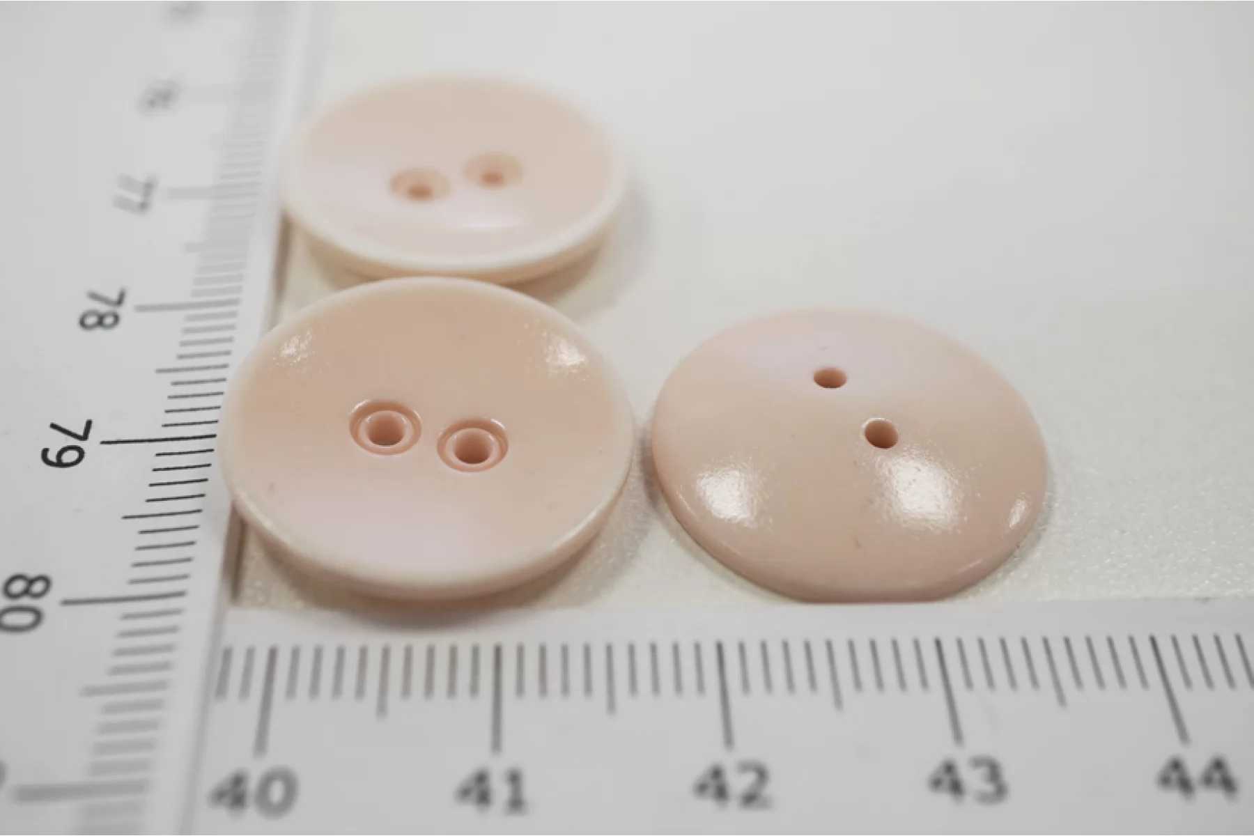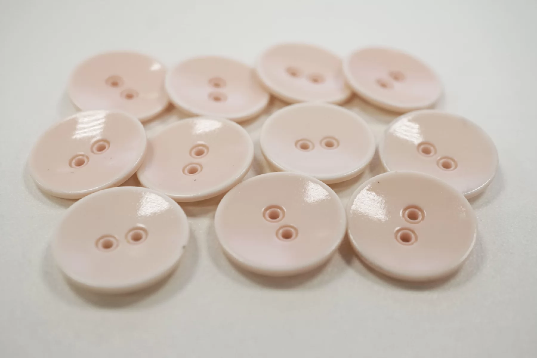 Пуговица костюмная из пластмассы, размер 20 мм, бледно-розового цвета, похожая на маленькое фарфоровое блюдечко.