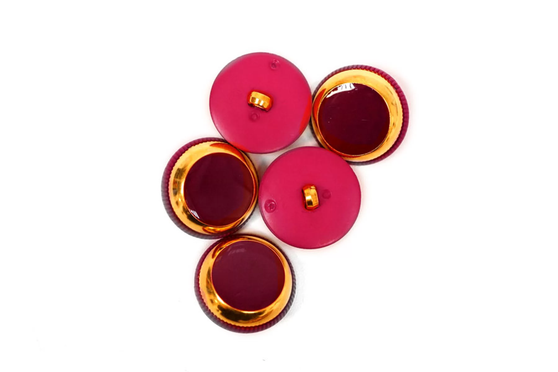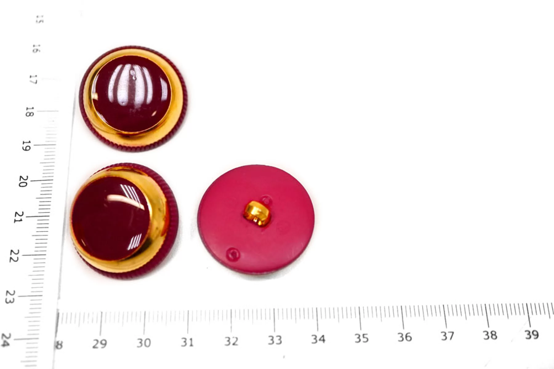Пуговица костюмно-пальтовая пластиковая красная с золотом под металл, размер 28 мм, на ножке.