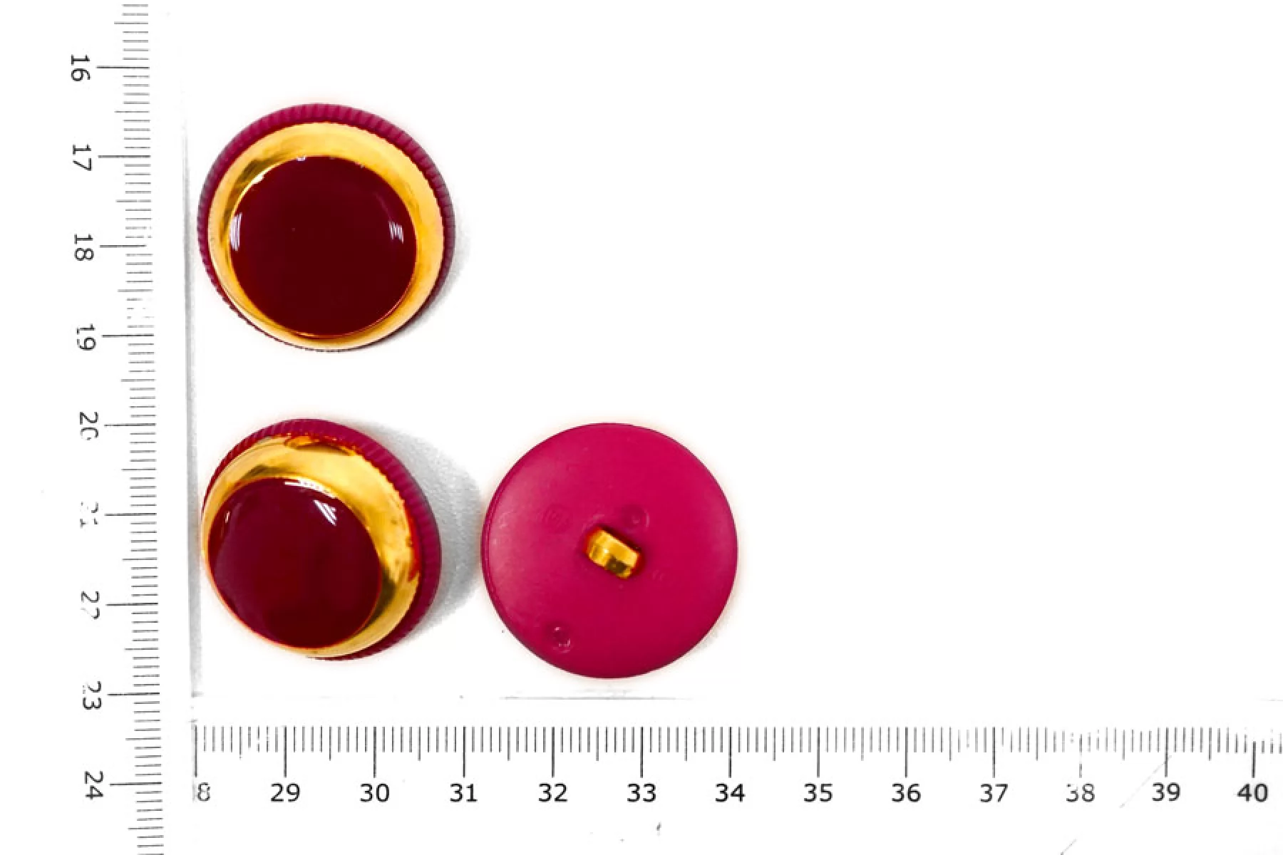 Пуговица пластик красная с золотом под металл на ножке 28 мм L1 18122461