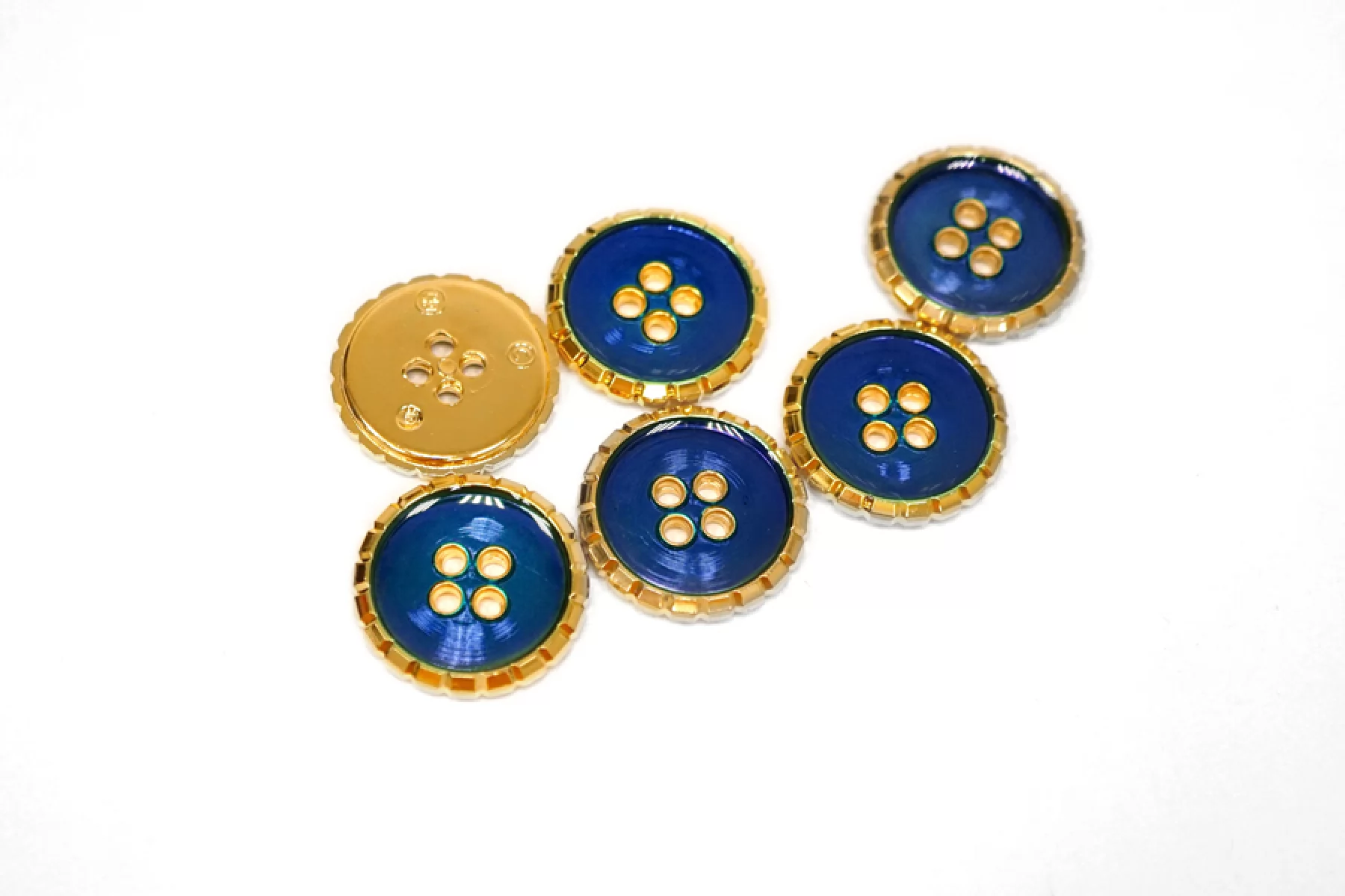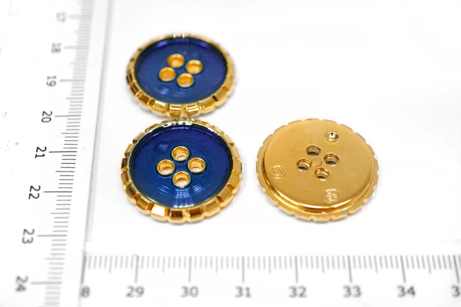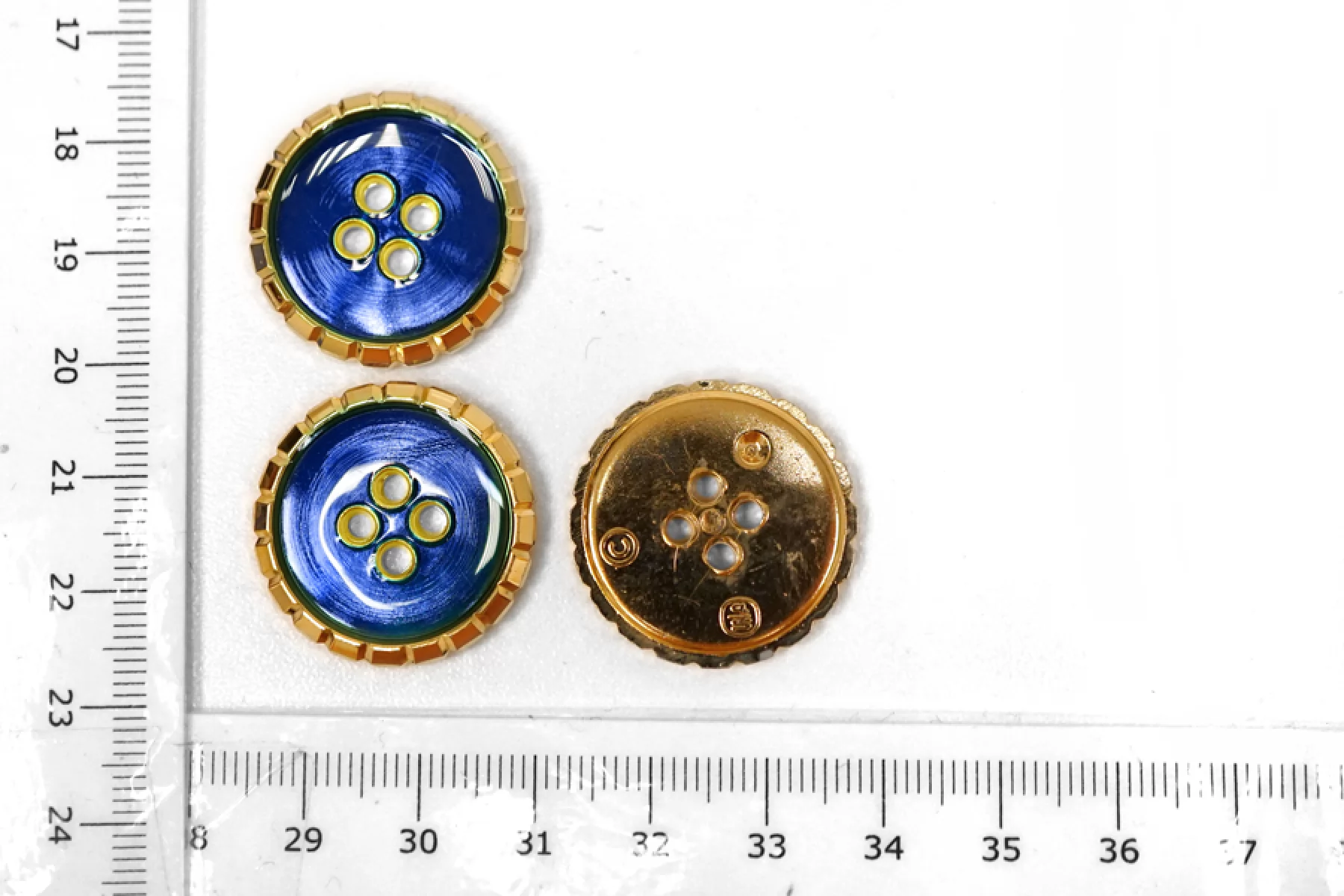Пуговица пластик под металл костюмная золотая с синей эмалью 25 мм М2 18122454