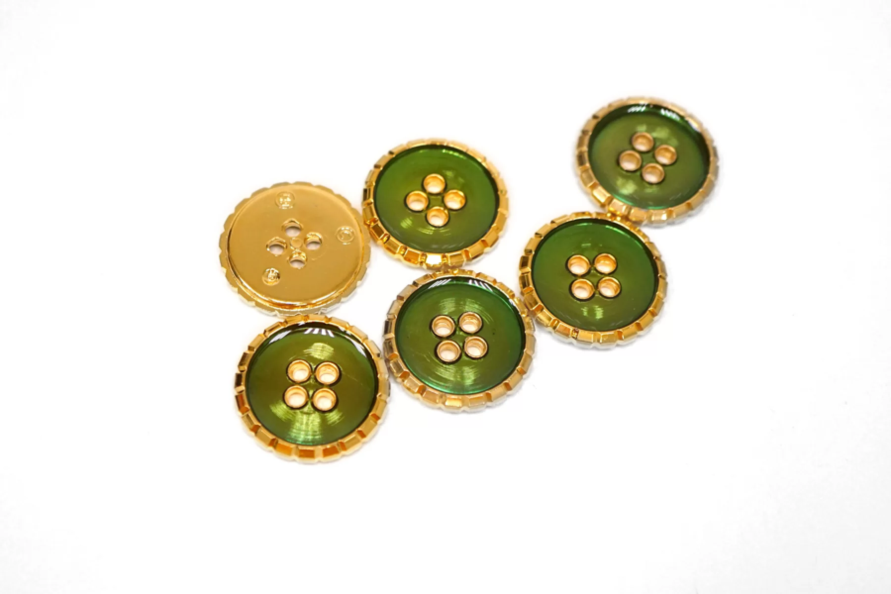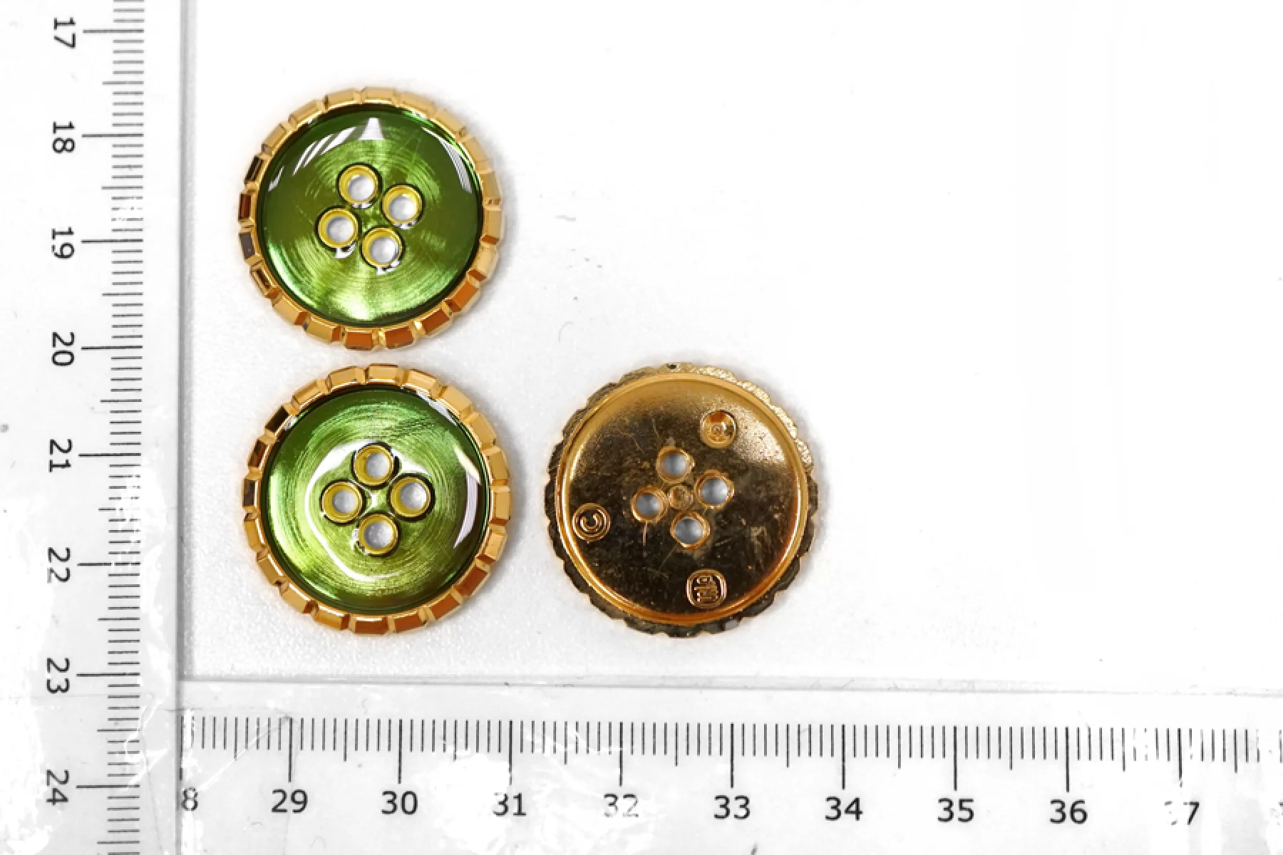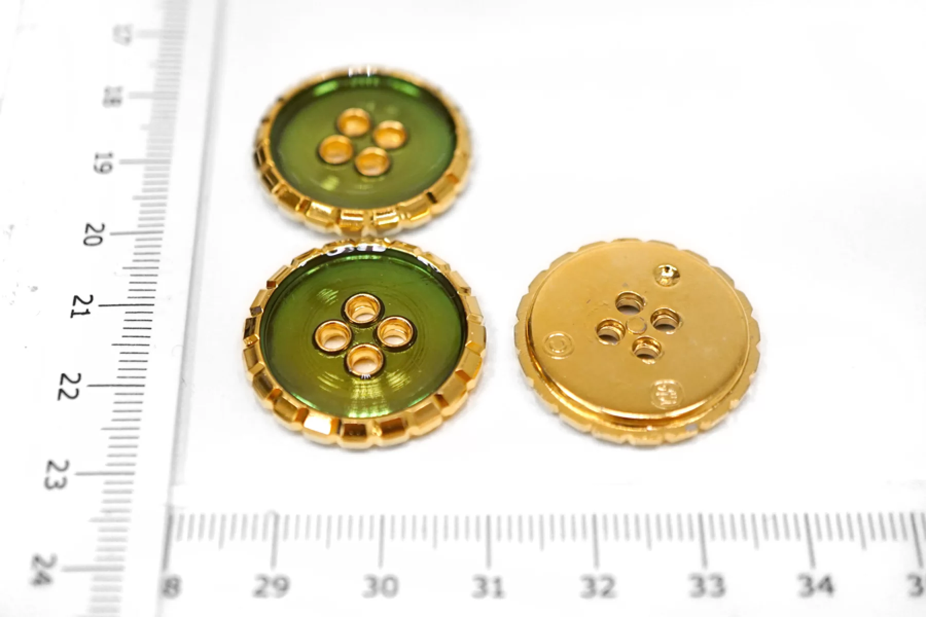 Пуговица пластик под металл костюмная золотая с зелёной эмалью 25 мм М2 18122455