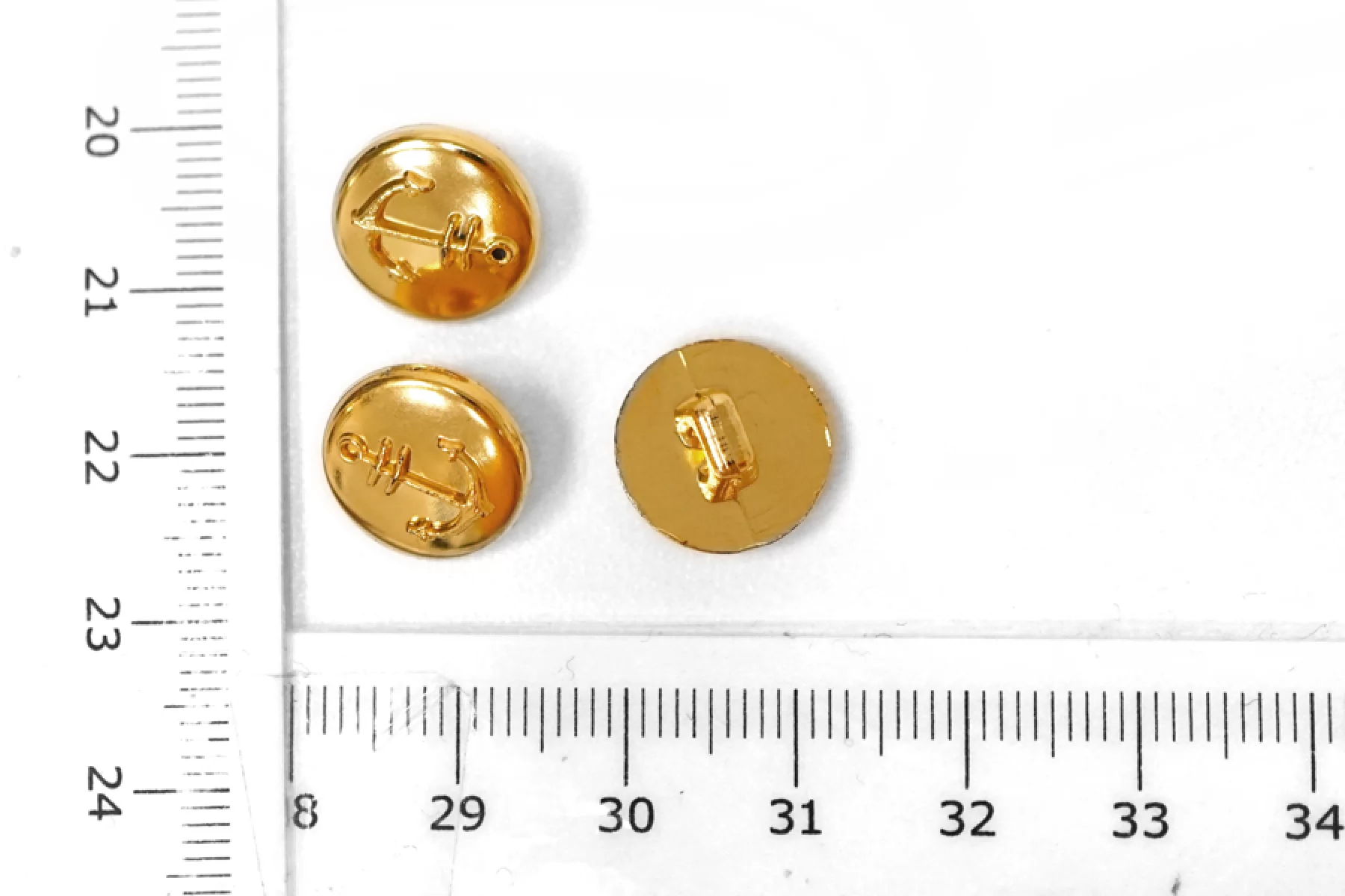 Пуговица пластик под металл на ножке костюмная Якорь золотая 12 мм-М2 18122450