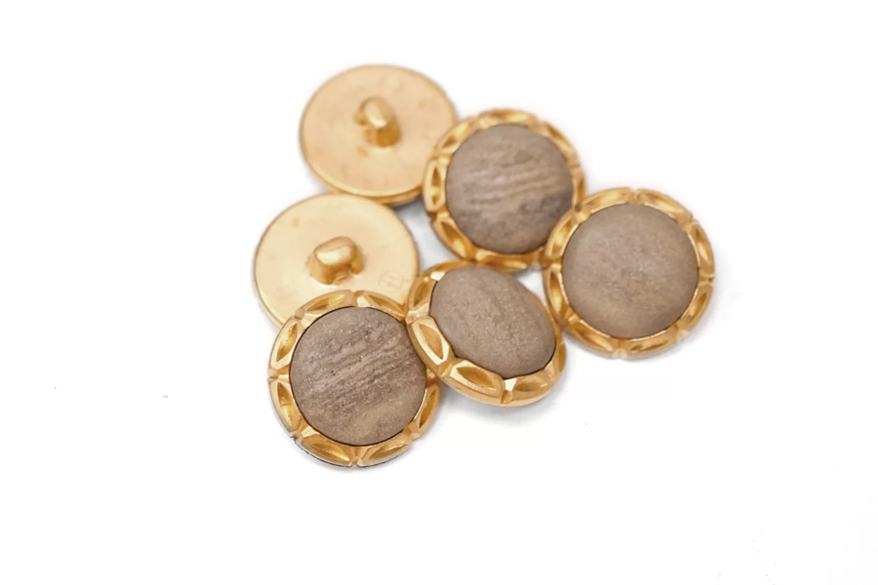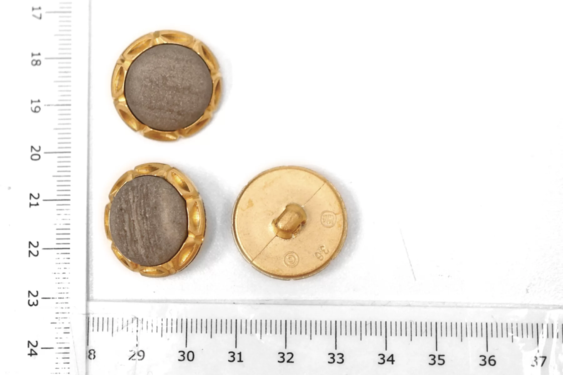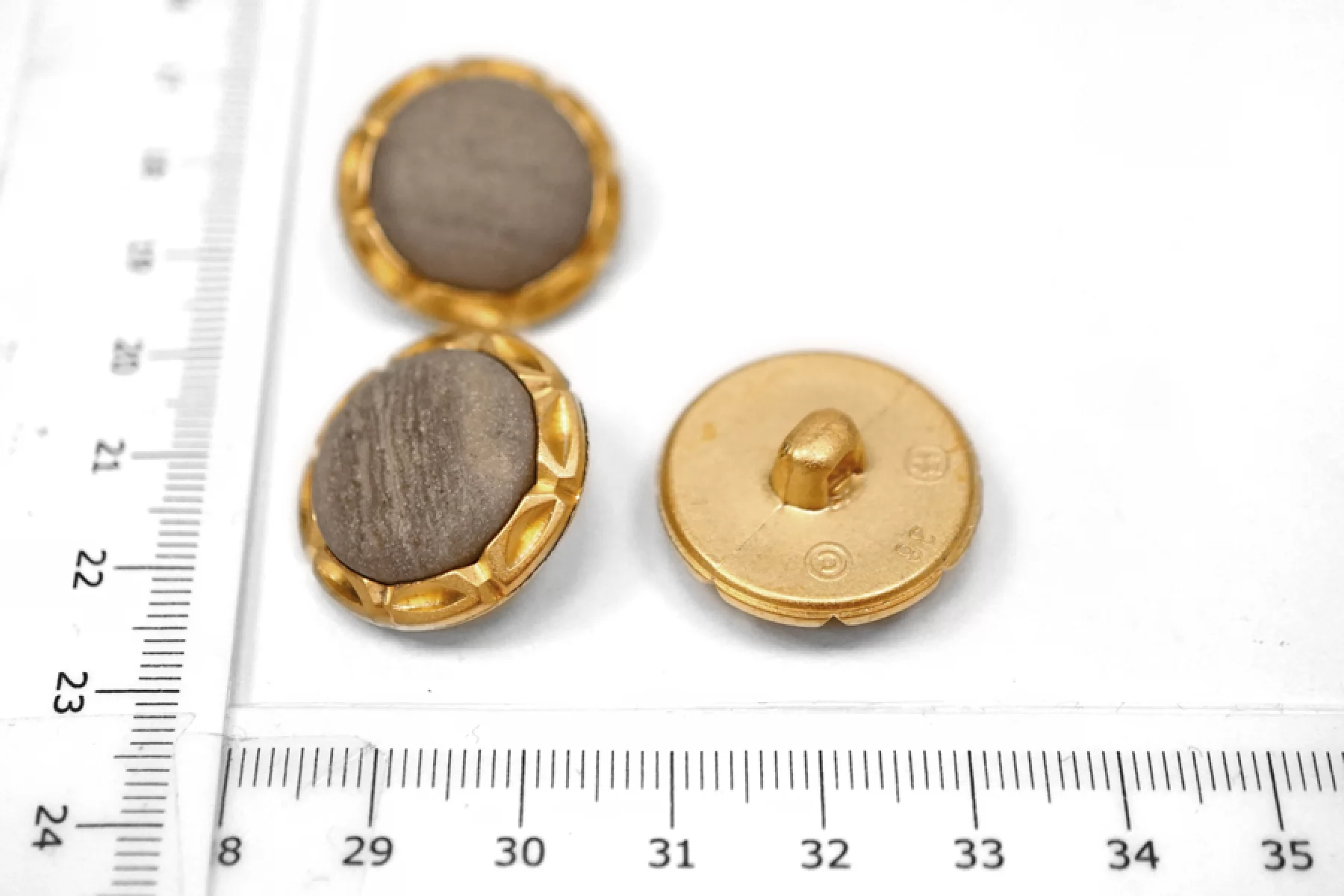 Пуговица пластик под металл серая с золотом на ножке 23 мм М2 18122459