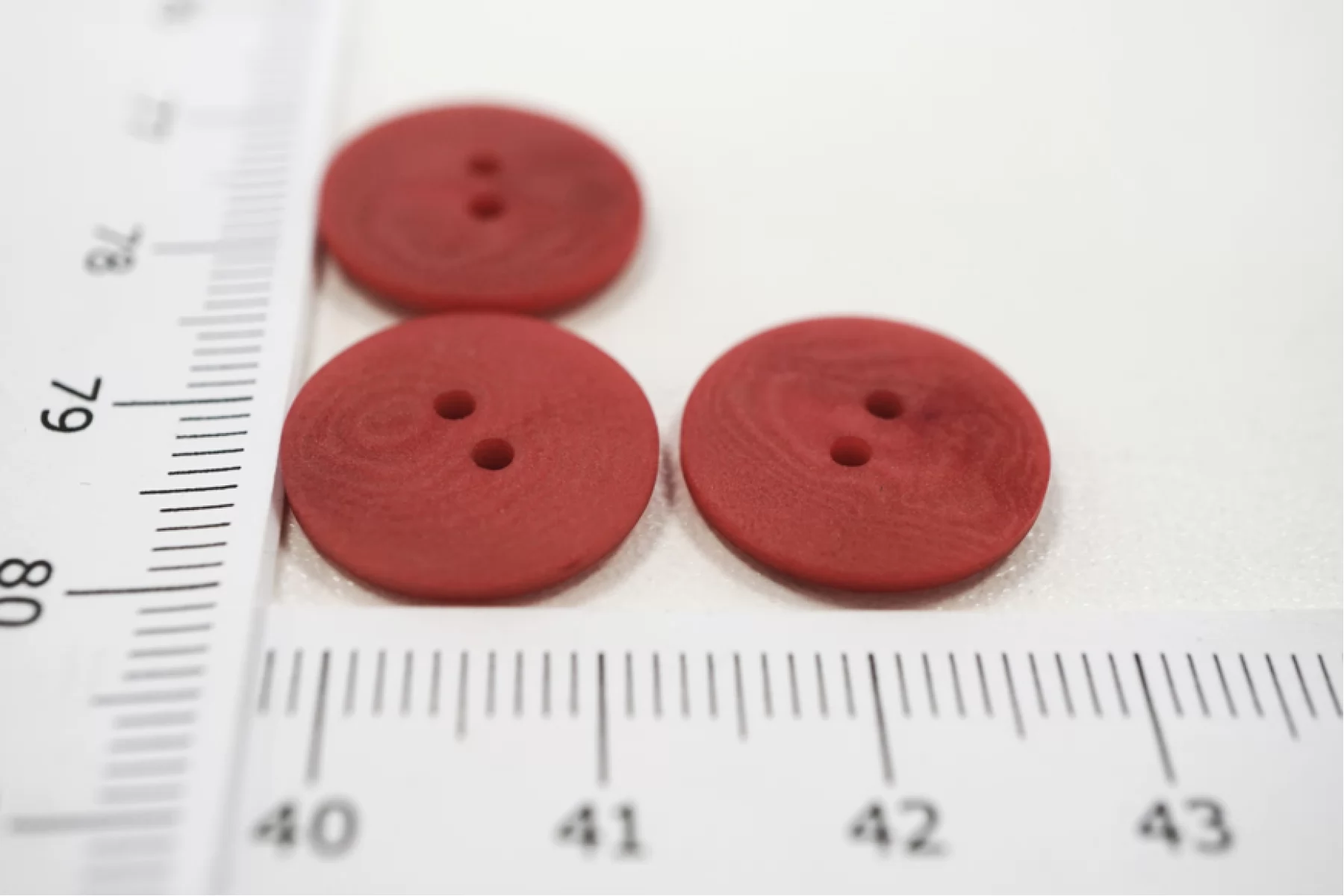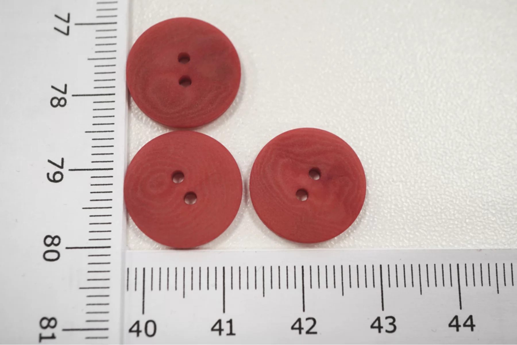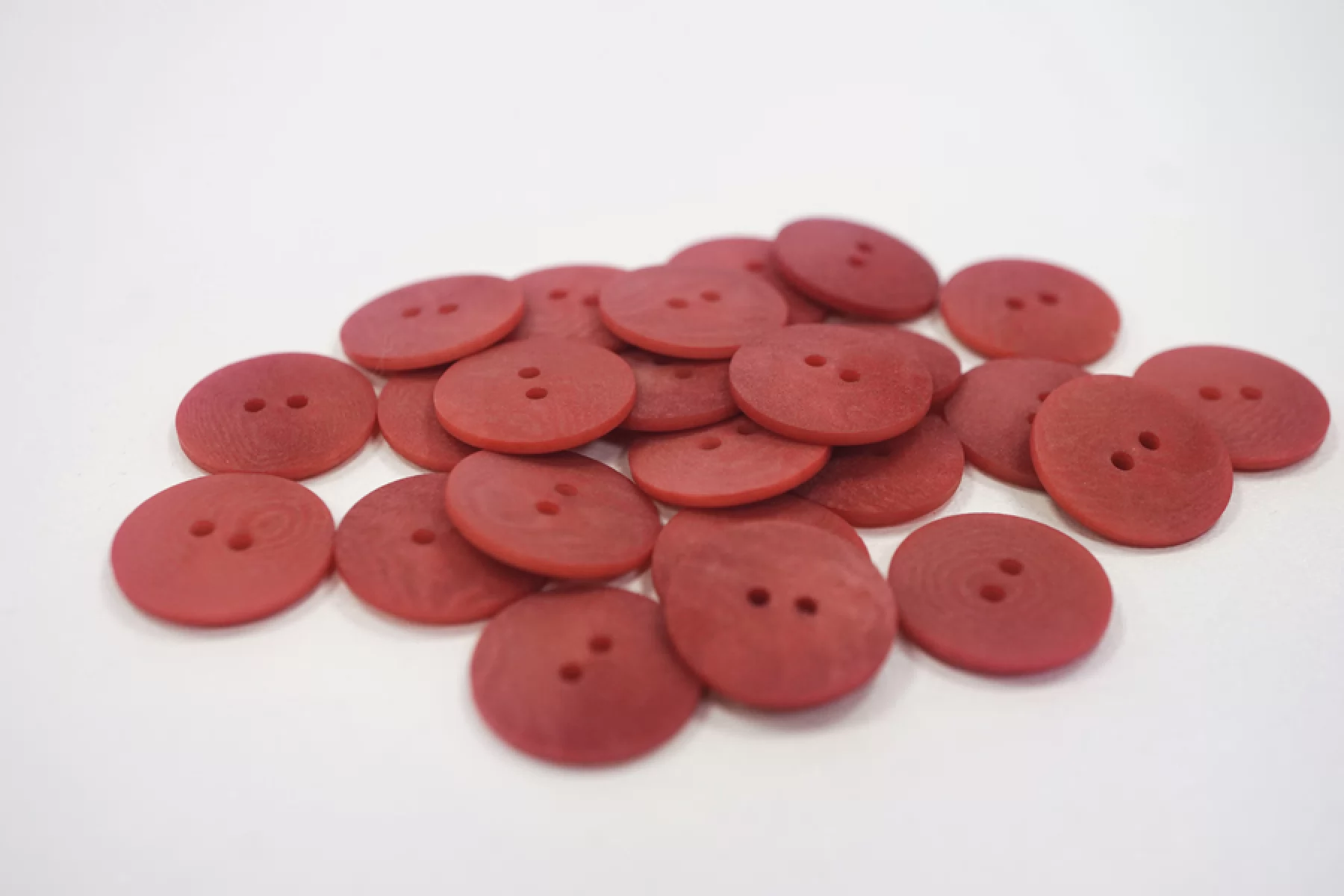 Пуговица костюмно-плательная из пластмассы, размер 15 мм, пыльно-красного цвета с неоднородной окраской, с матовой поверхностью.