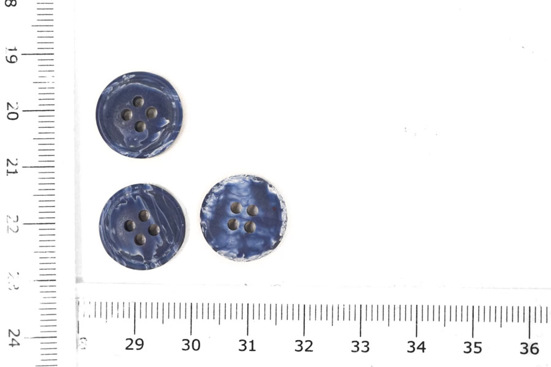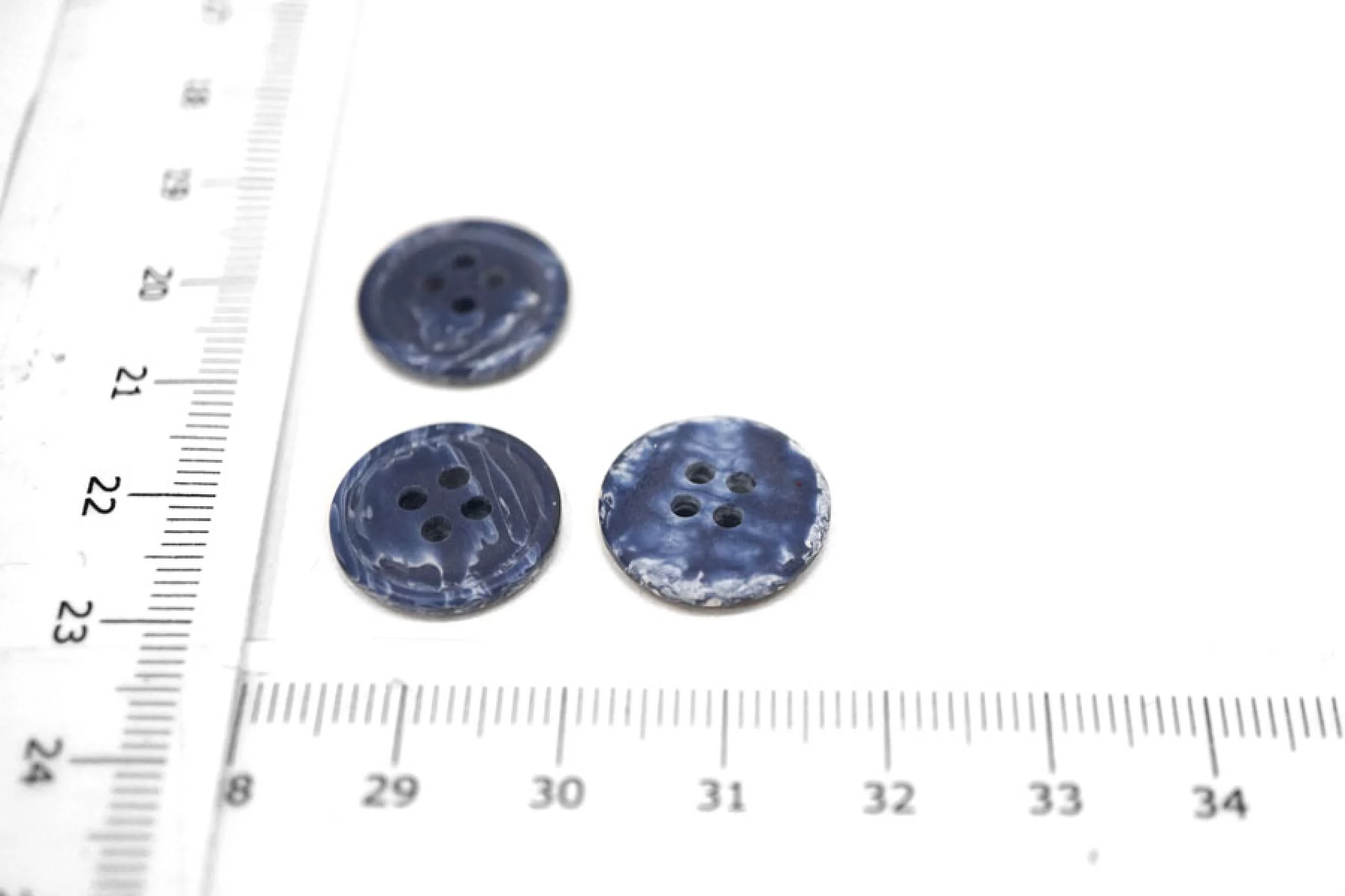 Пуговица пластиковая синего цвета под деним. Размер 15 мм.