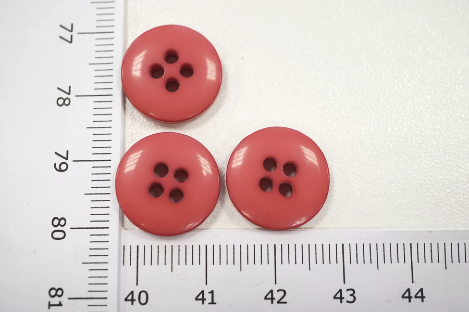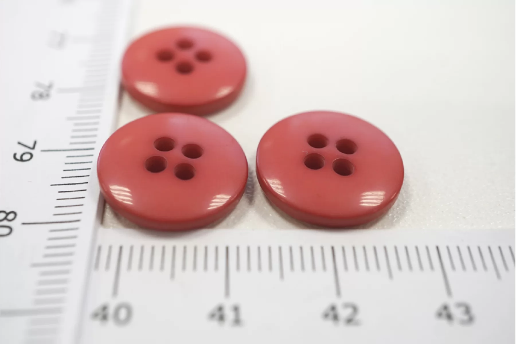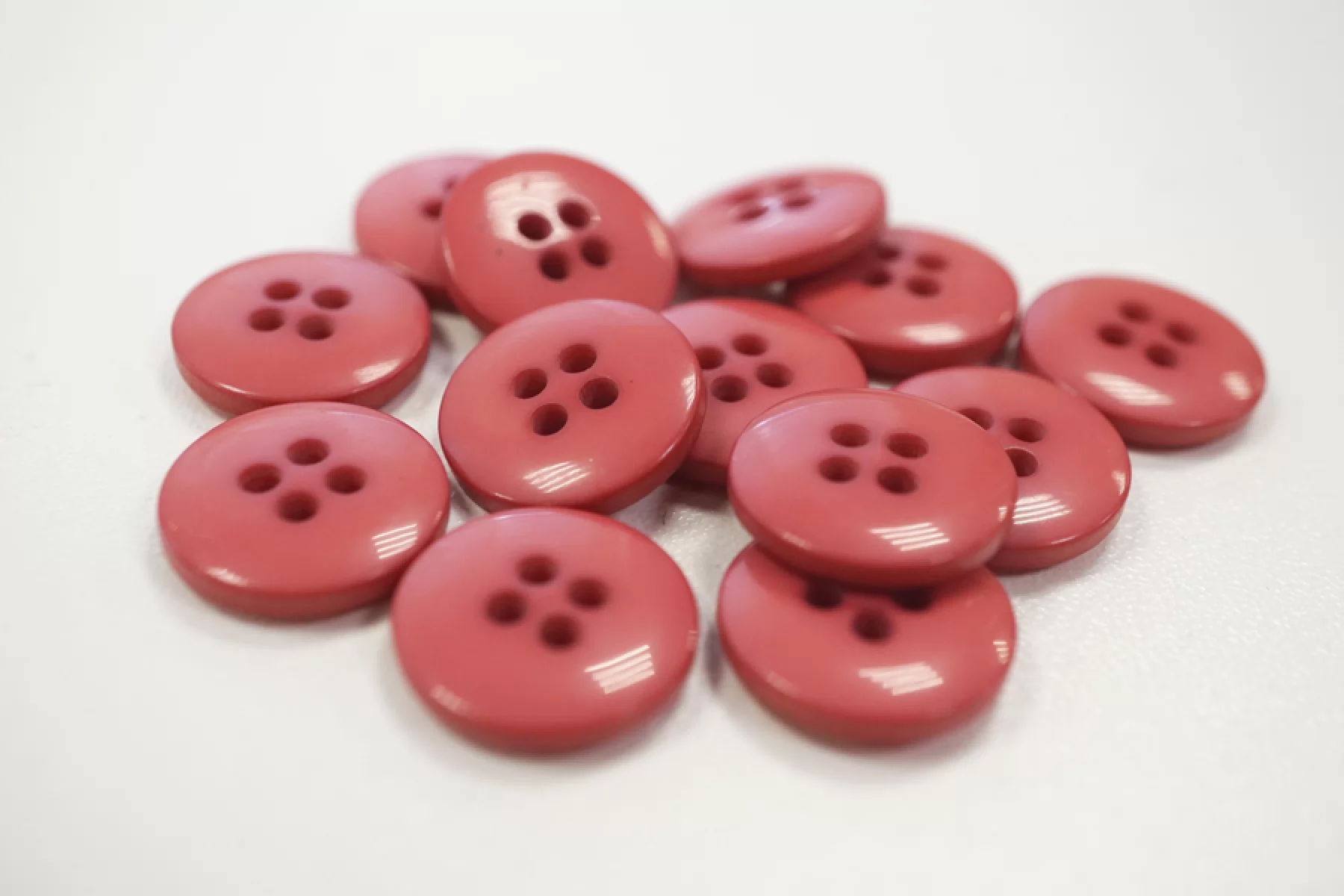 Пуговица костюмно-плательная из пластмассы, размер 15 мм, темно-малинового цвета, с гладкой поверхностью.