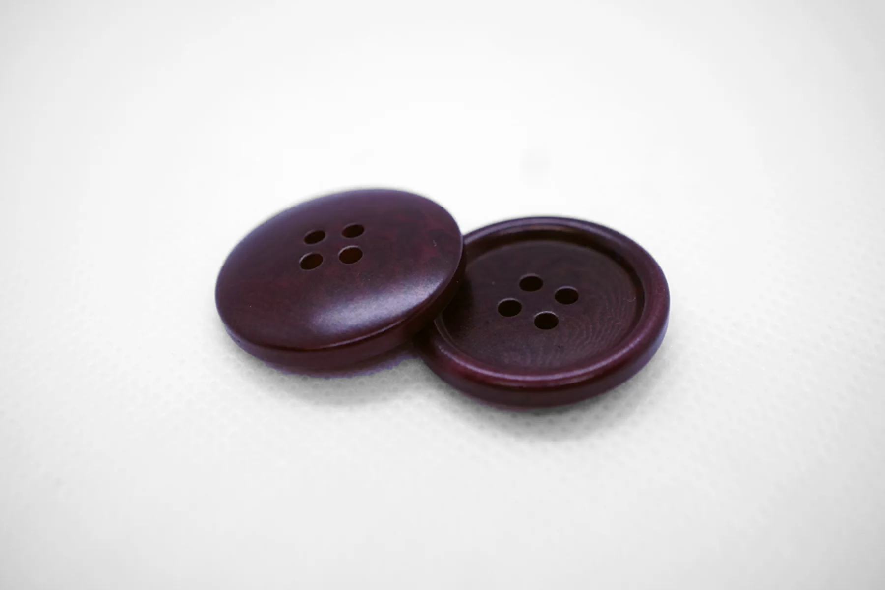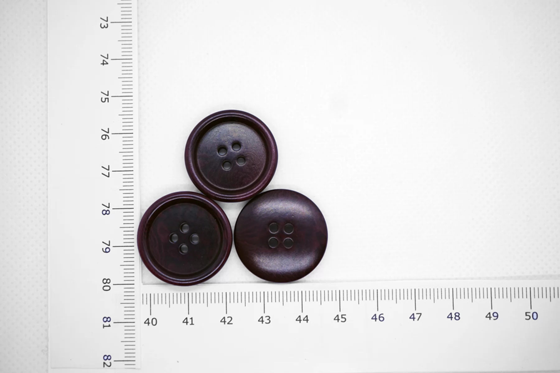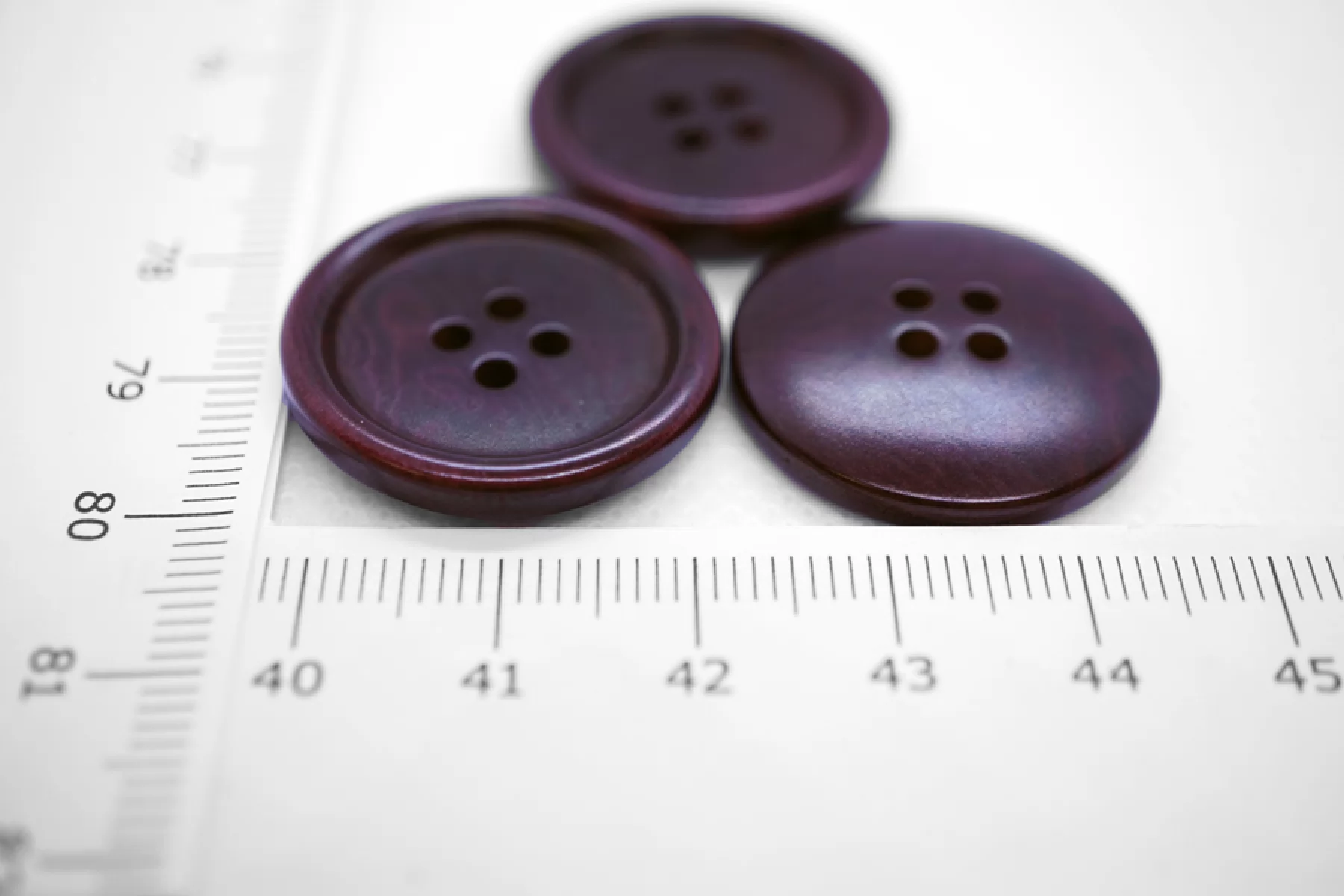 Пуговица пластиковая, размер 25 мм, цвет винно-фиолетовый. Поверхность с волнообразным узором, напоминающим древесину (на различных пуговицах отличается, где-то более выраженная, где-то менее).