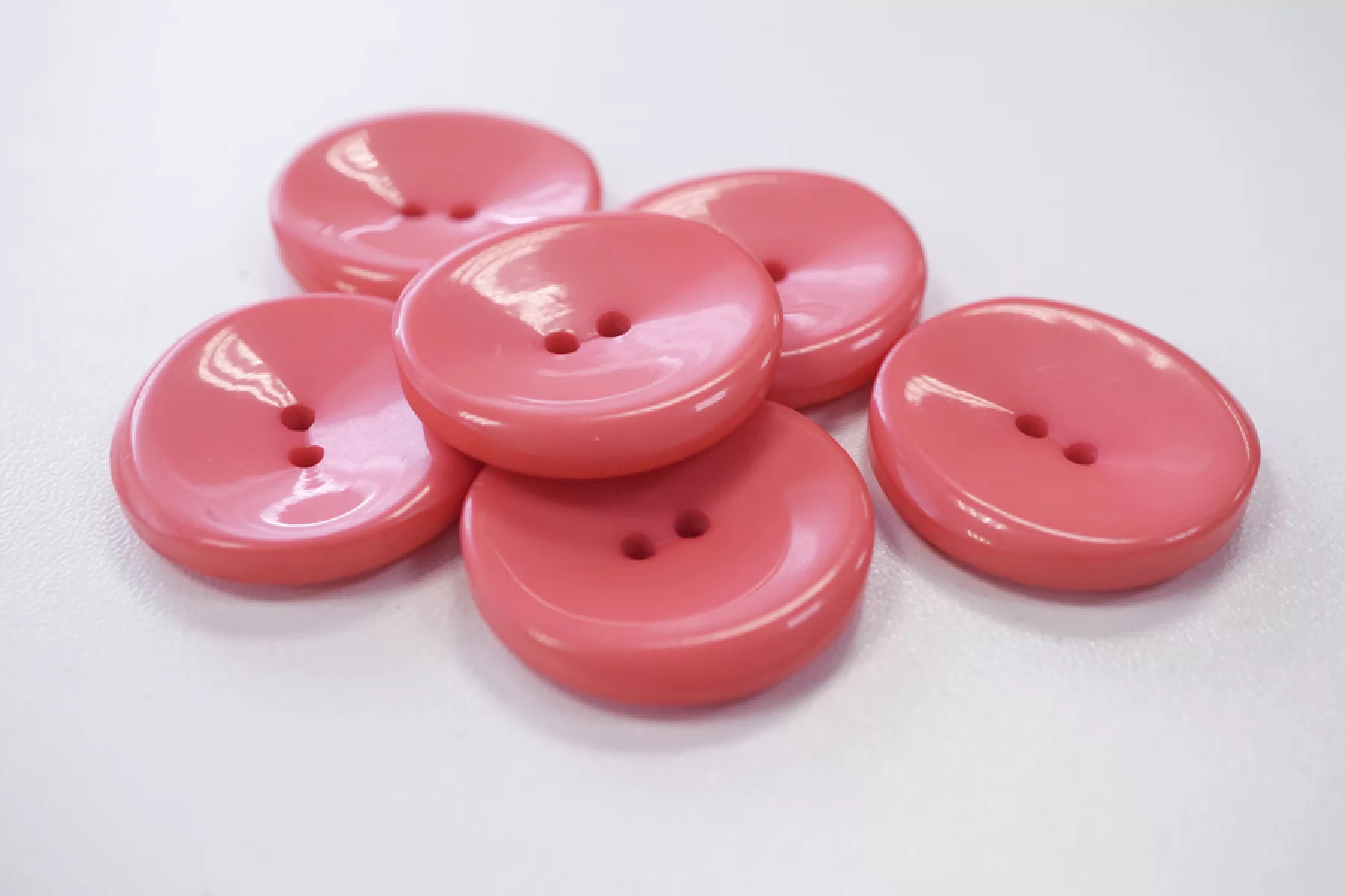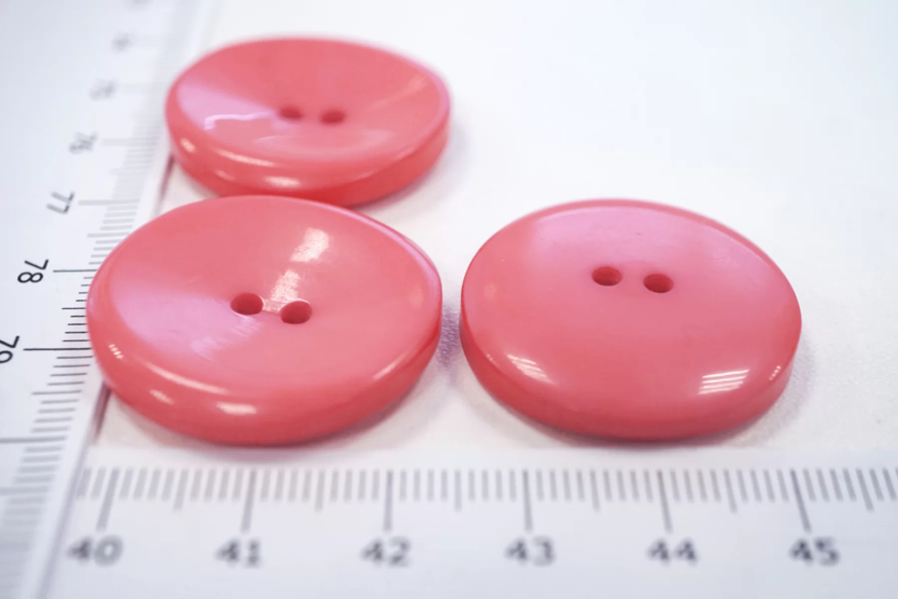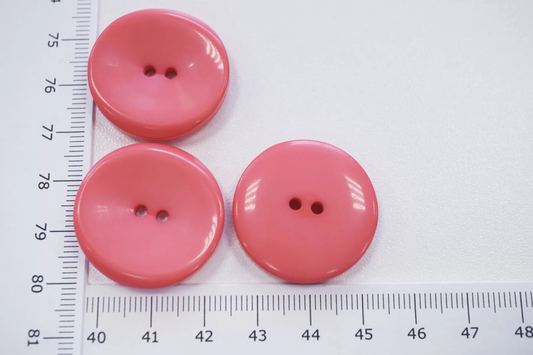 Пуговица пальтовая из пластмассы, размер 28 мм, ярко-розового цвета.