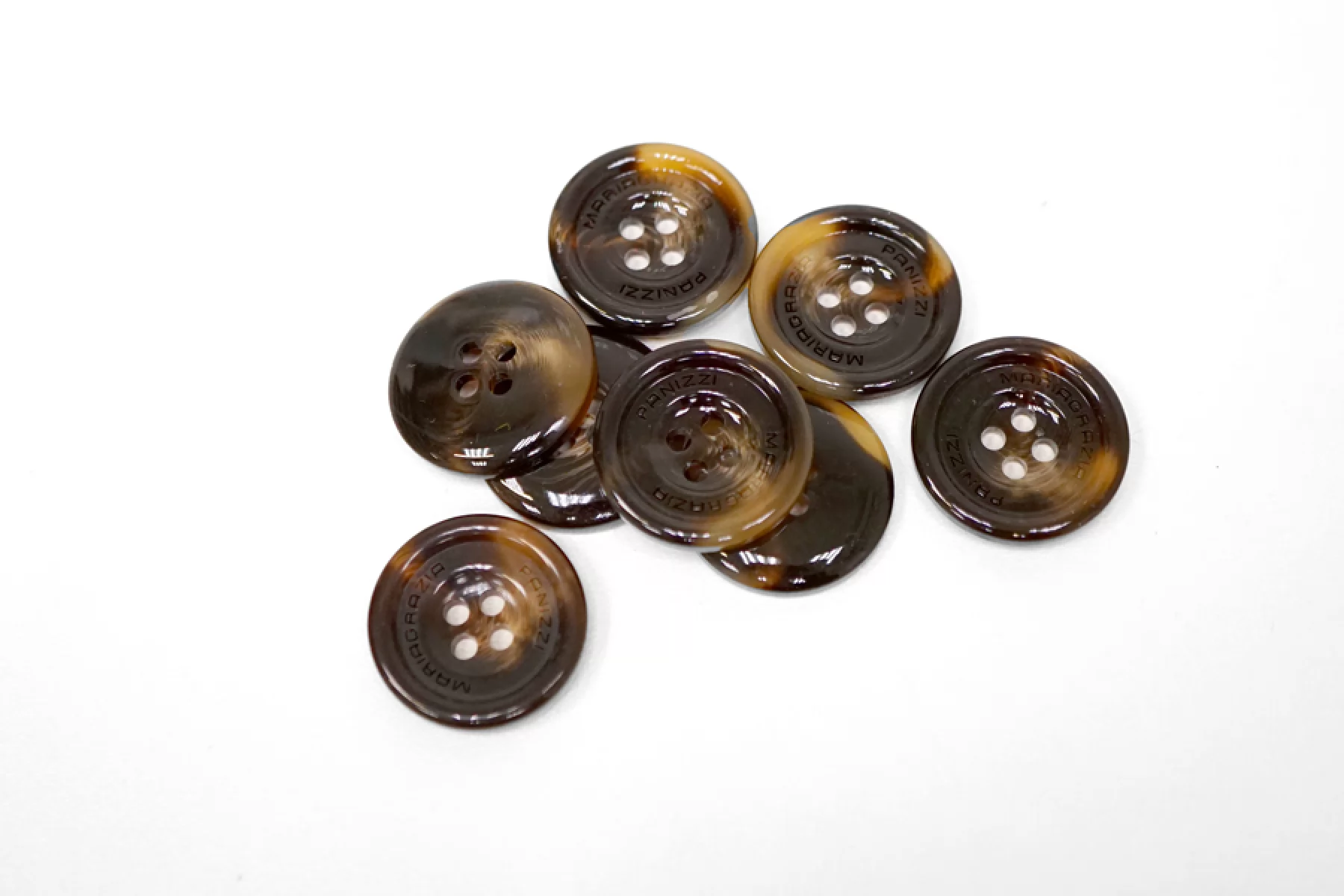 Пуговица пластикавая костюмно-пальтовая коричневого цвета под рог . Размер 20 мм.