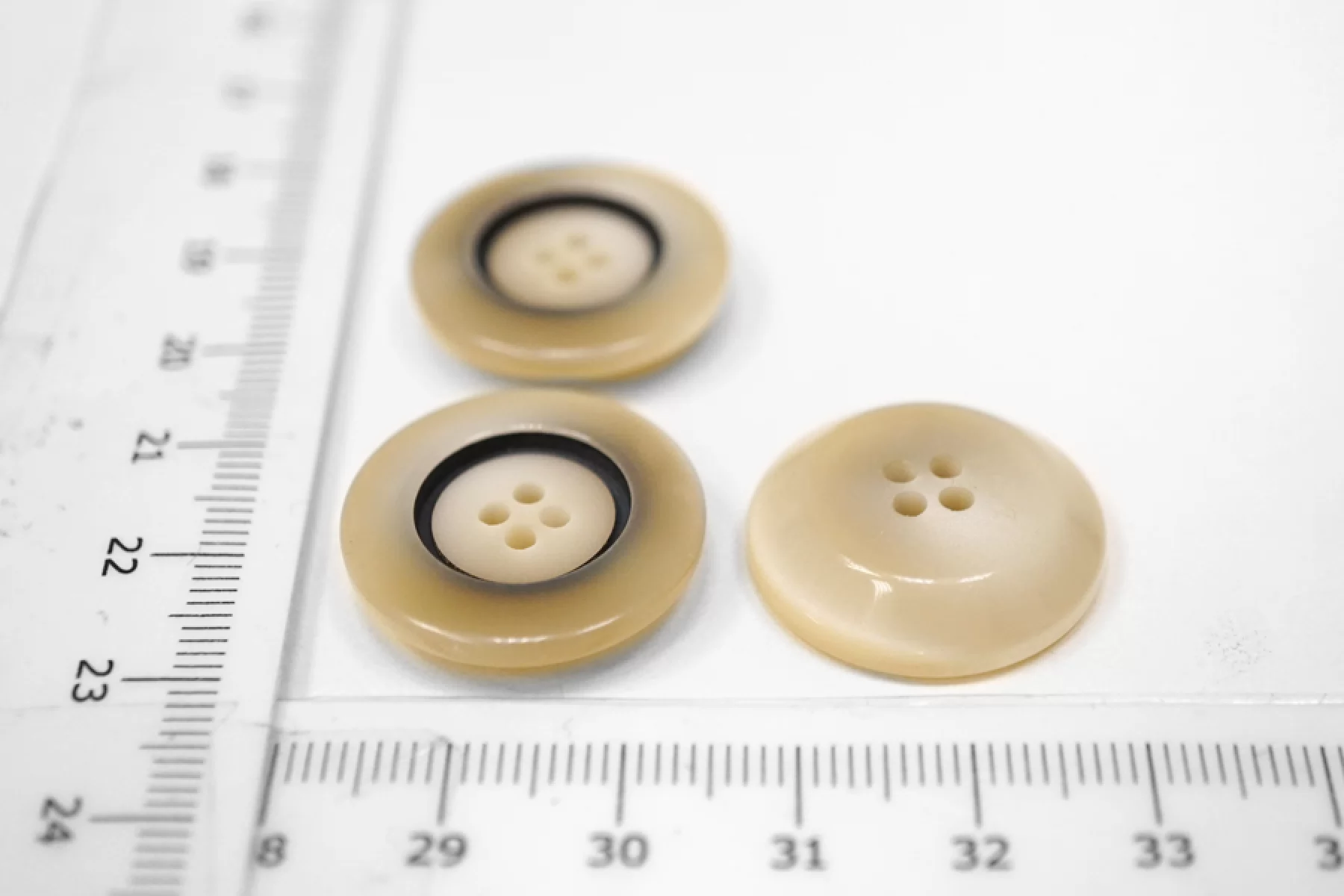 Пуговица пластикавая костюмно-пальтовая бежевого цвета под рог . Размер 22 мм.