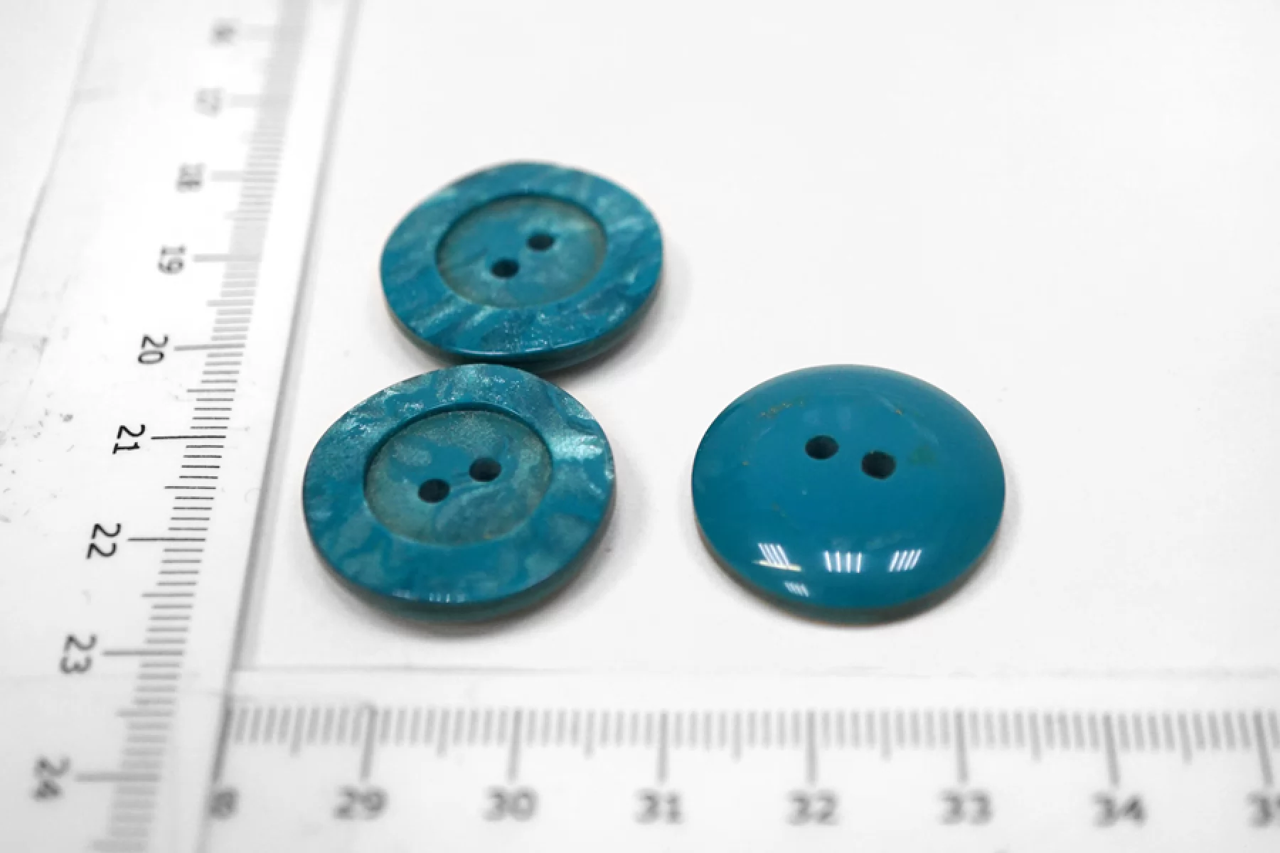 Пуговица пластикавая костюмно-пальтовая темно-бирюзового оттенка с перламутровыми переливами. Размер 22 мм.